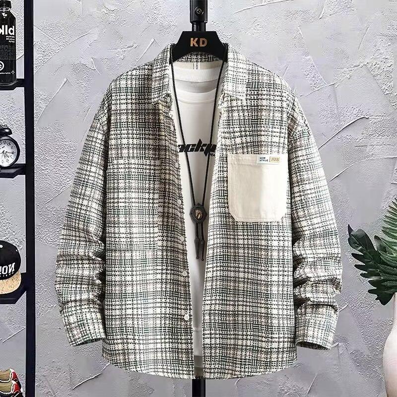 Camisa de herramientas de nuevo estilo primavera y otoño 2024 para hombre, de manga larga, estilo coreano, holgada, con bolsillos, chaqueta informal que combina con todo.