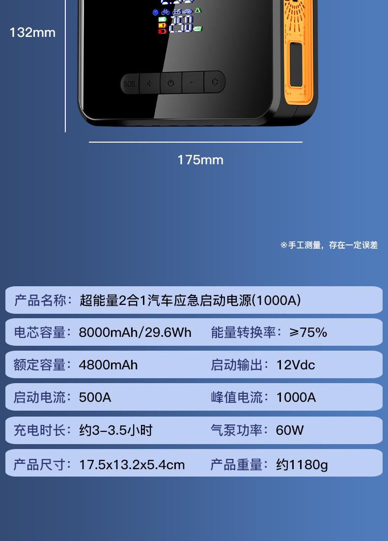 [Especificaciones del producto]: Fuente de alimentación de arranque + bomba de aire