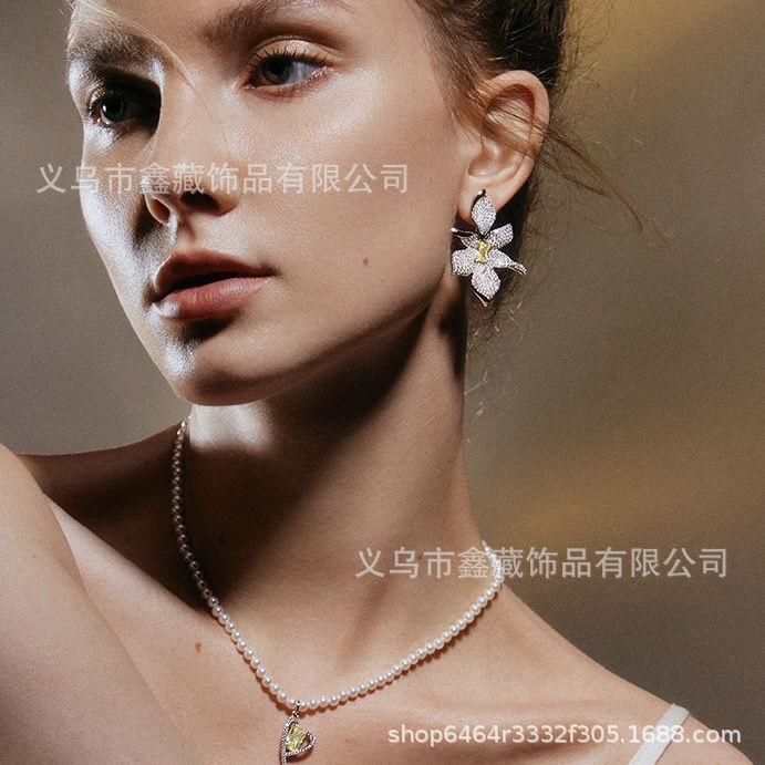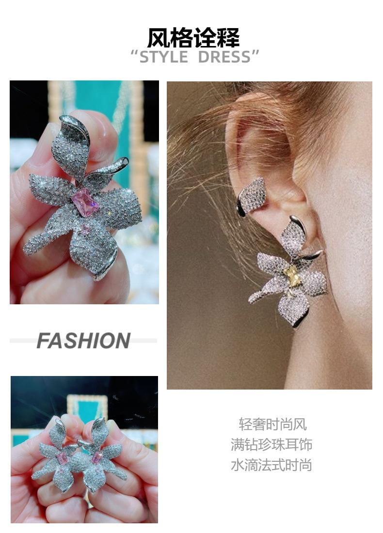 silver pink diamond flower earrings/C36, silver Yellow Diamond Flower Earrings/C36