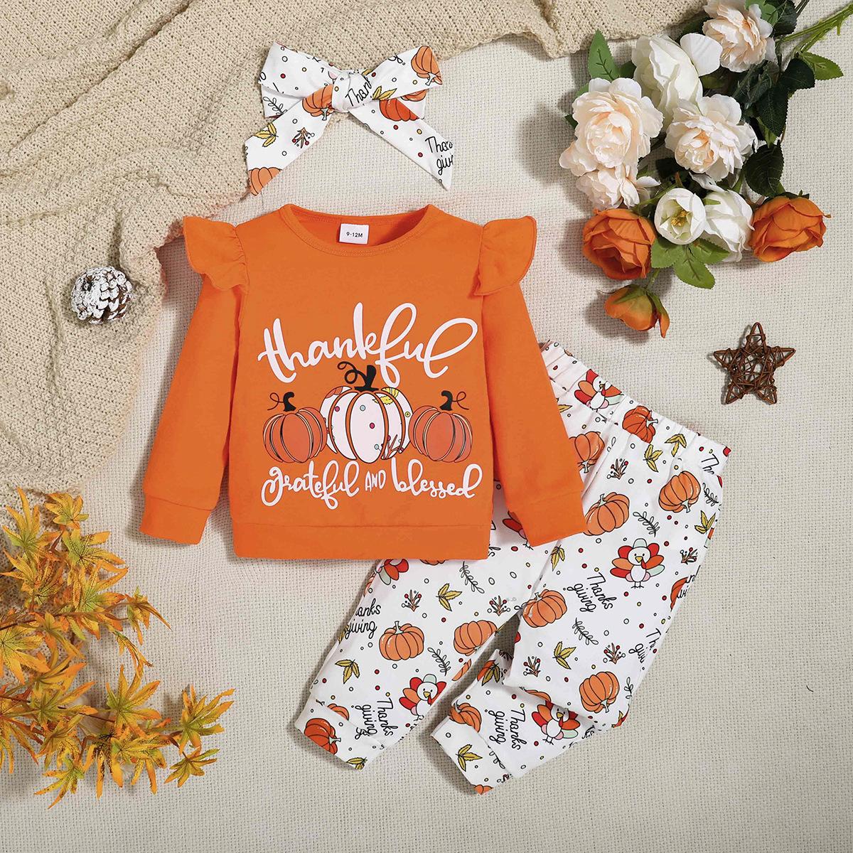 Ropa infantil de primavera y otoño, traje informal con estampado de letras para niñas, nuevo estilo, bufanda para el pelo