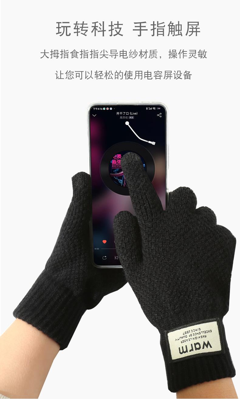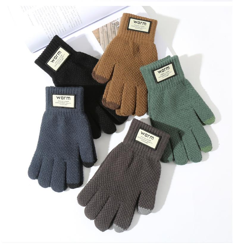Nuevos guantes de punto con pantalla táctil transfronteriza para hombre, forrados con vellón para ciclismo, cálidos guantes de invierno coreanos a prueba de frío, disponibles en fábrica.