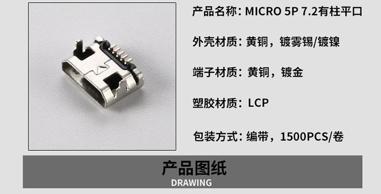 Suministros del Fabricante Conector Hembra USB Enchufe Micro USB Placa Plug-In Enchufe Recto Boca Plana Conector Micro USB Conector Hembra
