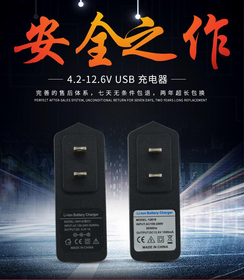 Cargador de batería de litio de 4,2 V, 8,4 V, 12,6 V, 1 A, corriente constante, voltaje constante, cargador USB con adaptador de luz de giro.
