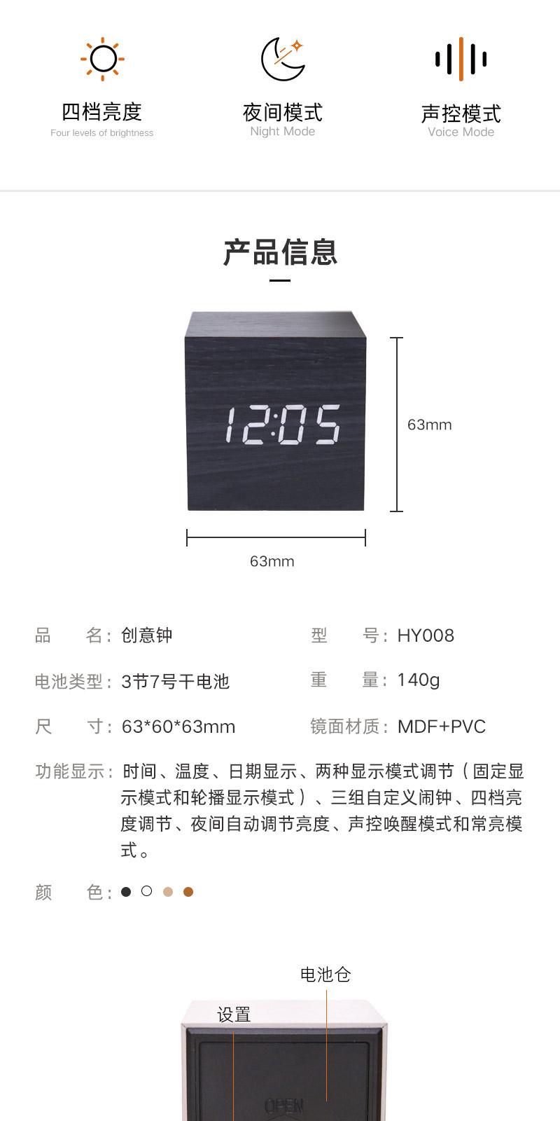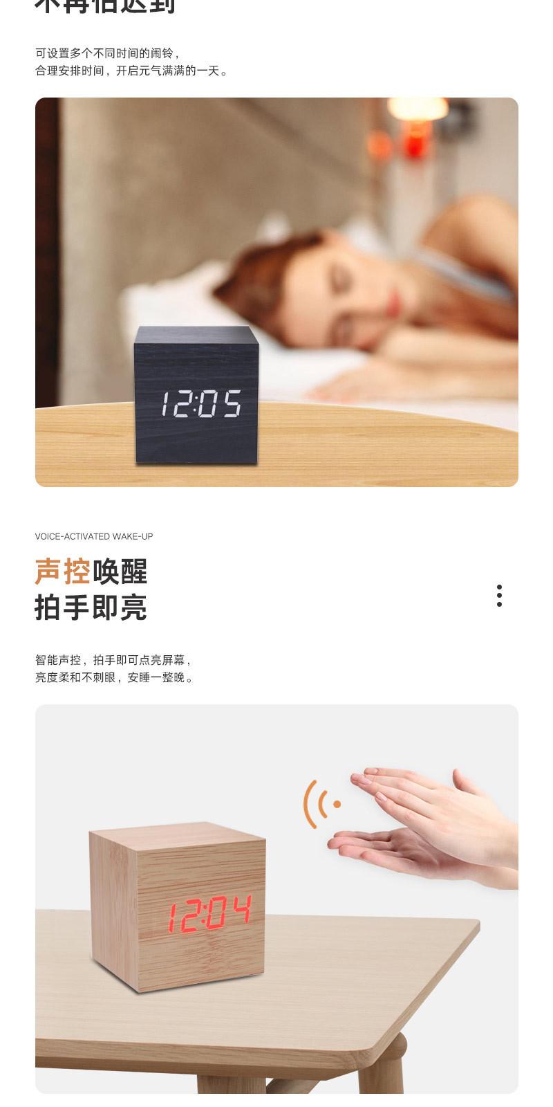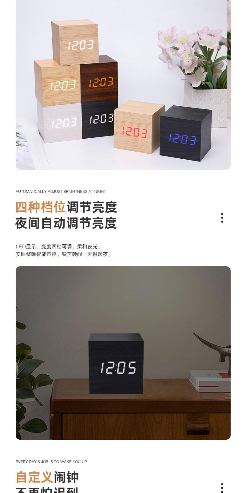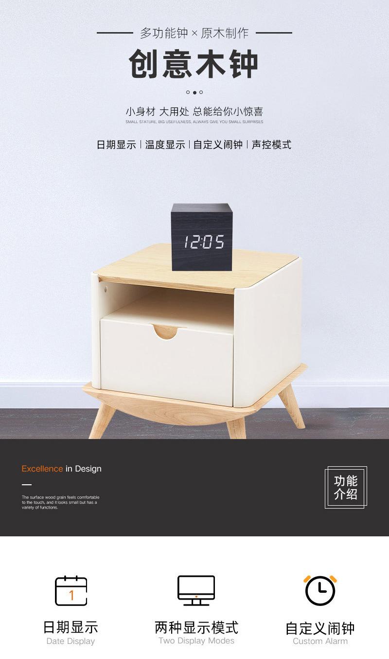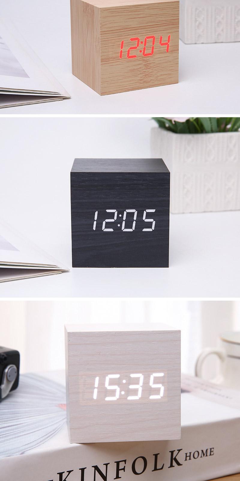 Reloj despertador, artefacto de despertador, dormitorio, mesita de noche, mini reloj electrónico de escritorio, reloj creativo de madera simple para estudiantes