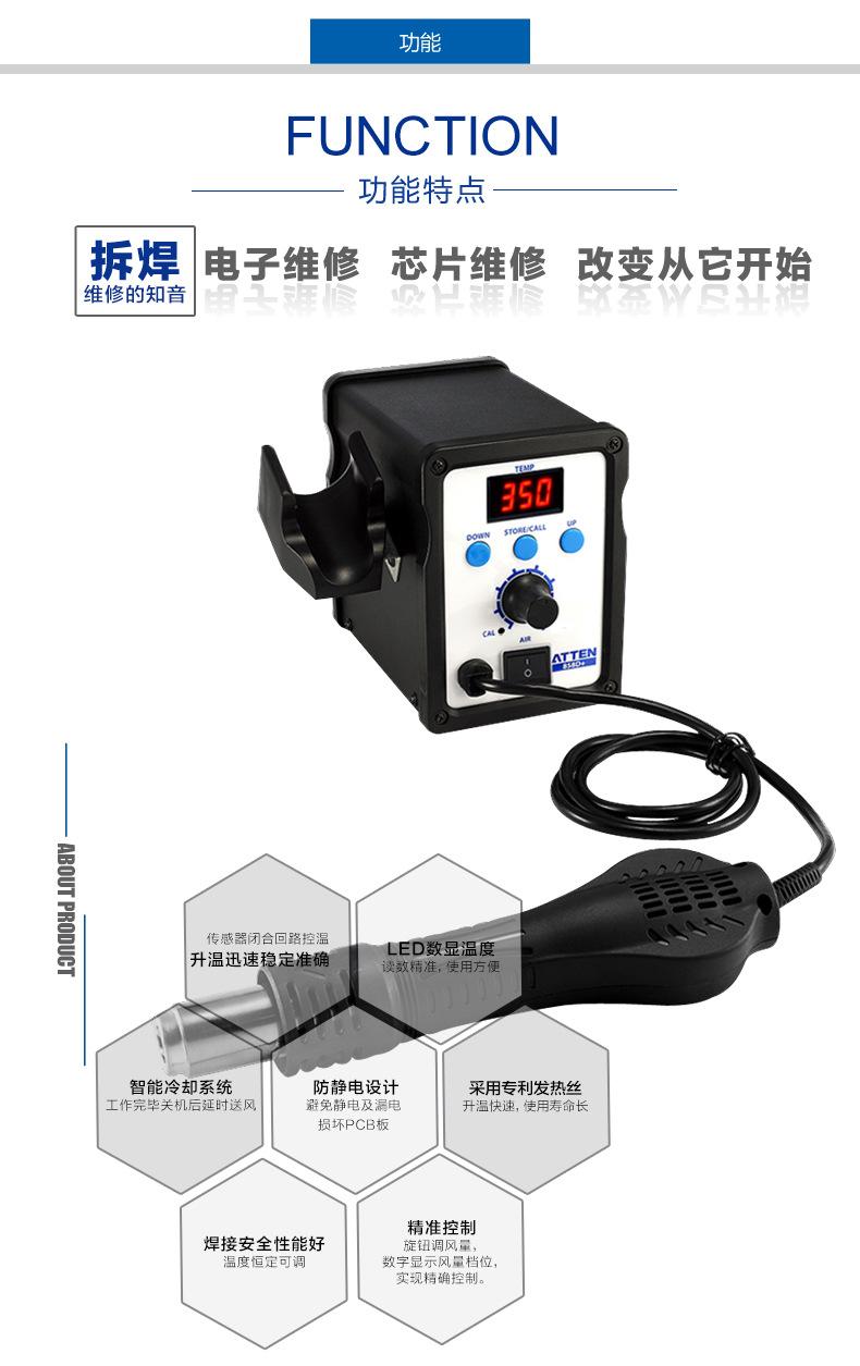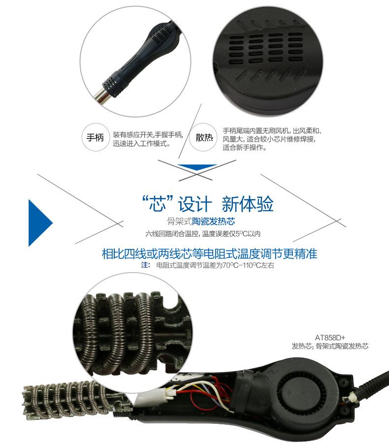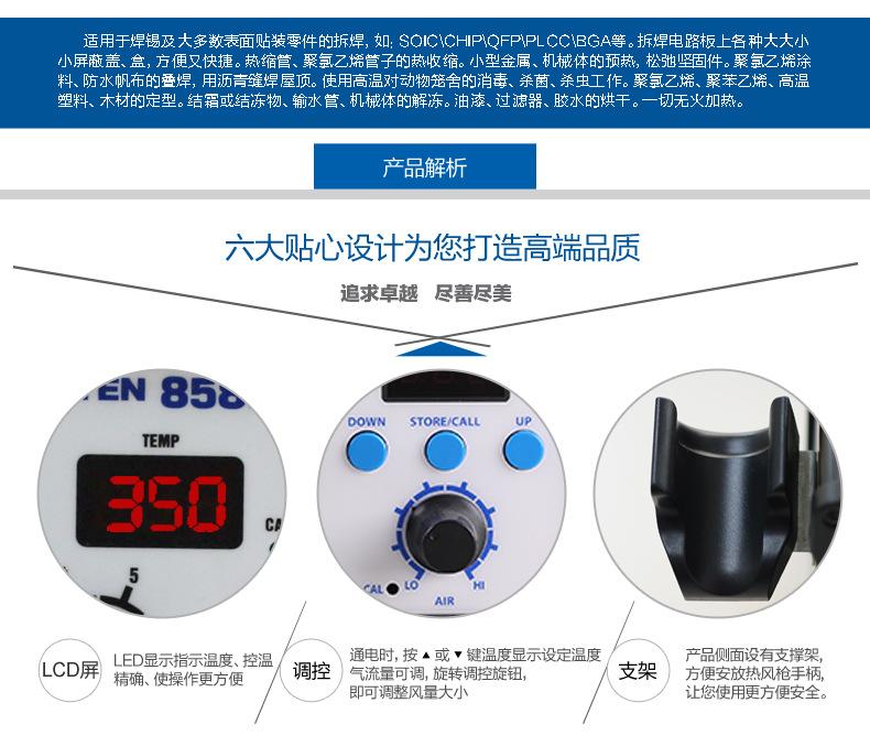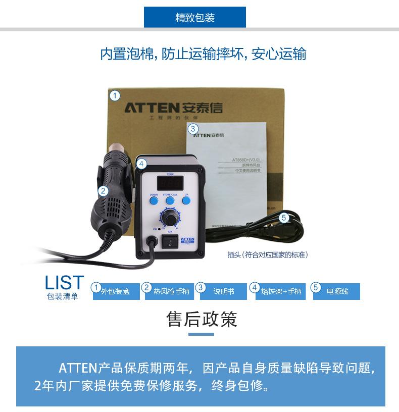 Estación de soldadura de aire caliente para mantenimiento de teléfonos móviles AT858D con pantalla digital, pistola de aire caliente, soplado de IC eléctrico, eliminación de chips