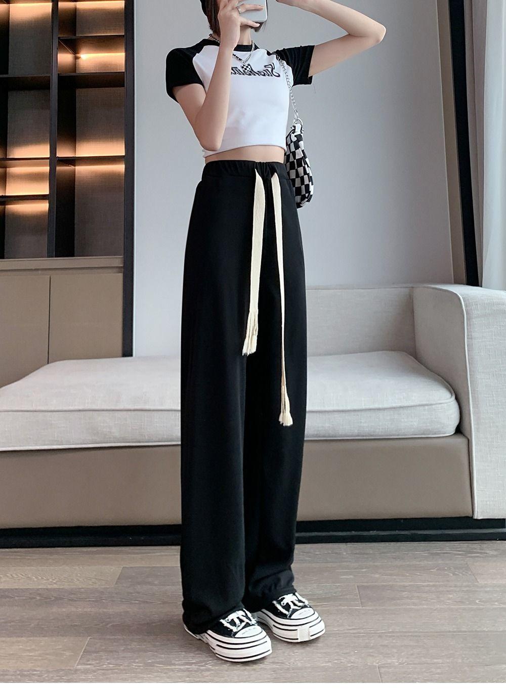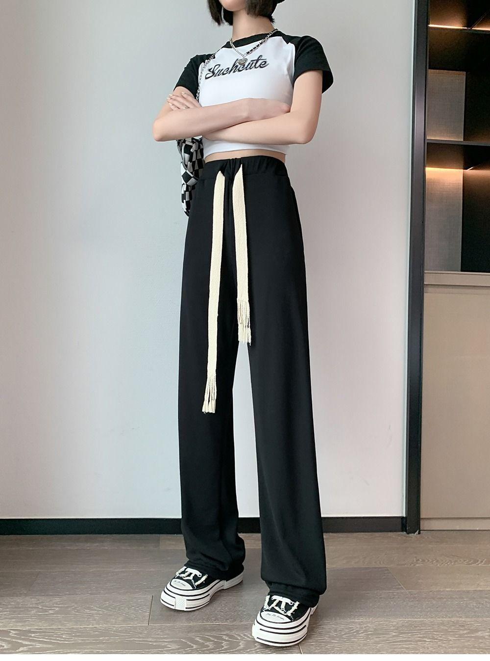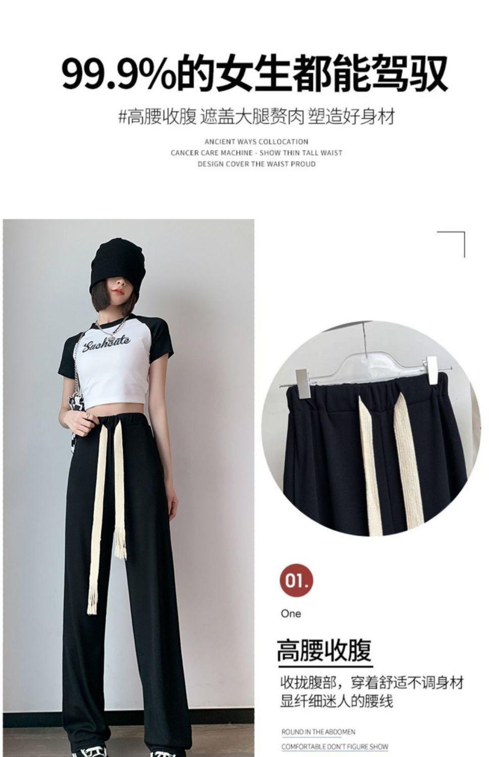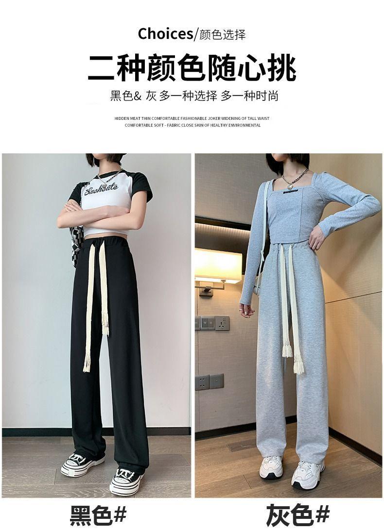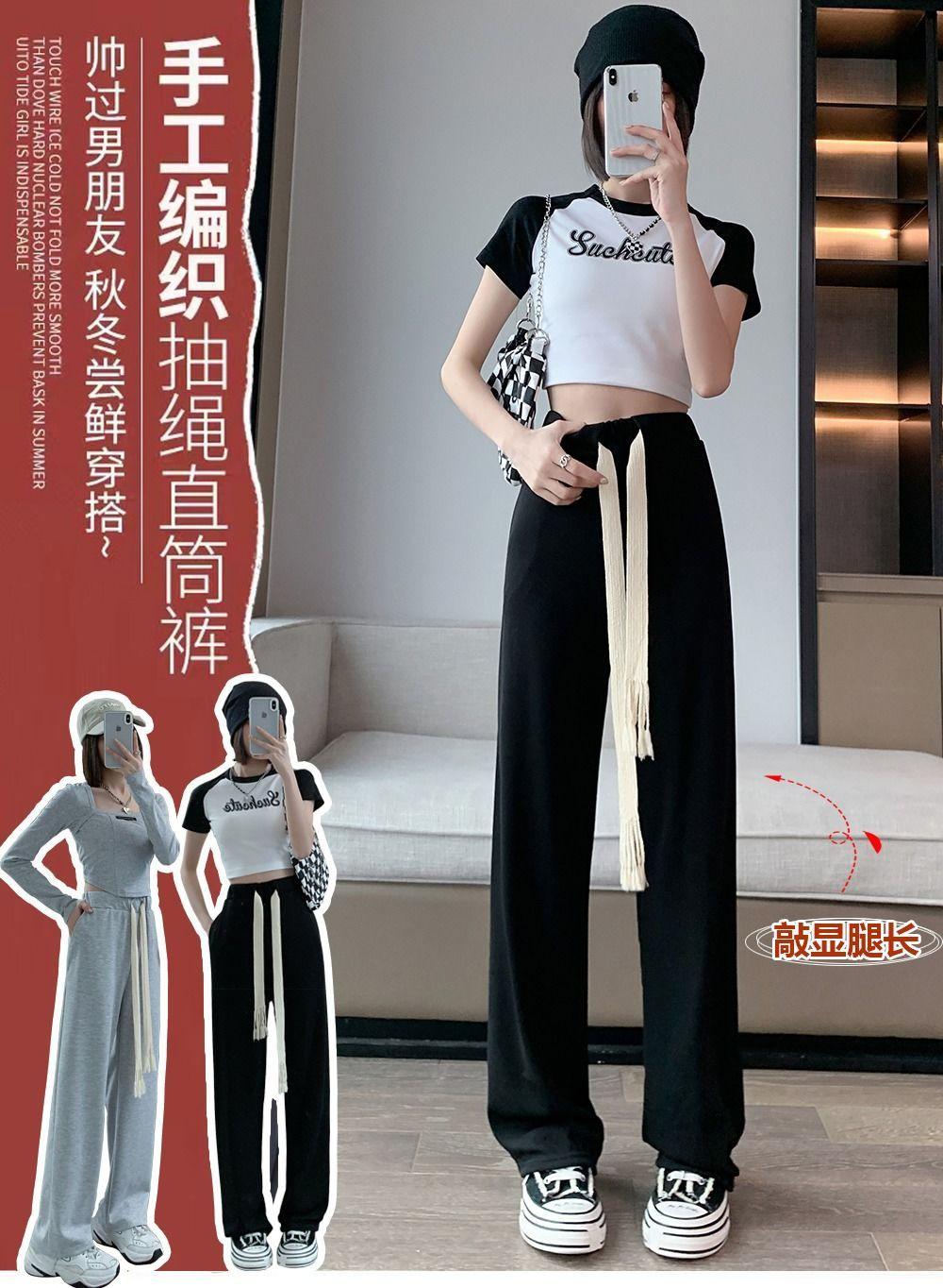 Compra Pantalones deportivos casuales de estilo coreano al por mayor para mujer, otoño, elegantes, de cintura alta, holgados, rectos, personalizados con cordones, de pierna ancha, pantalones deportivos al por mayor en Joom.pro