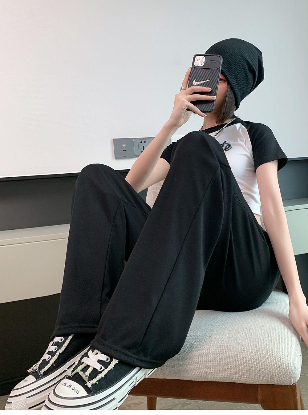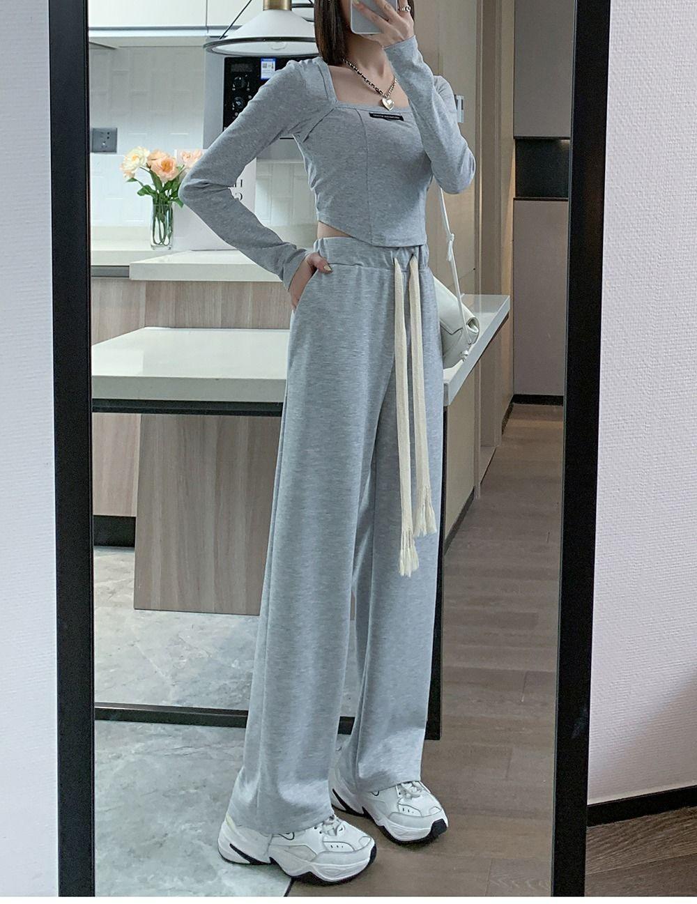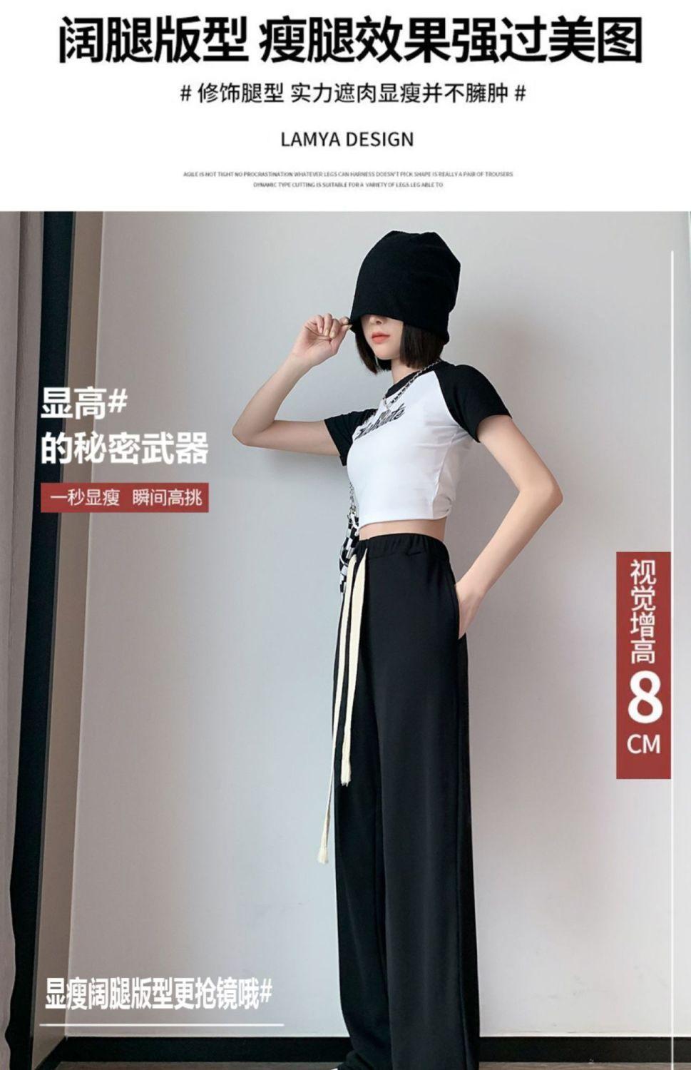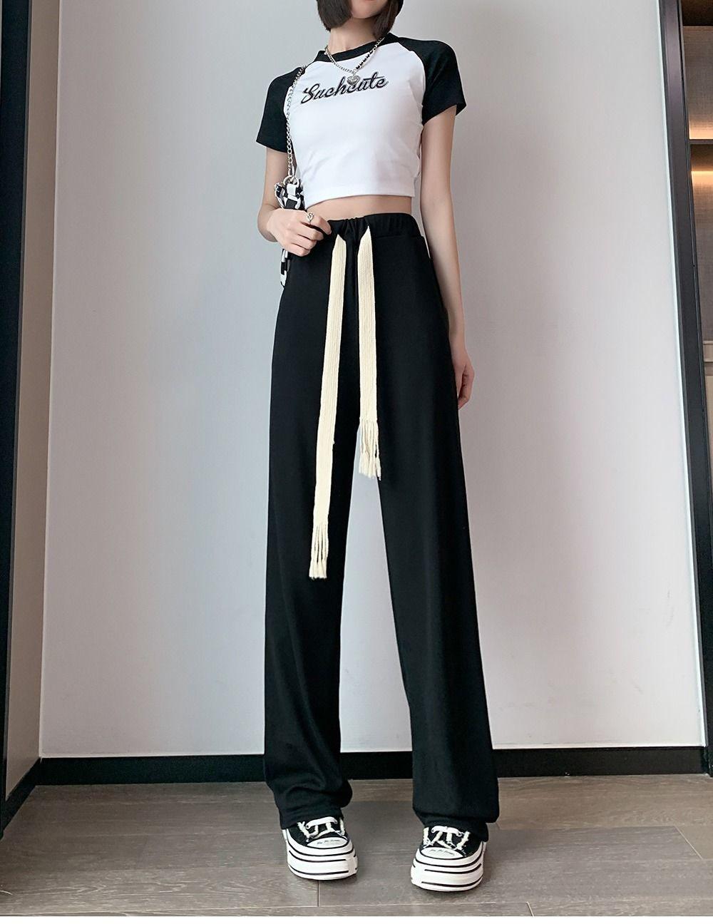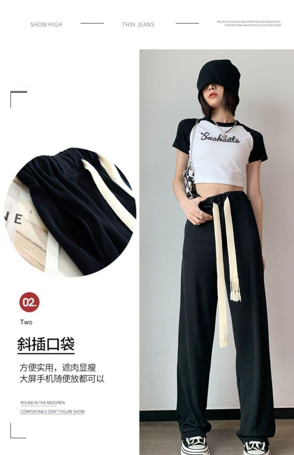 Compra Pantalones deportivos casuales de estilo coreano al por mayor para mujer, otoño, elegantes, de cintura alta, holgados, rectos, personalizados con cordones, de pierna ancha, pantalones deportivos al por mayor en Joom.pro