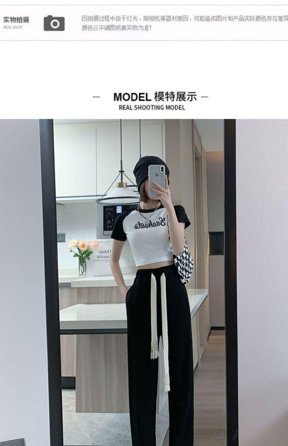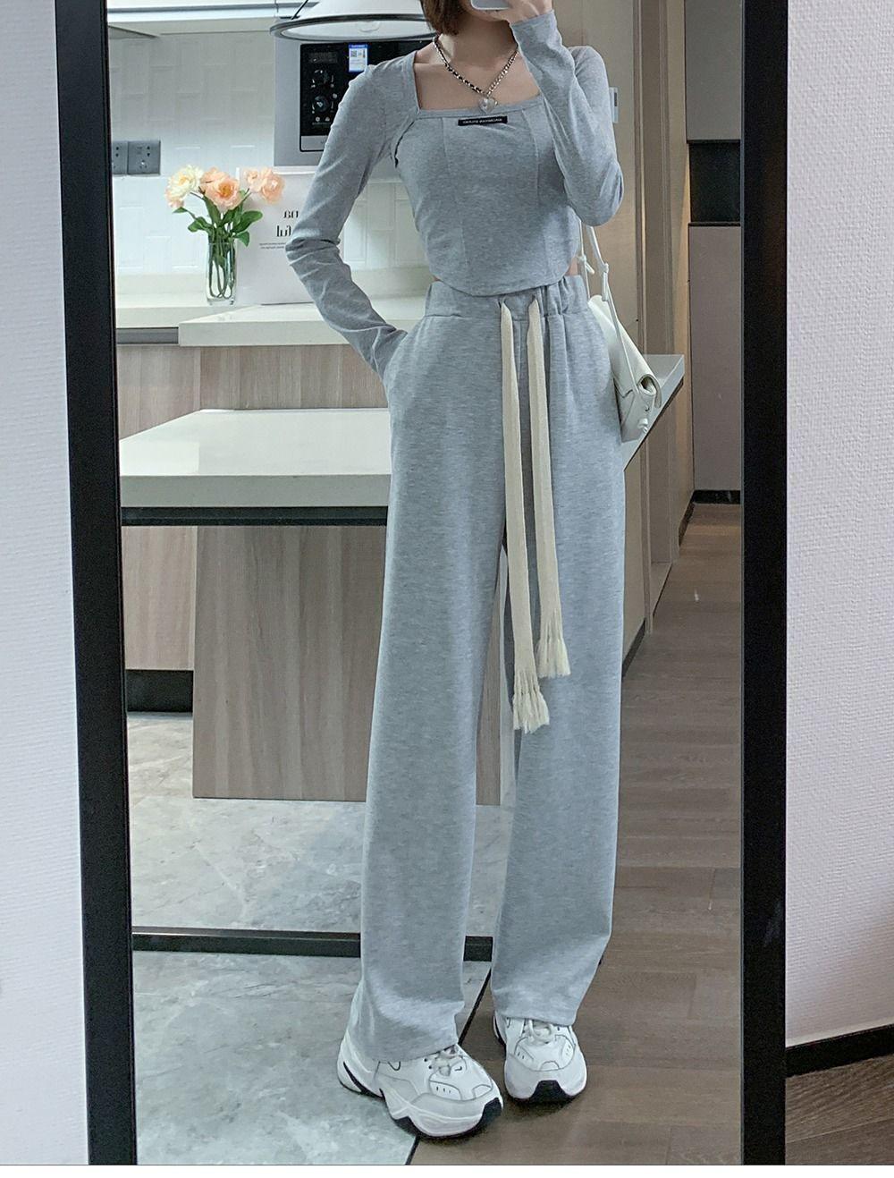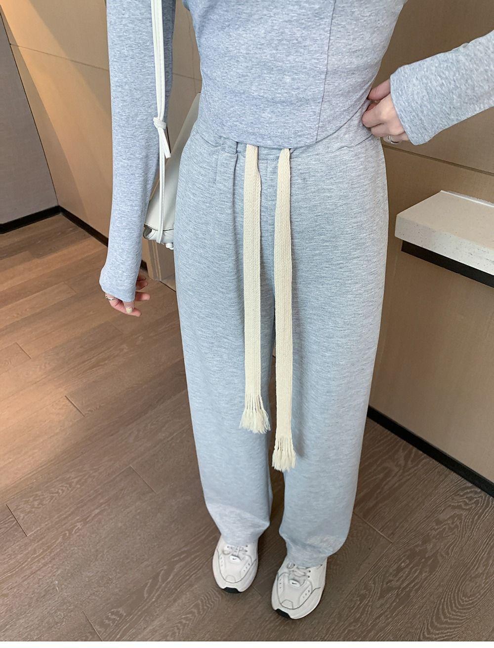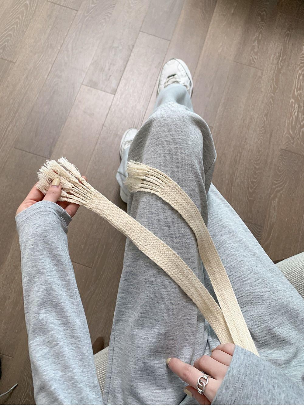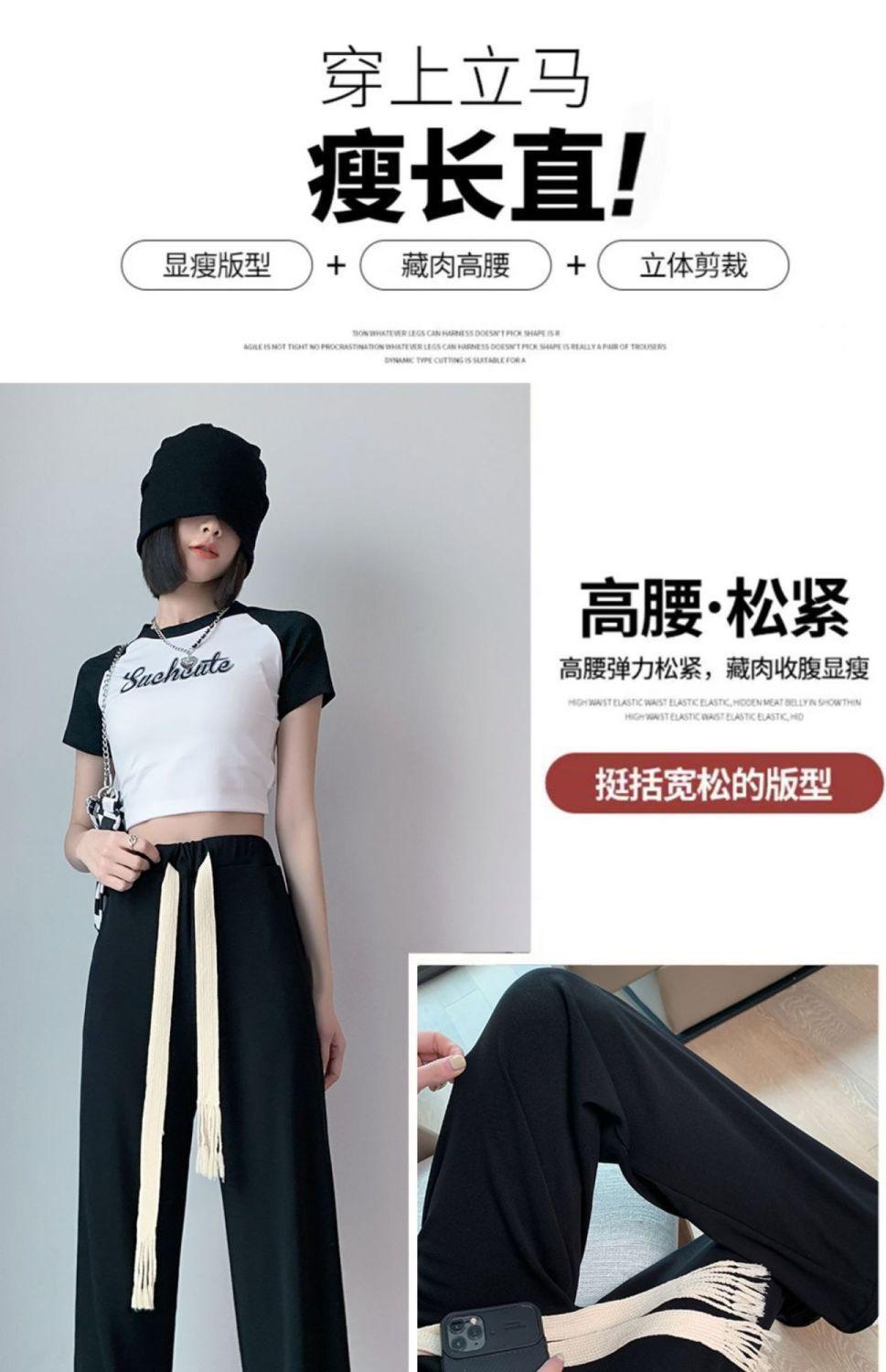 Compra Pantalones deportivos casuales de estilo coreano al por mayor para mujer, otoño, elegantes, de cintura alta, holgados, rectos, personalizados con cordones, de pierna ancha, pantalones deportivos al por mayor en Joom.pro