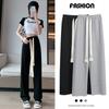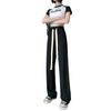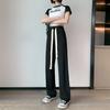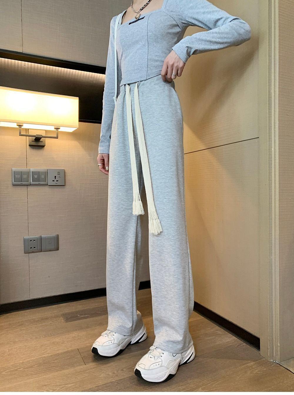 Pantalones deportivos casuales de estilo coreano al por mayor para mujer, otoño, elegantes, de cintura alta, holgados, rectos, personalizados con cordones, de pierna ancha, pantalones deportivos