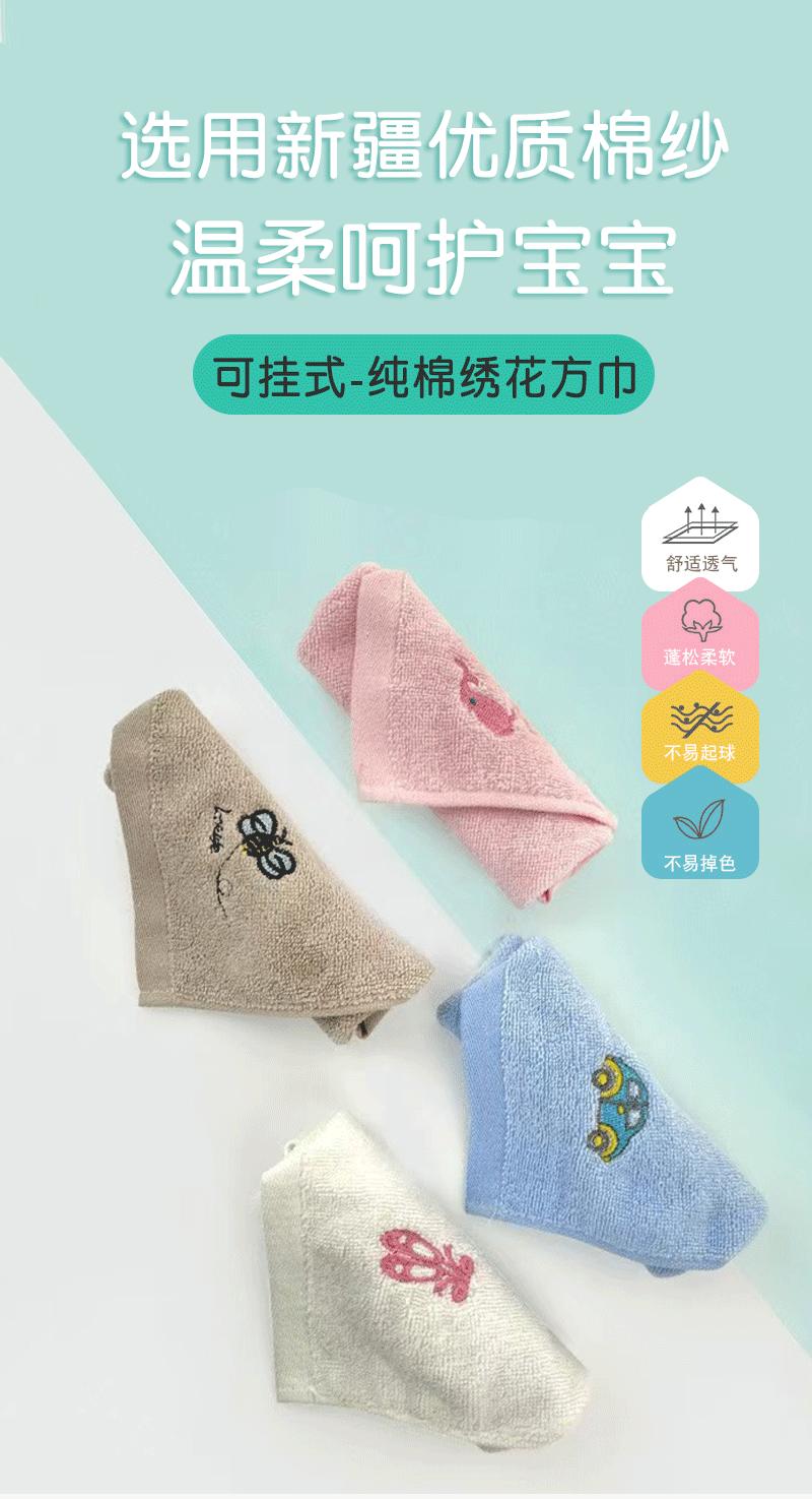 Algodón 25*25 toalla cuadrada pequeña bordado jardín de niños toalla para bebé toalla de gancho suave absorbente regalo toalla cuadrada