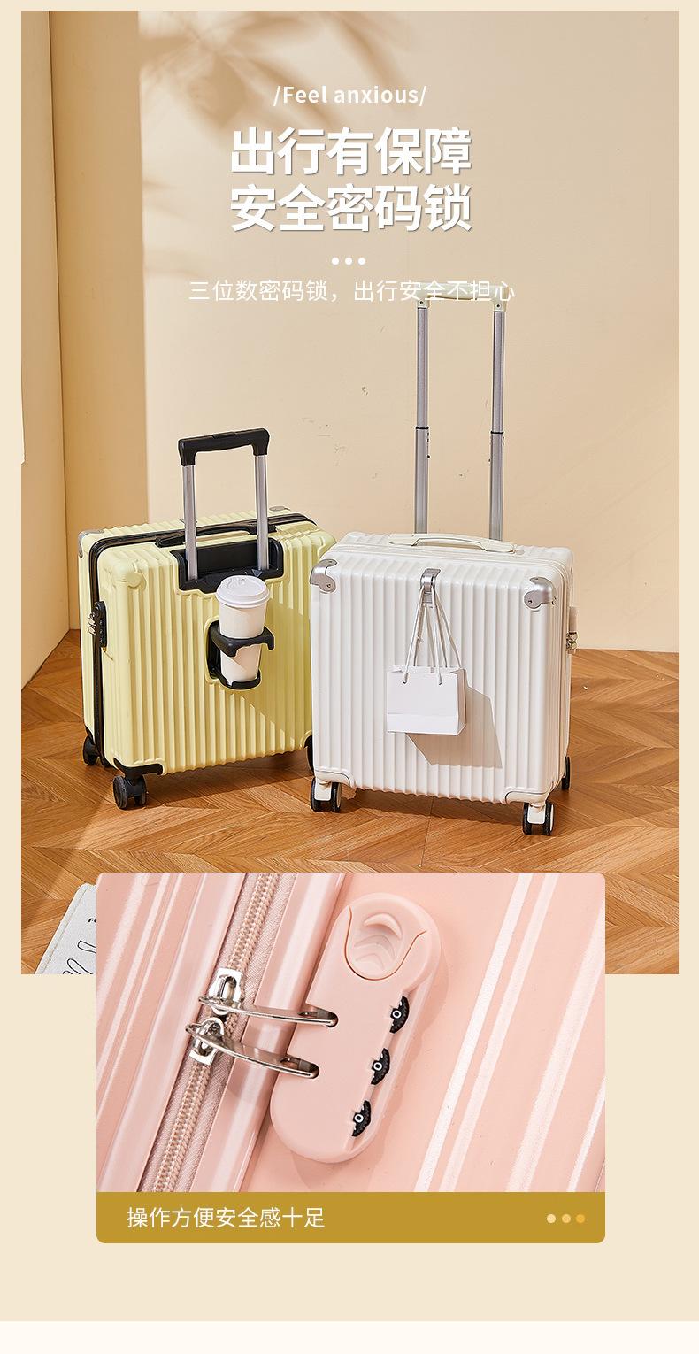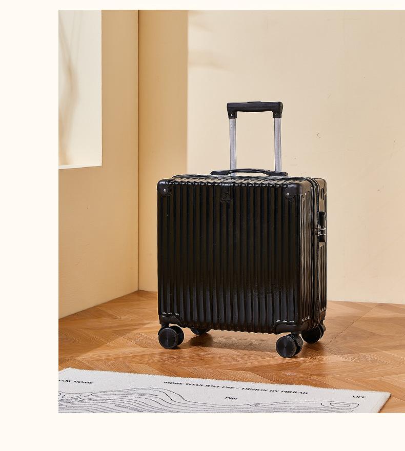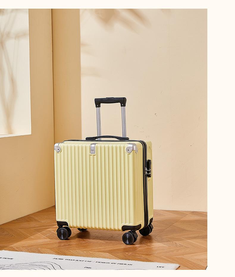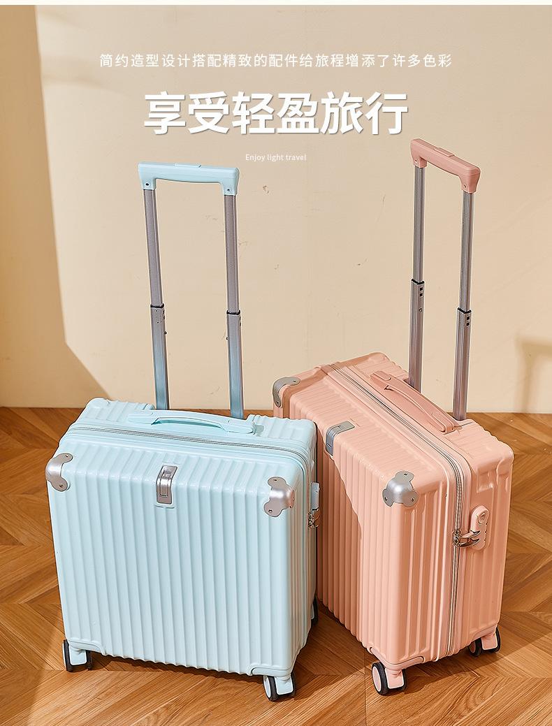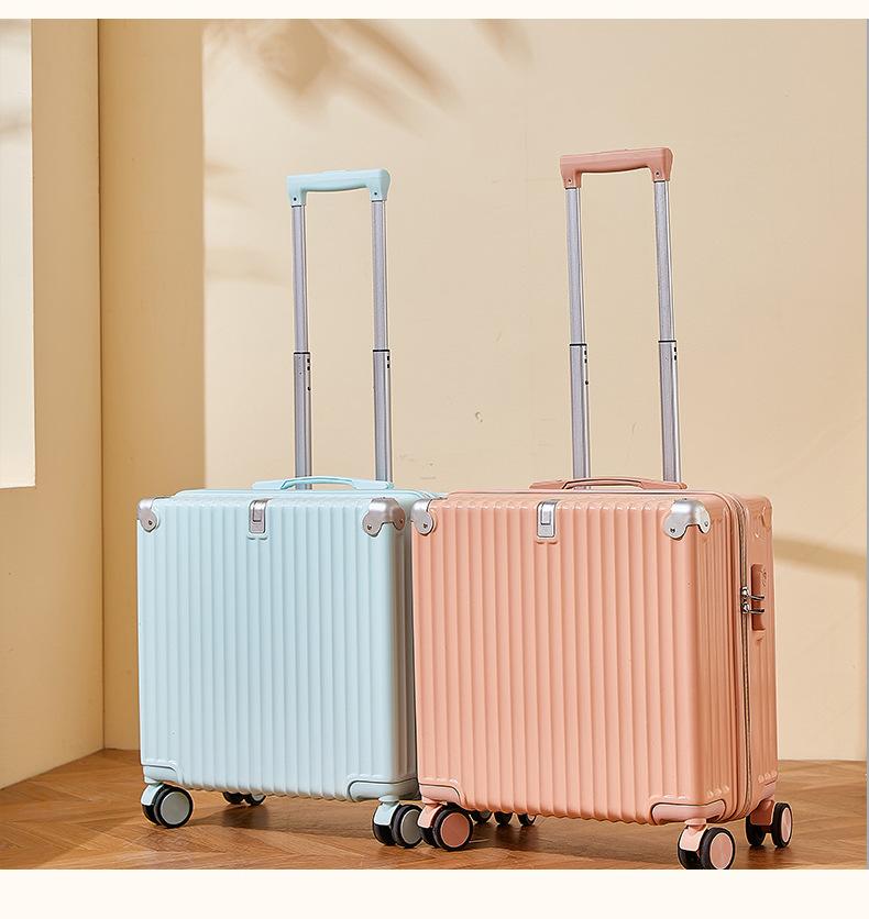 Equipaje pequeño en stock, maleta pequeña y ligera para abordar de 18 pulgadas, maleta trolley con contraseña para mujer, rueda universal silenciosa, equipaje de viaje