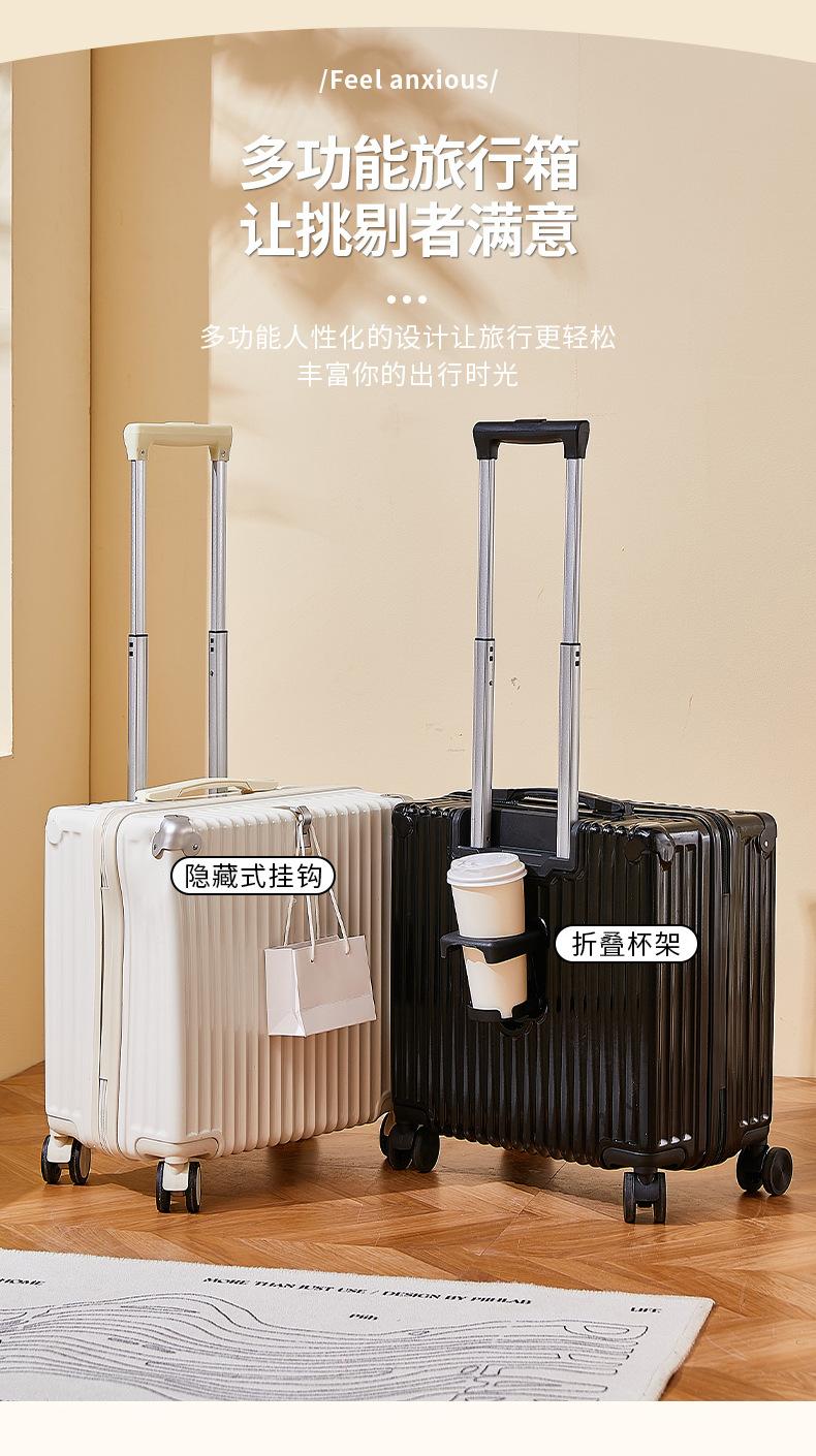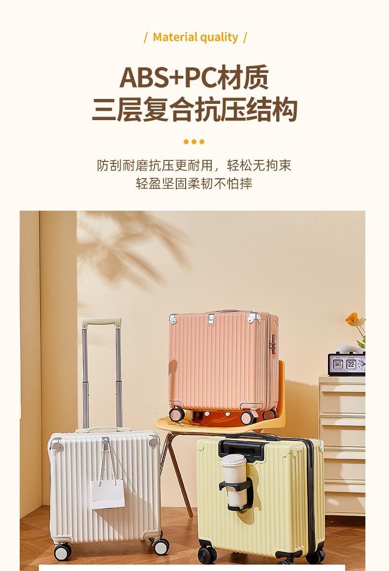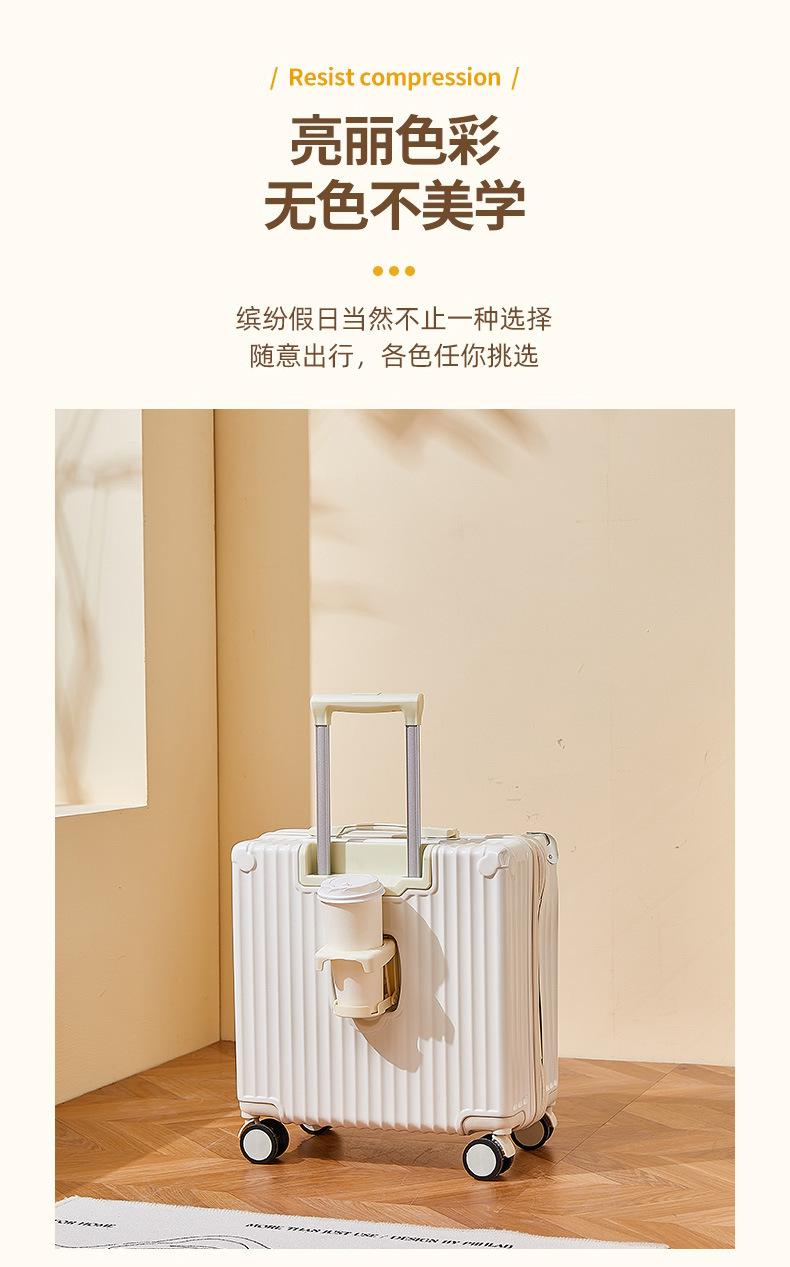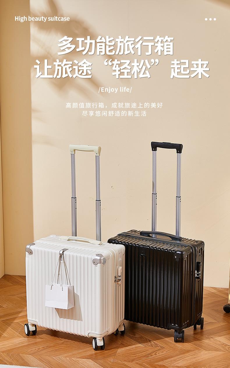 Equipaje pequeño en stock, maleta pequeña y ligera para abordar de 18 pulgadas, maleta trolley con contraseña para mujer, rueda universal silenciosa, equipaje de viaje