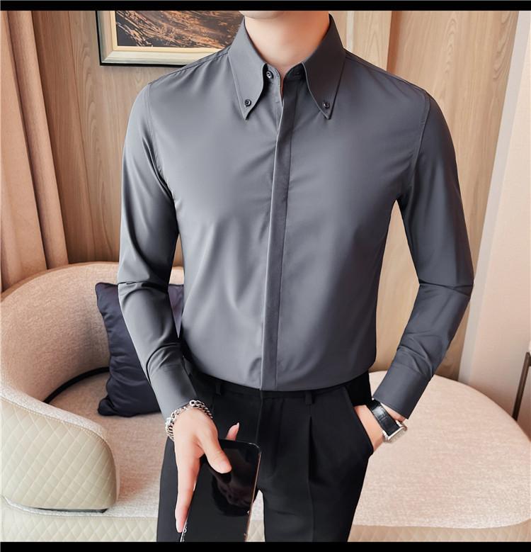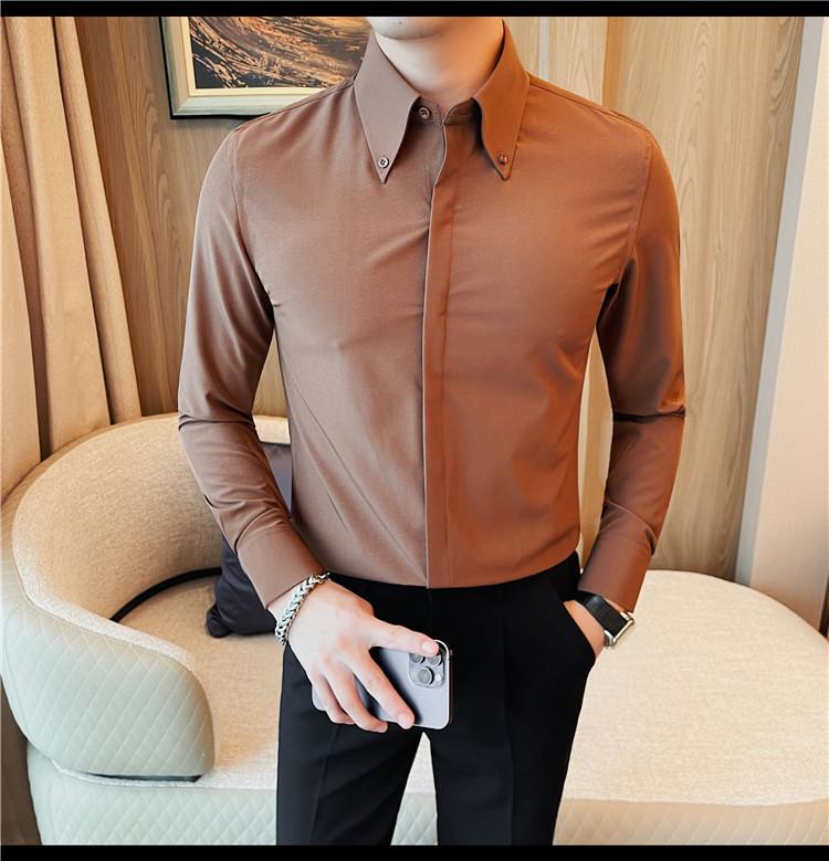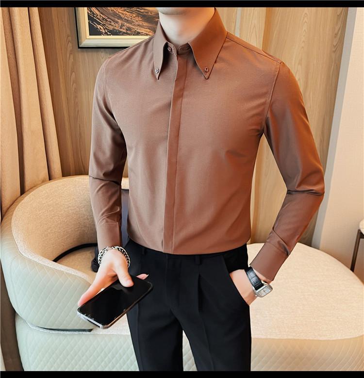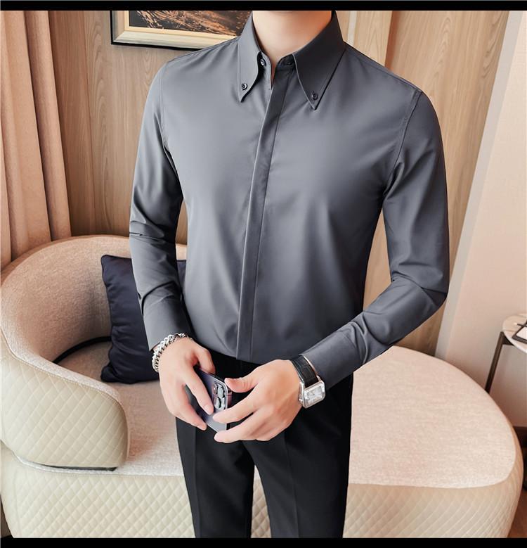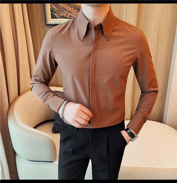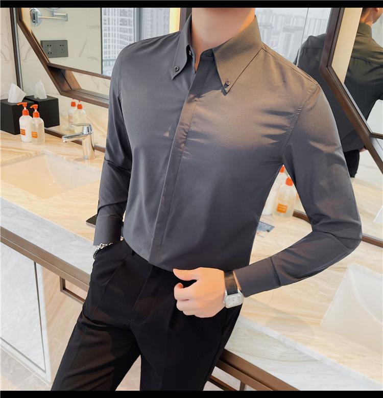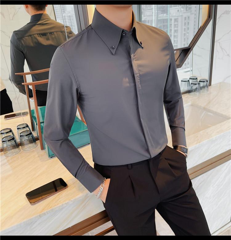 Camisa Nueva de Hombre 2023 de Manga Larga con Cuello Grande de Punta Larga, Color Puro, Versátil, Business Casual, para Usar Debajo, Estilo Francés