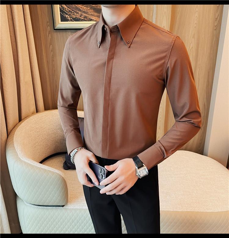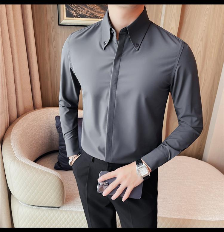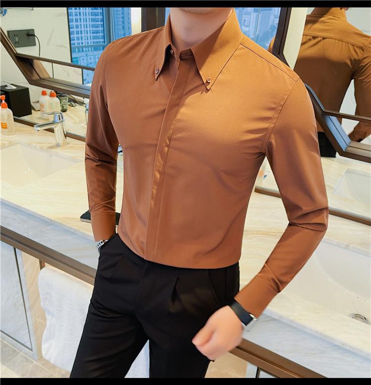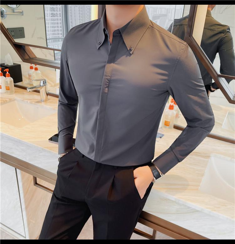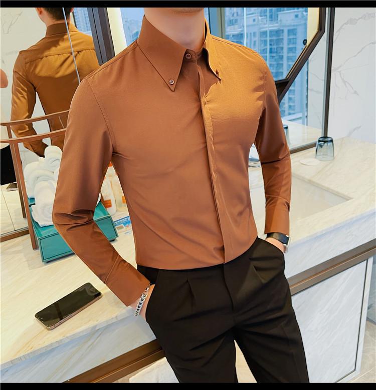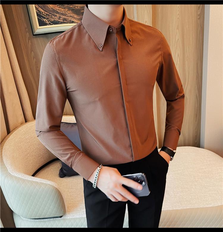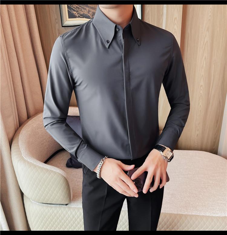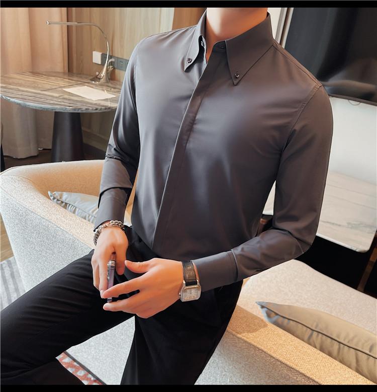 Camisa Nueva de Hombre 2023 de Manga Larga con Cuello Grande de Punta Larga, Color Puro, Versátil, Business Casual, para Usar Debajo, Estilo Francés
