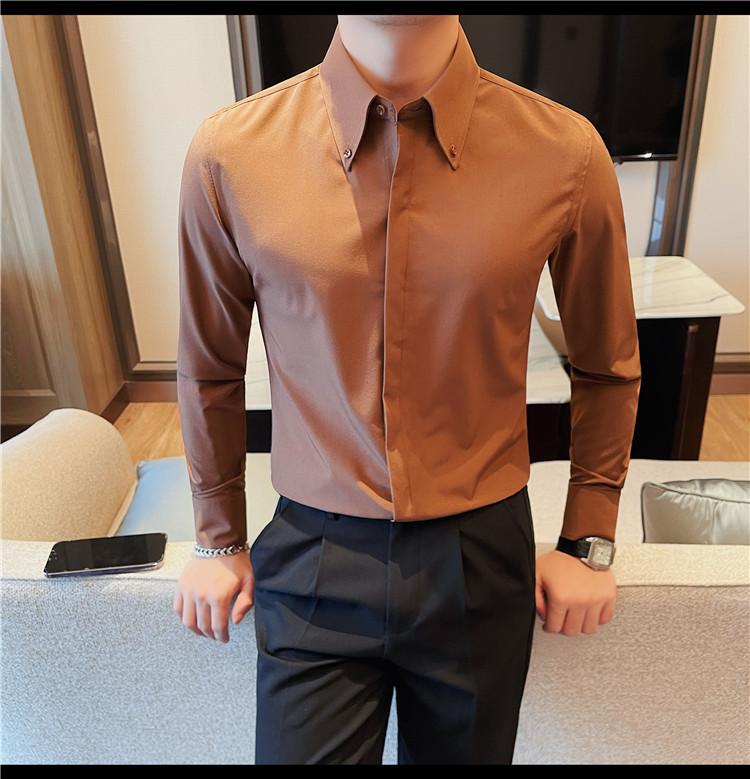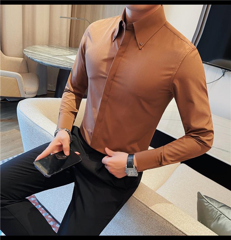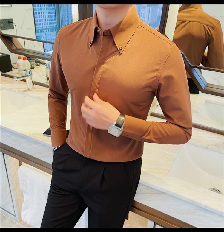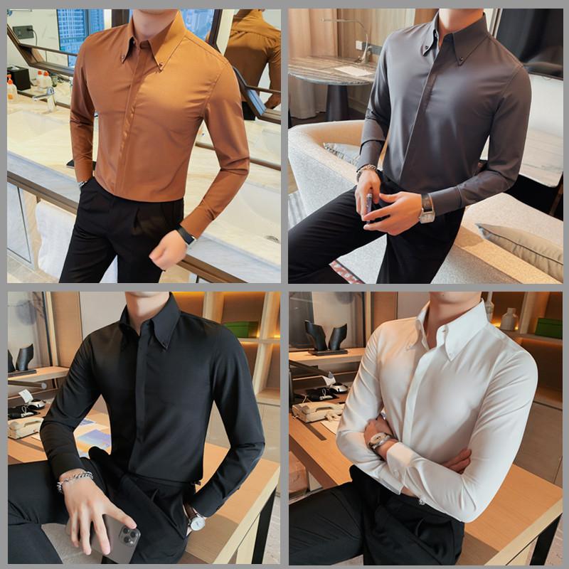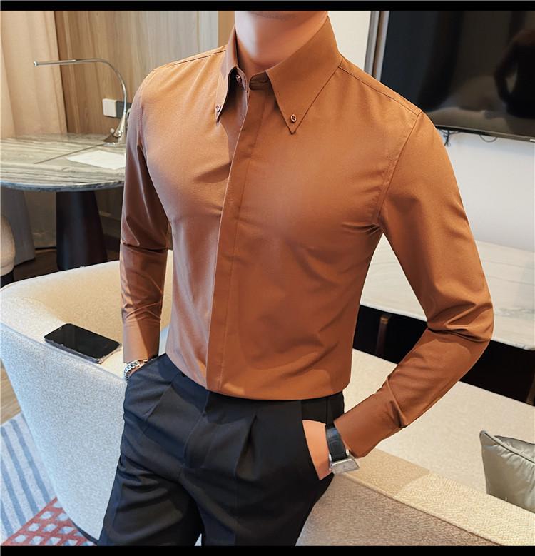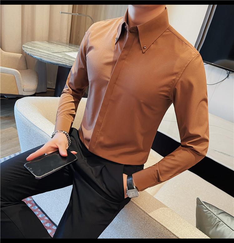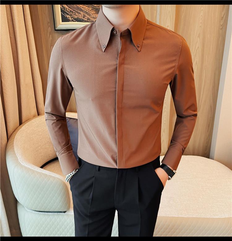 Camisa Nueva de Hombre 2023 de Manga Larga con Cuello Grande de Punta Larga, Color Puro, Versátil, Business Casual, para Usar Debajo, Estilo Francés