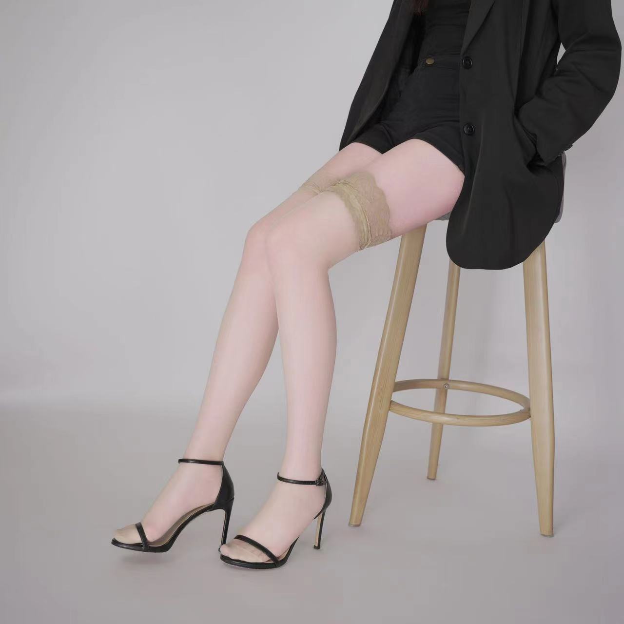 Medias largas de encaje de verano para damas, medias finas de seda anti-gancho color carne hasta el muslo, calcetines hasta la rodilla que no se caen