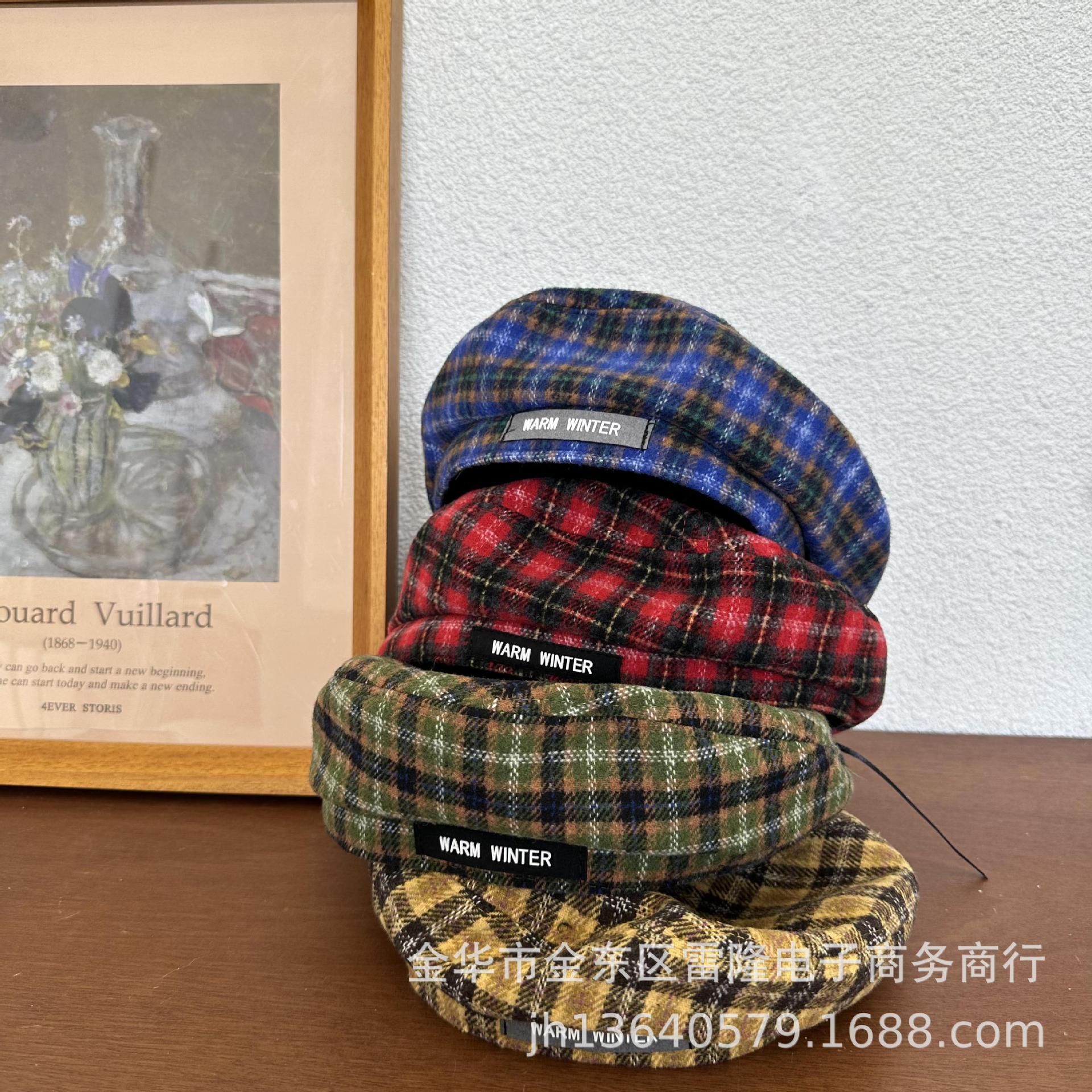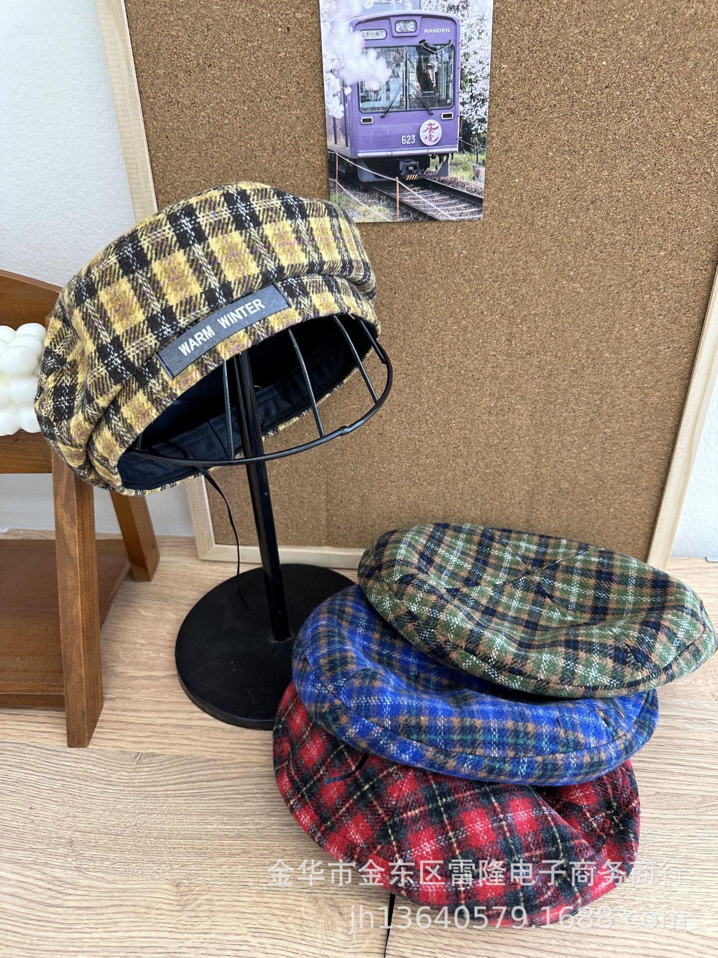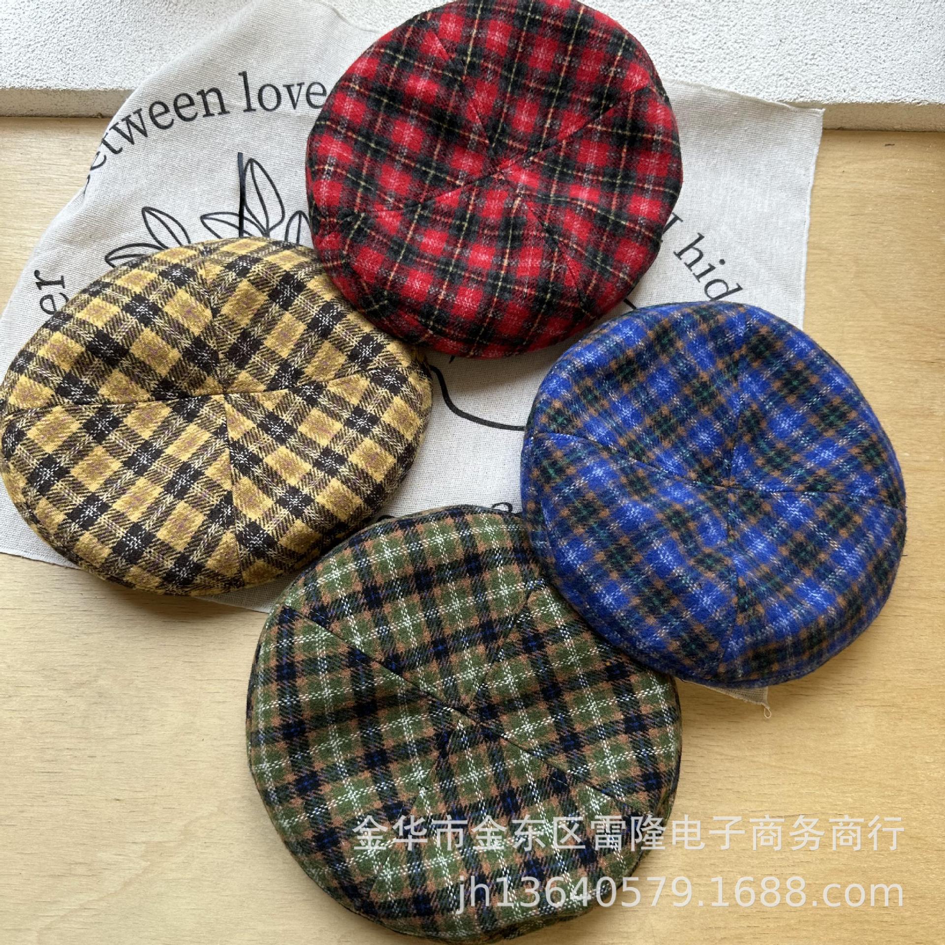 Boina para niños británica ins otoño e invierno retro a cuadros de lana niña niño sombrero de pintor estilo occidental sombrero de bebé