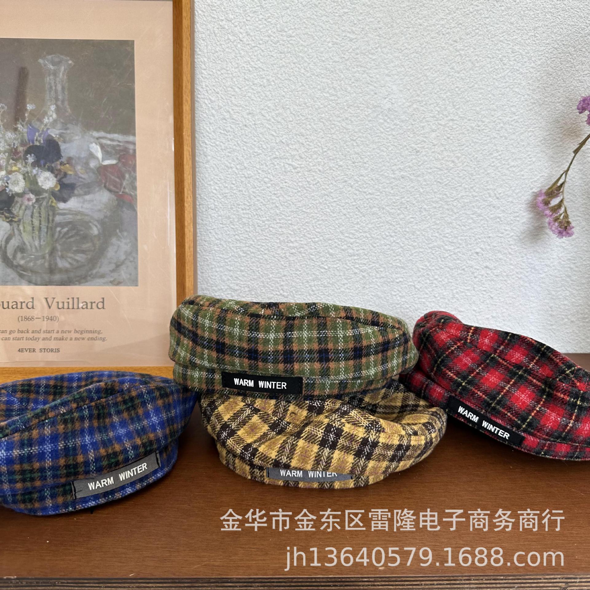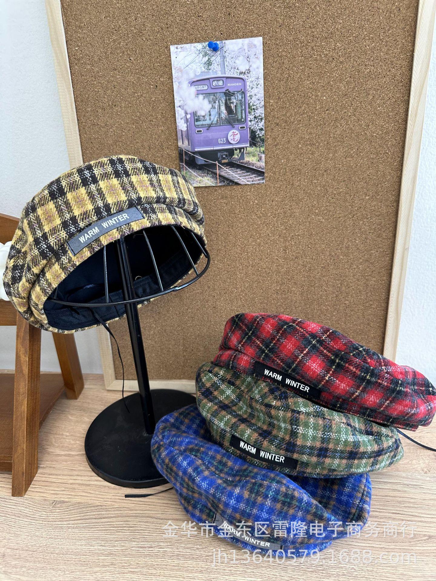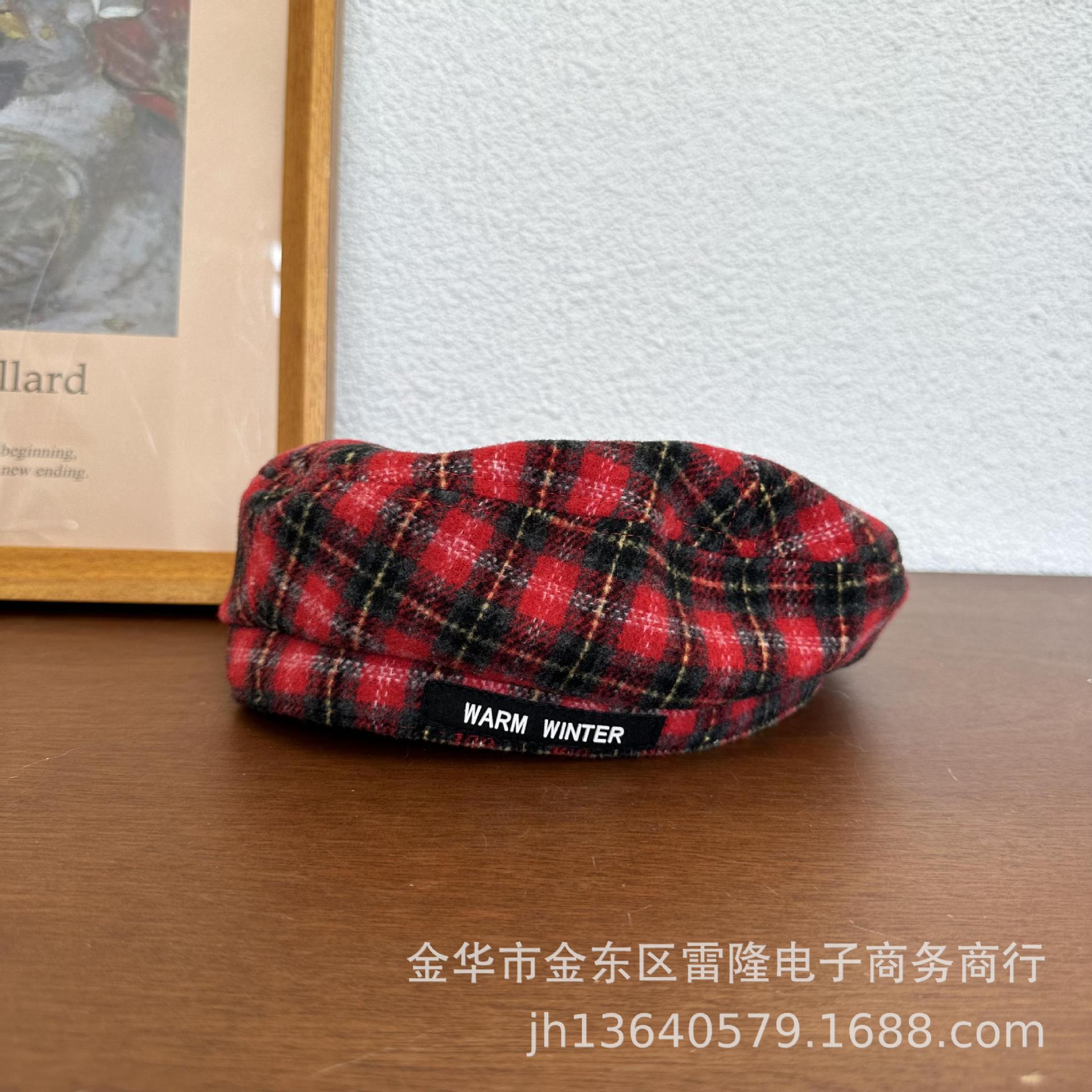 Boina para niños británica ins otoño e invierno retro a cuadros de lana niña niño sombrero de pintor estilo occidental sombrero de bebé
