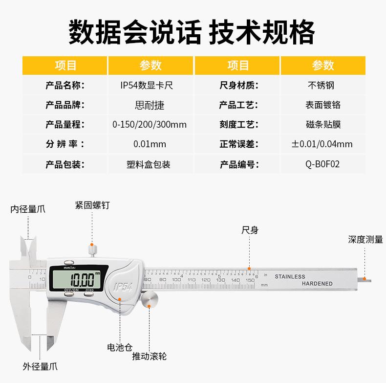 Calibrador digital electrónico de grado IP54, calibrador Vernier de acero inoxidable de alta precisión, 150-200-300 mm