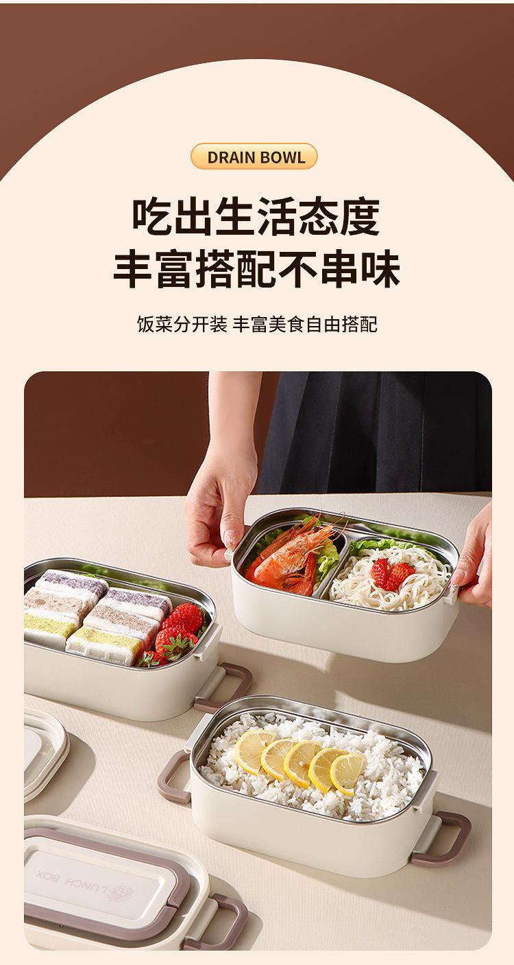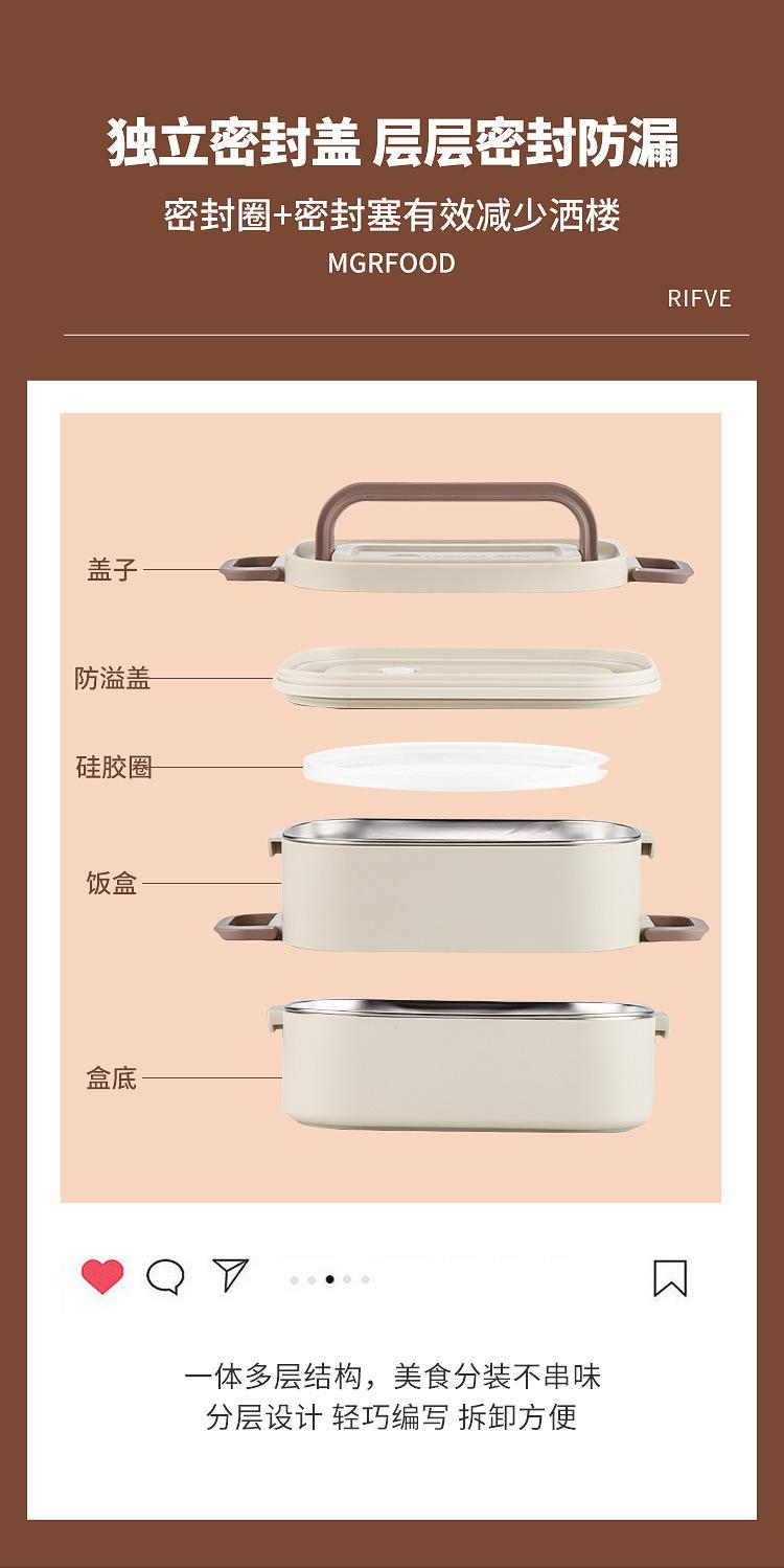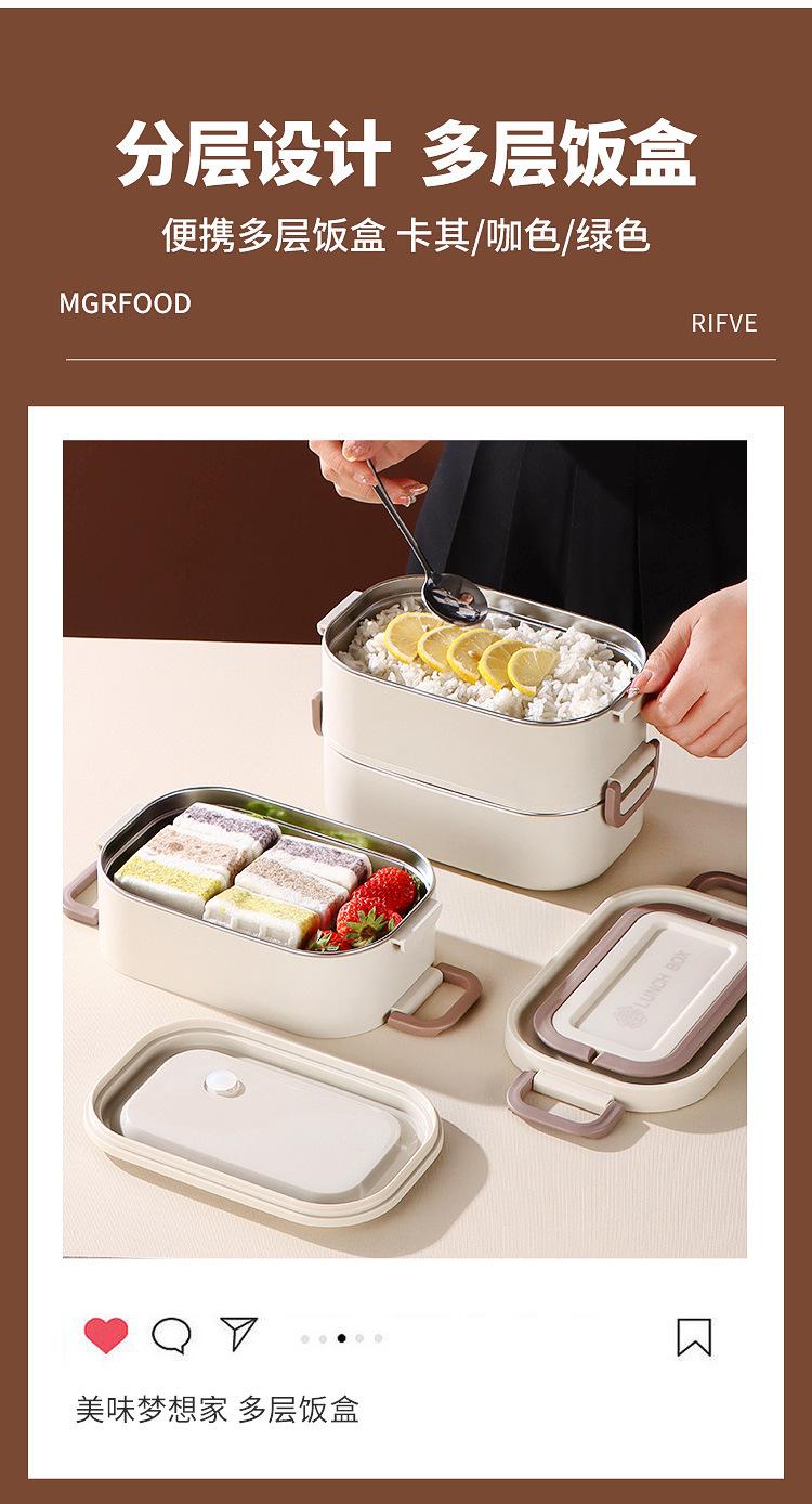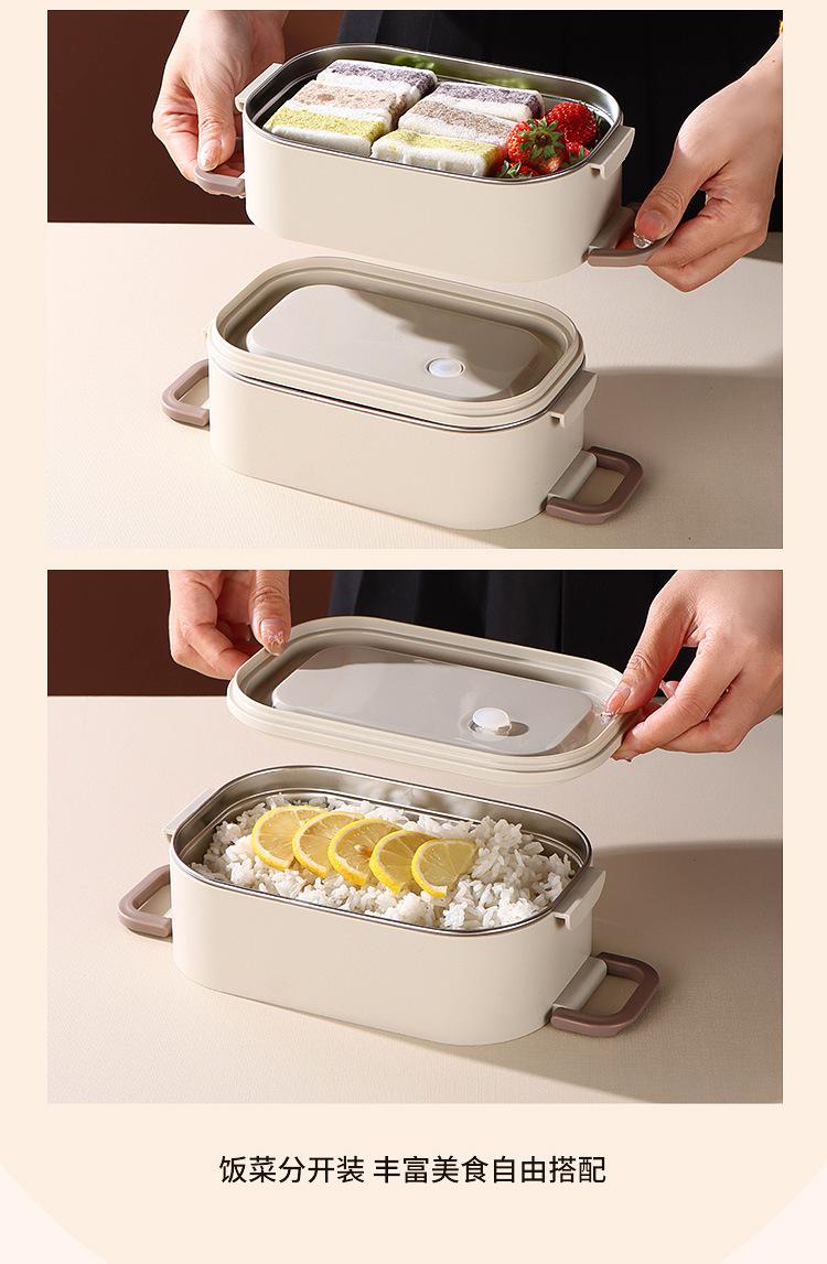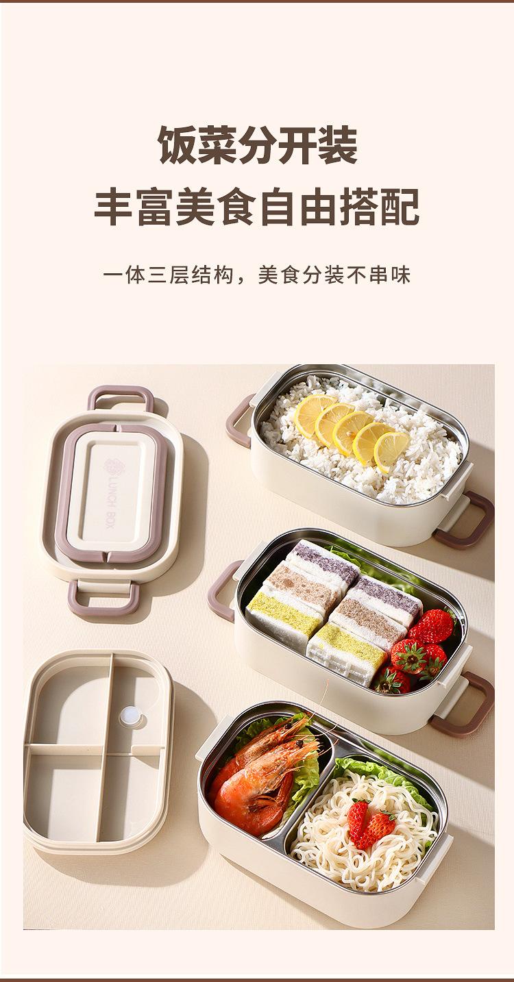 Lonchera para estudiantes de doble capa de acero inoxidable 304, lonchera de tres capas sellada para oficina con tapa y sello aislante.