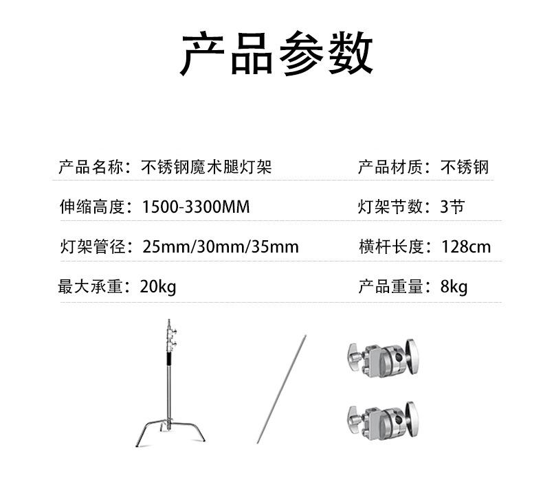 (basic model) 3.3m magic leg light stand with crossbar suit, (spray paint model) 3.3m magic leg light stand wi...