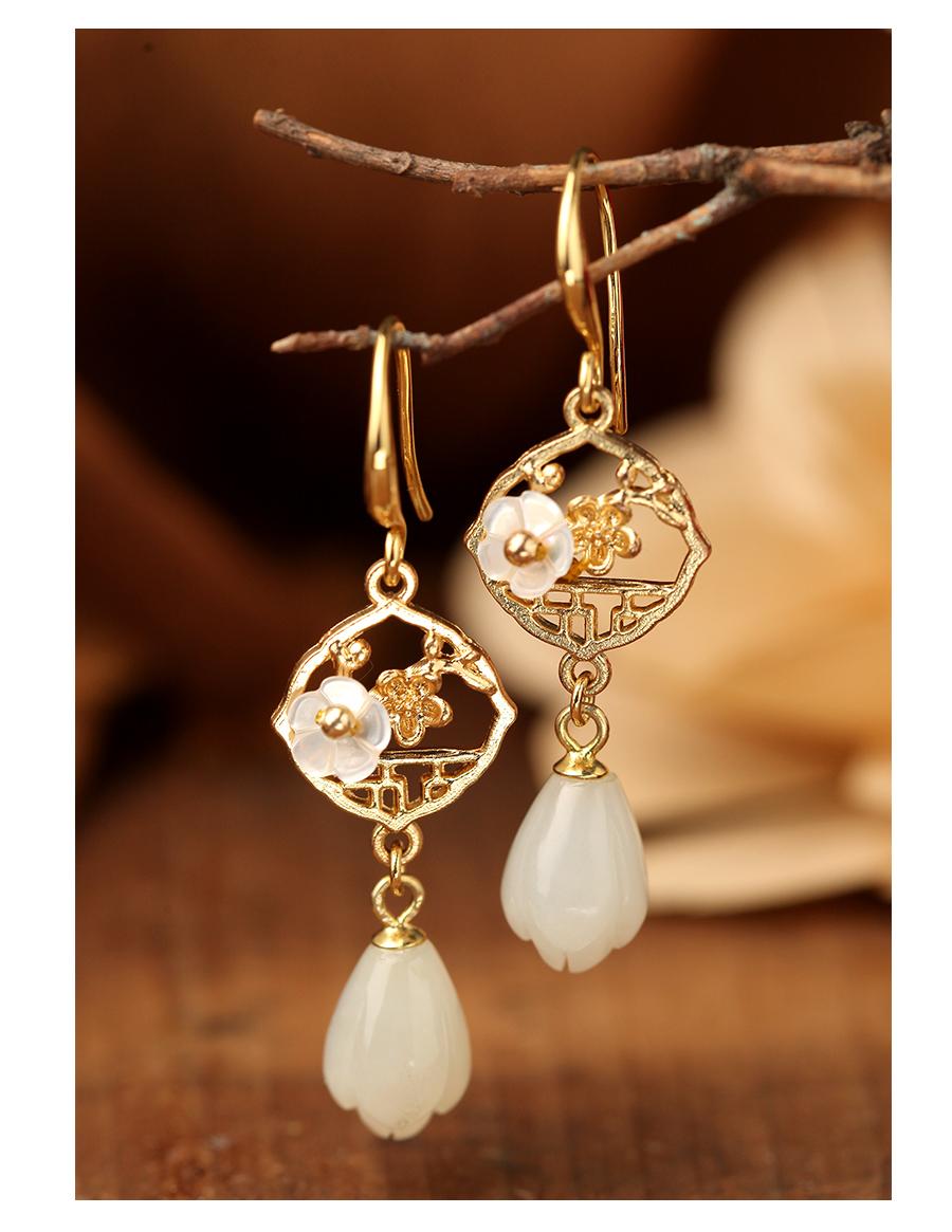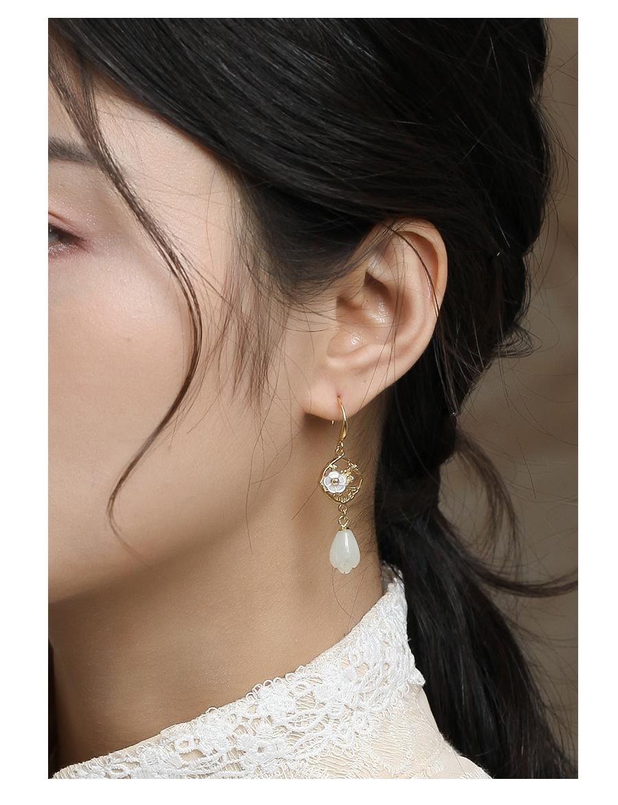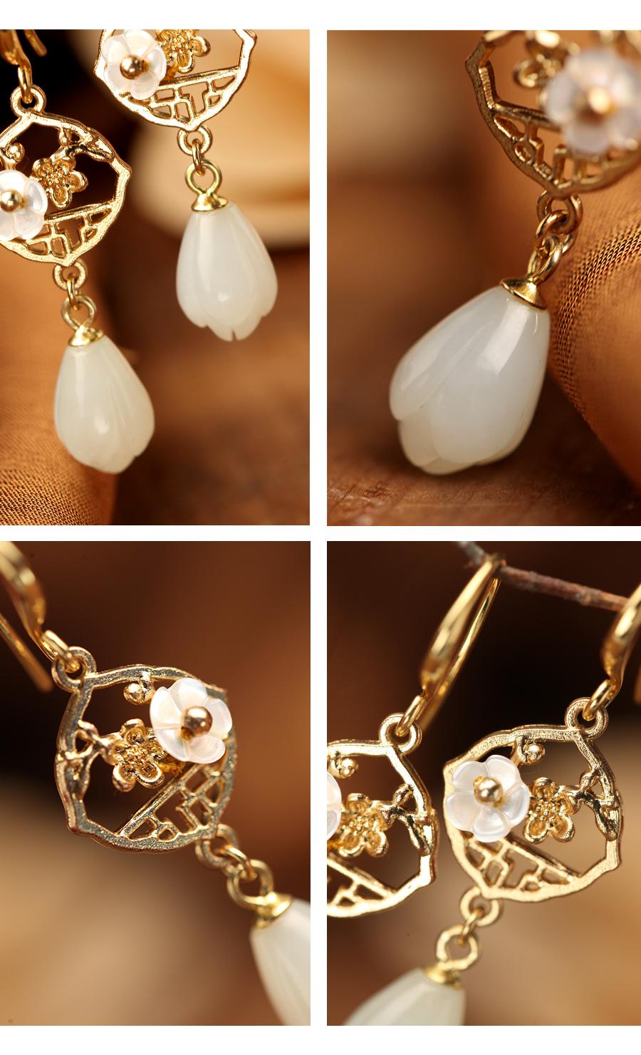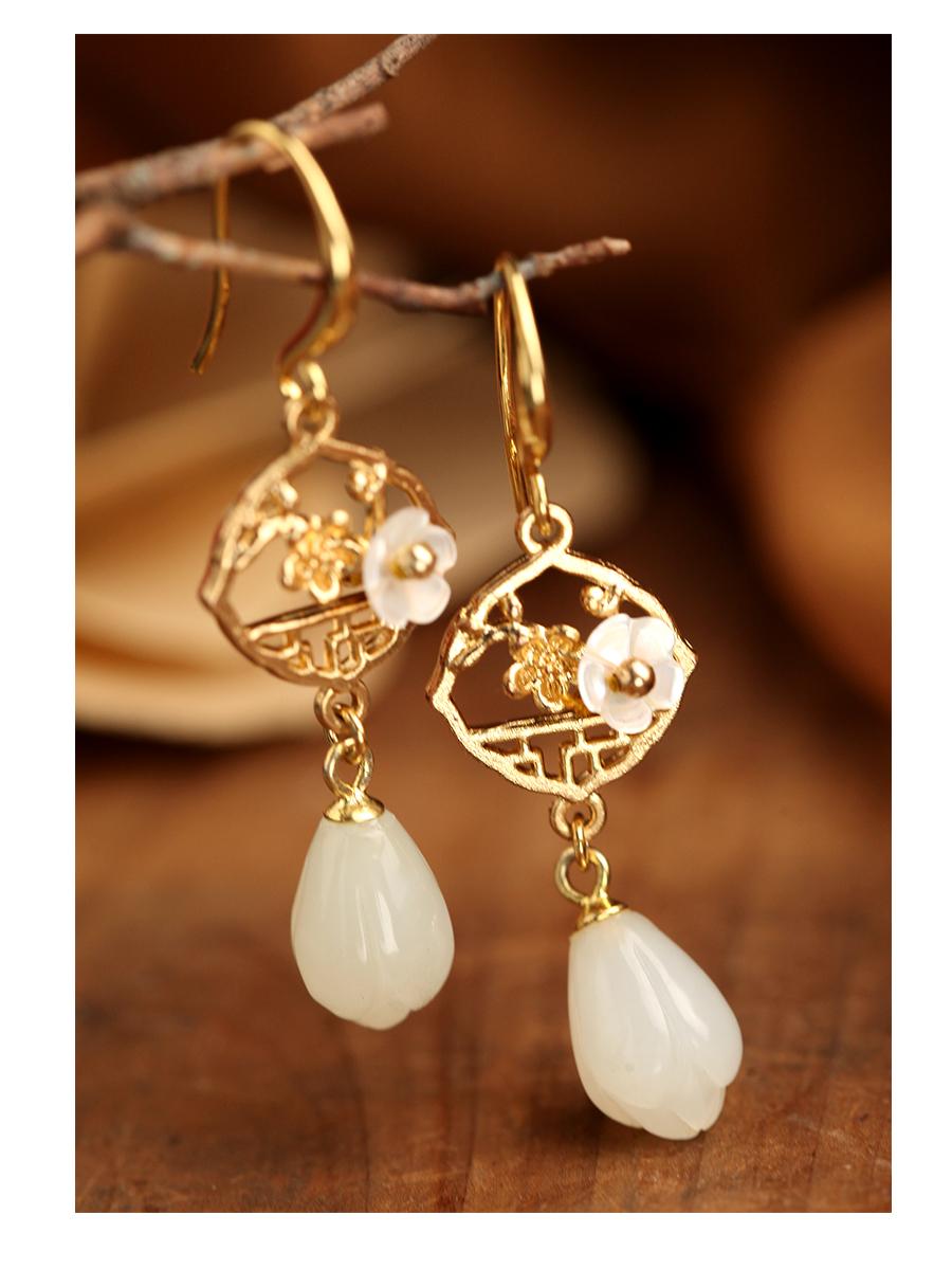 Pendientes antiguos de jade hetiano para mujer, diseño de nicho con borlas, luz blanca, de lujo, de alta gama, nuevo estilo.
