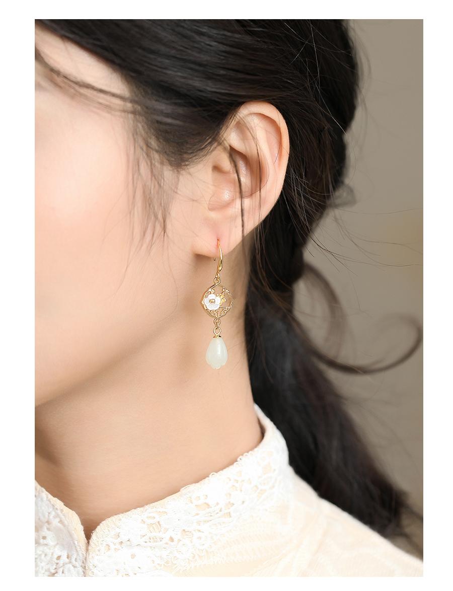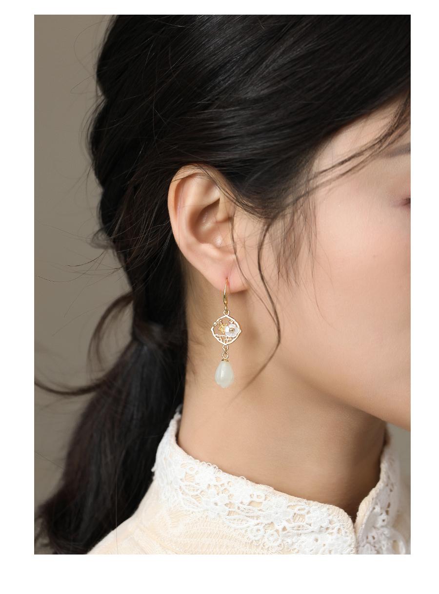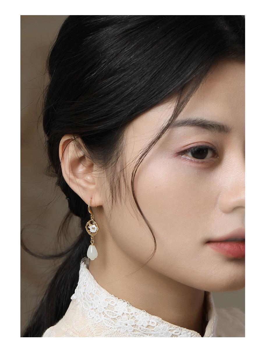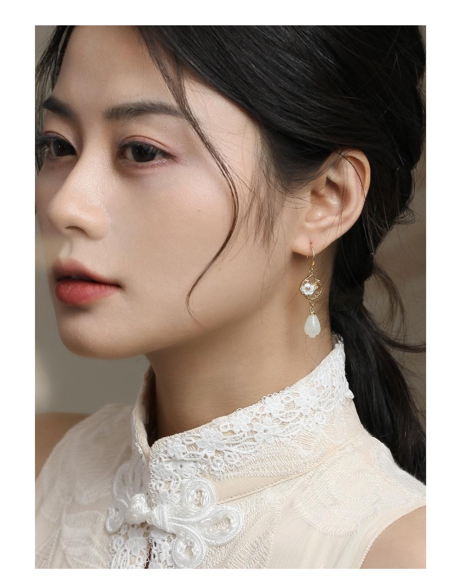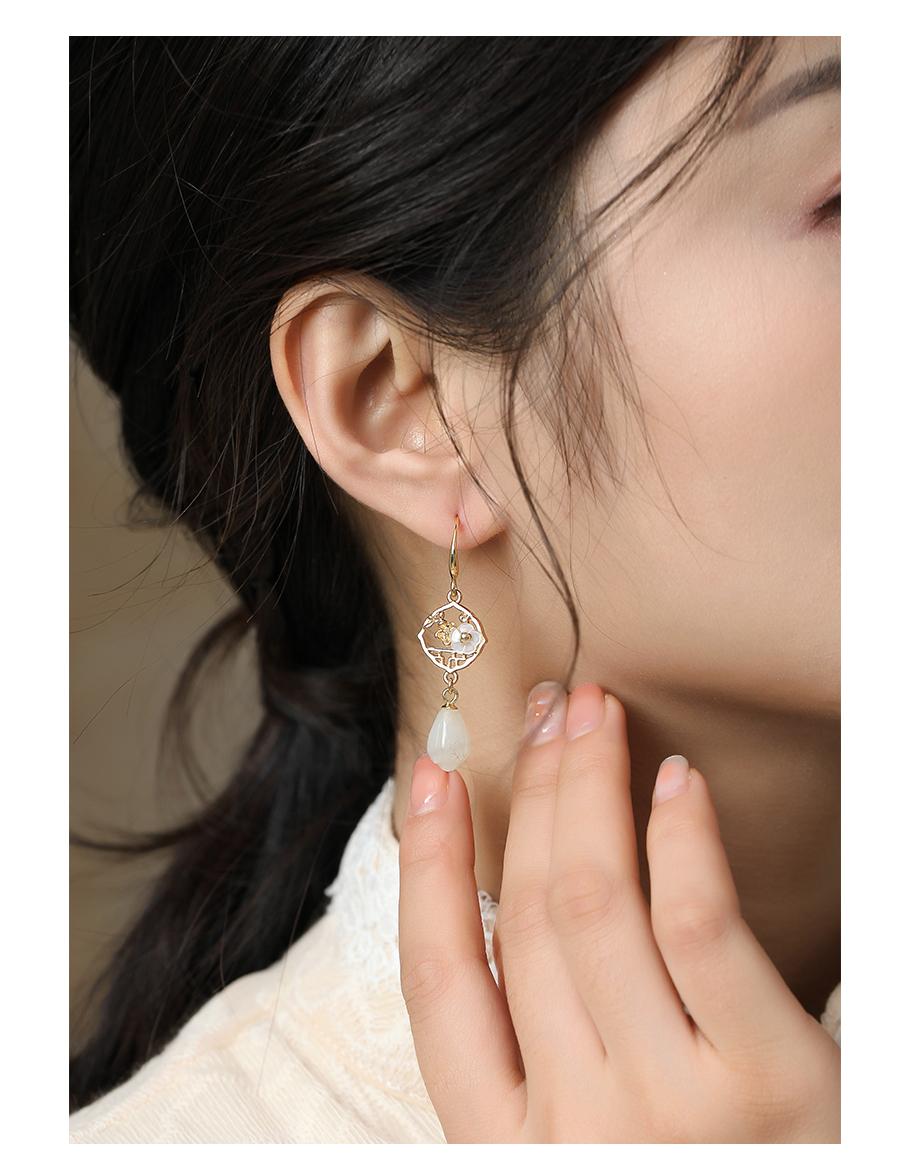 Pendientes antiguos de jade hetiano para mujer, diseño de nicho con borlas, luz blanca, de lujo, de alta gama, nuevo estilo.