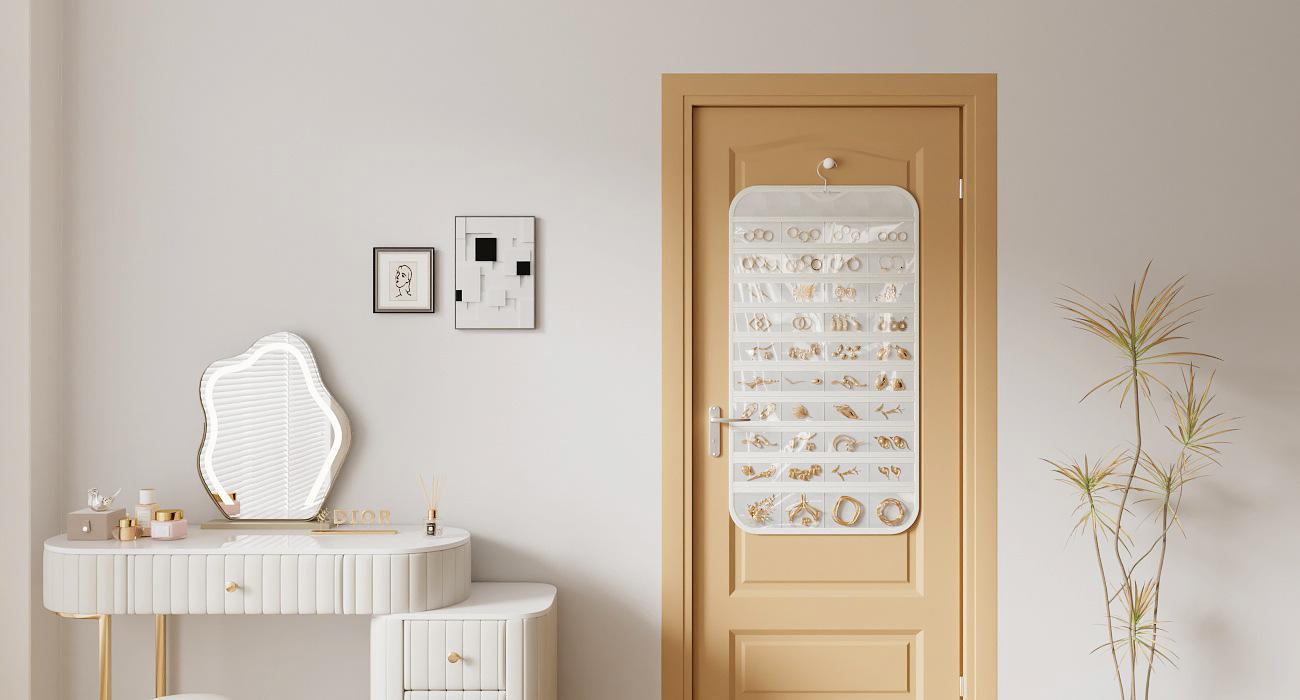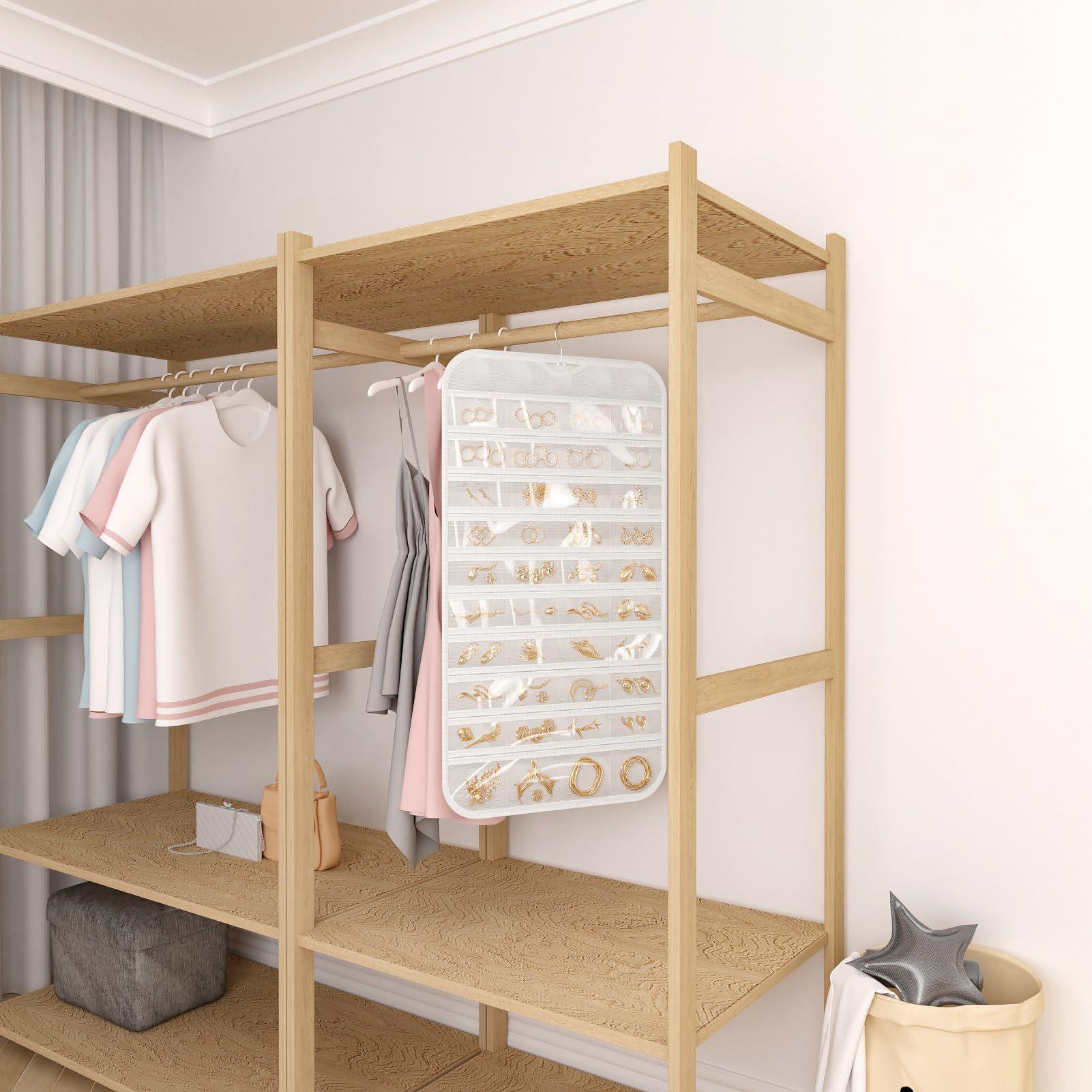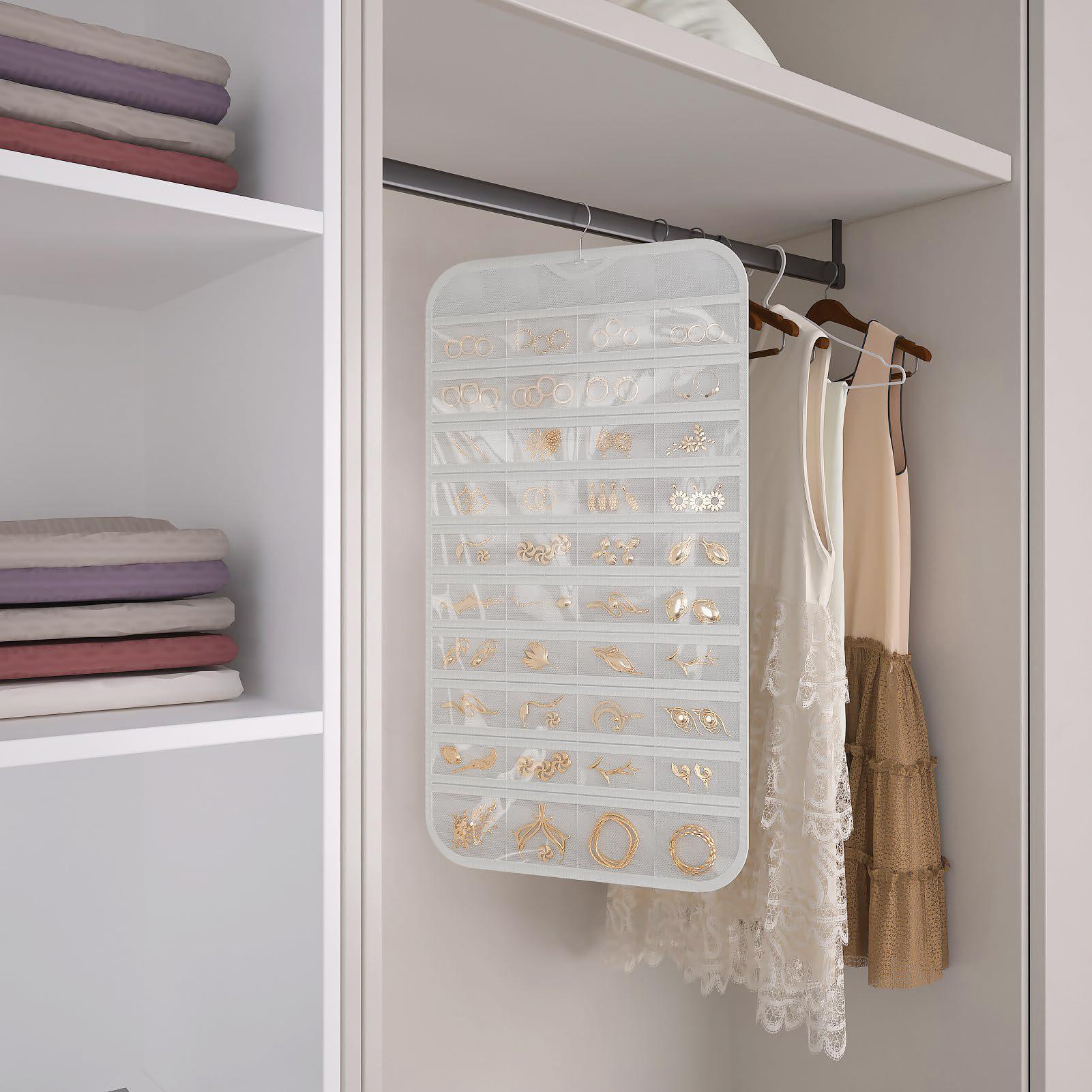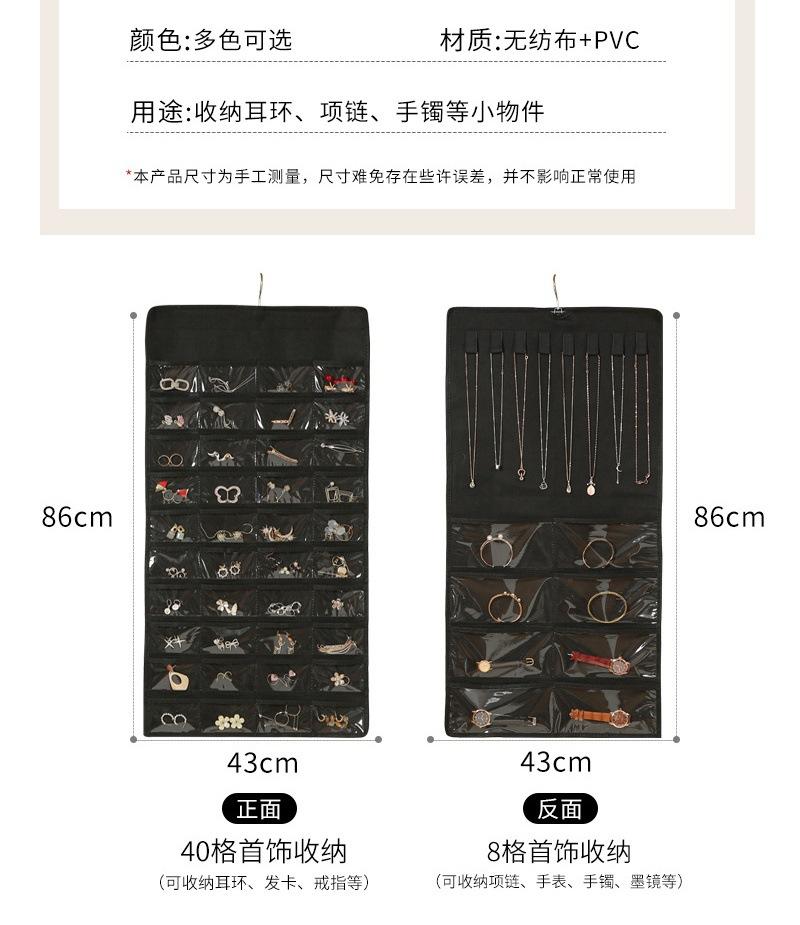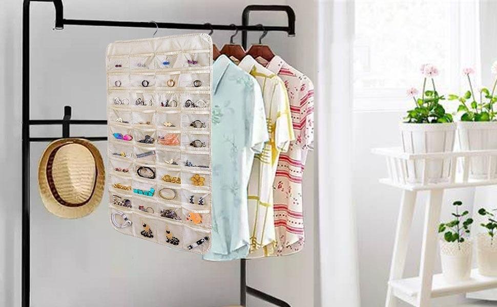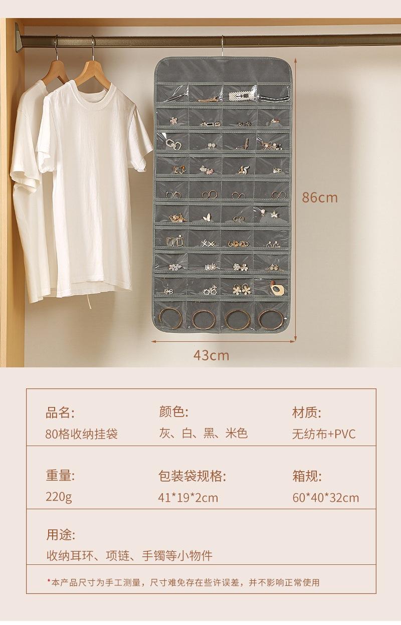 Caja de almacenamiento de joyas colgante de viaje con 80 bolsillos para guardar joyas, pendientes, collares, pulseras y anillos, soporte de doble cara