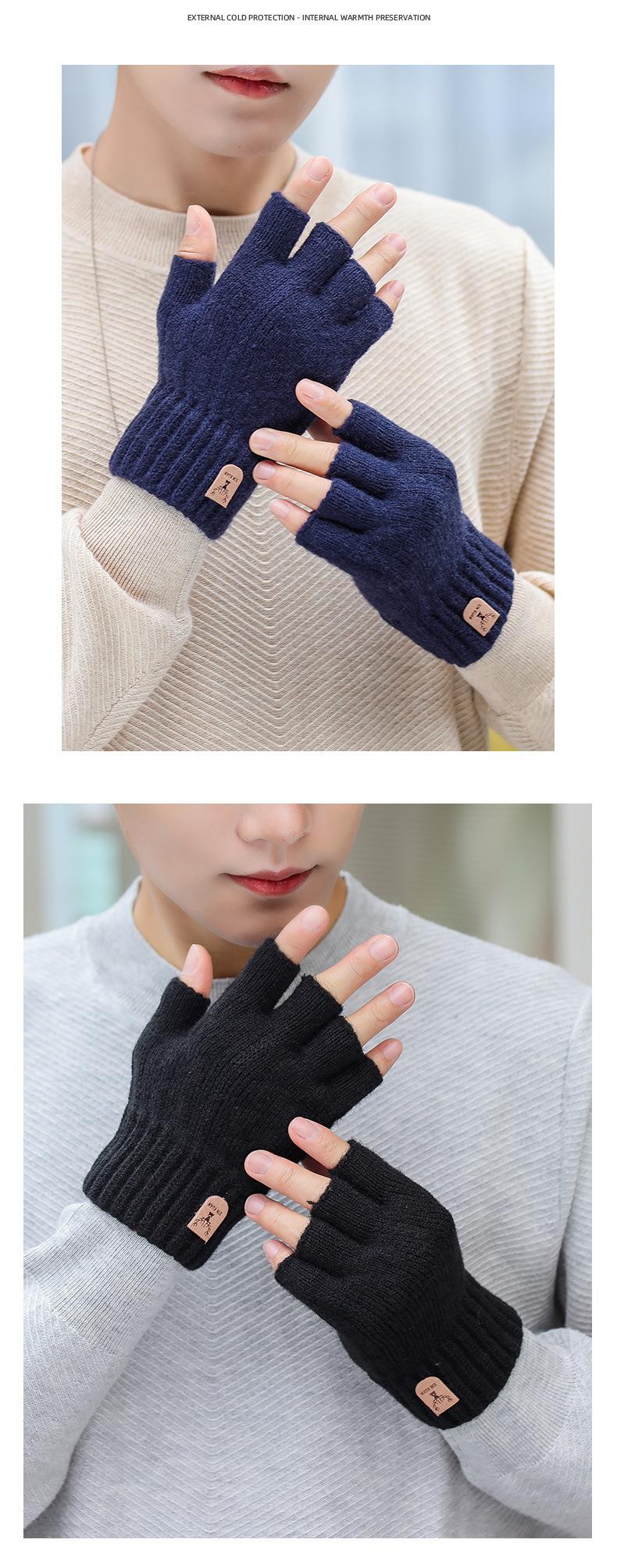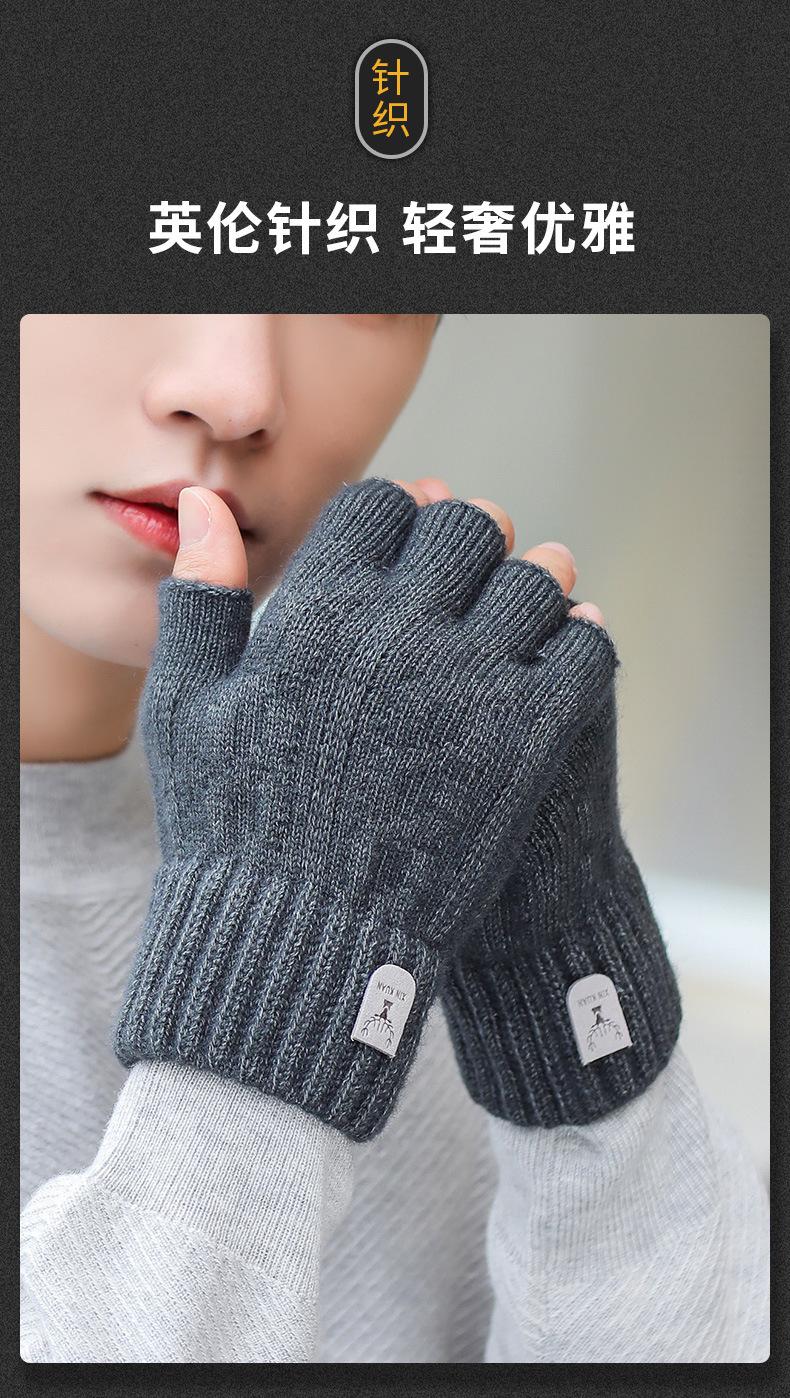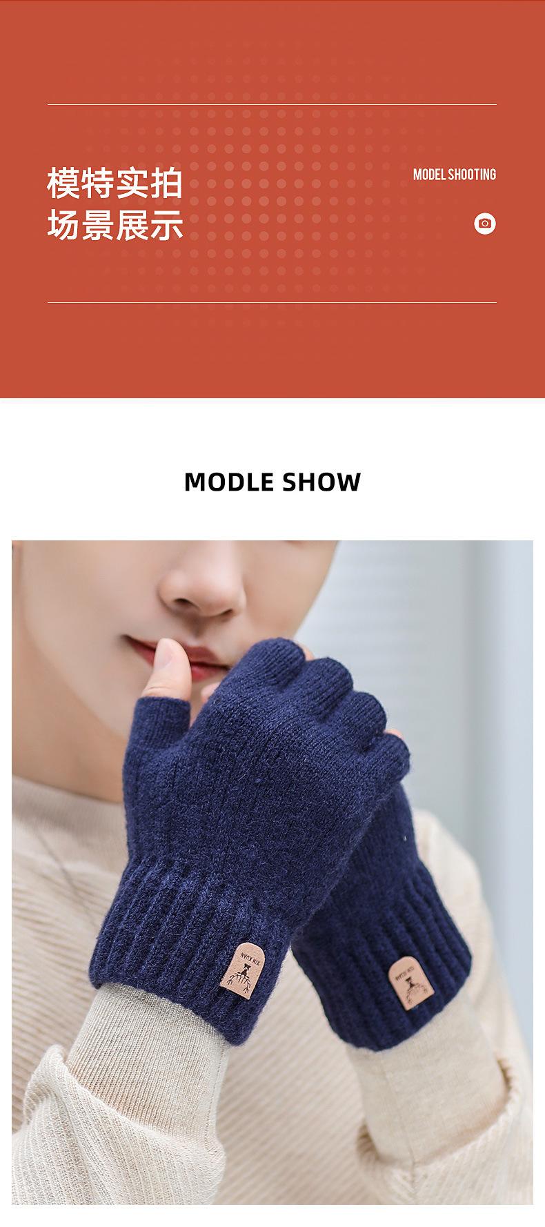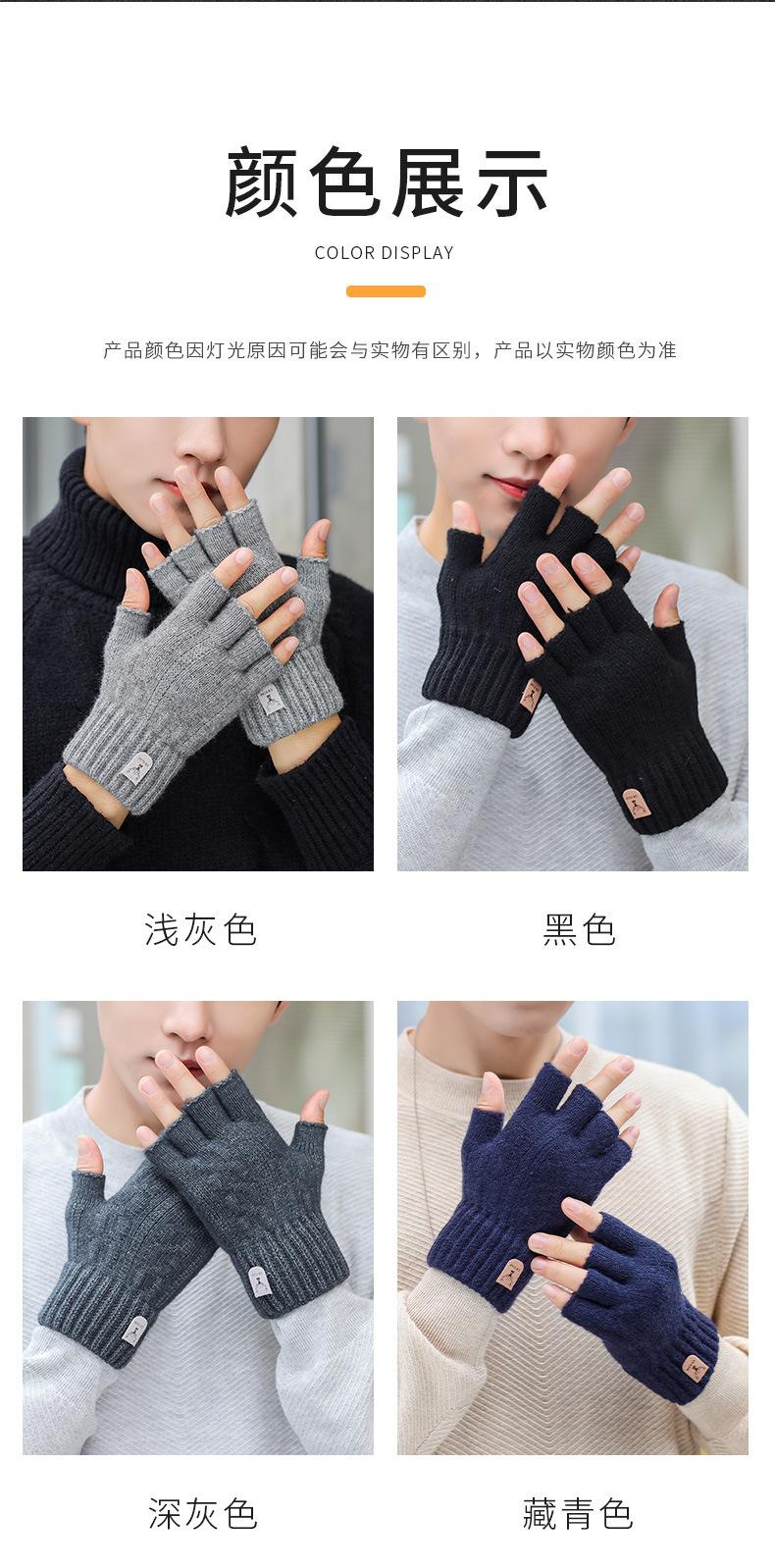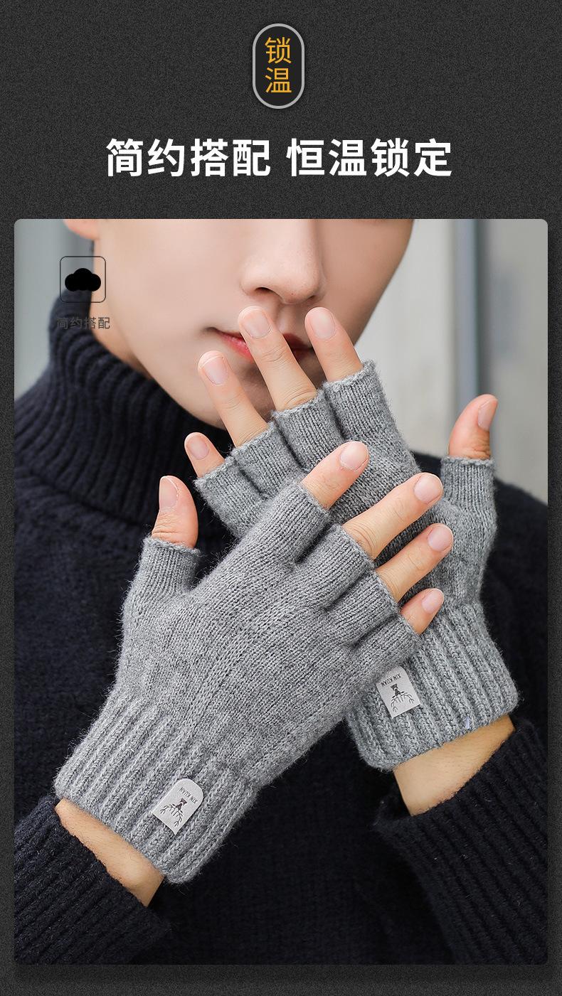 Guantes de medio dedo de fábrica de invierno gruesos y cálidos para hombre, guantes de montar de dedos abiertos a prueba de frío y tejidos, exclusivos transfronterizos