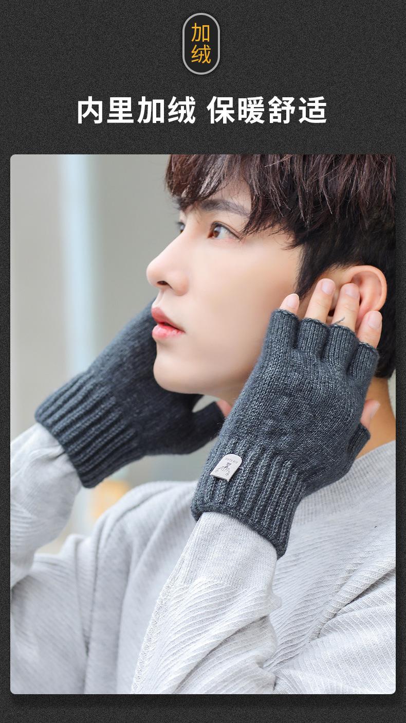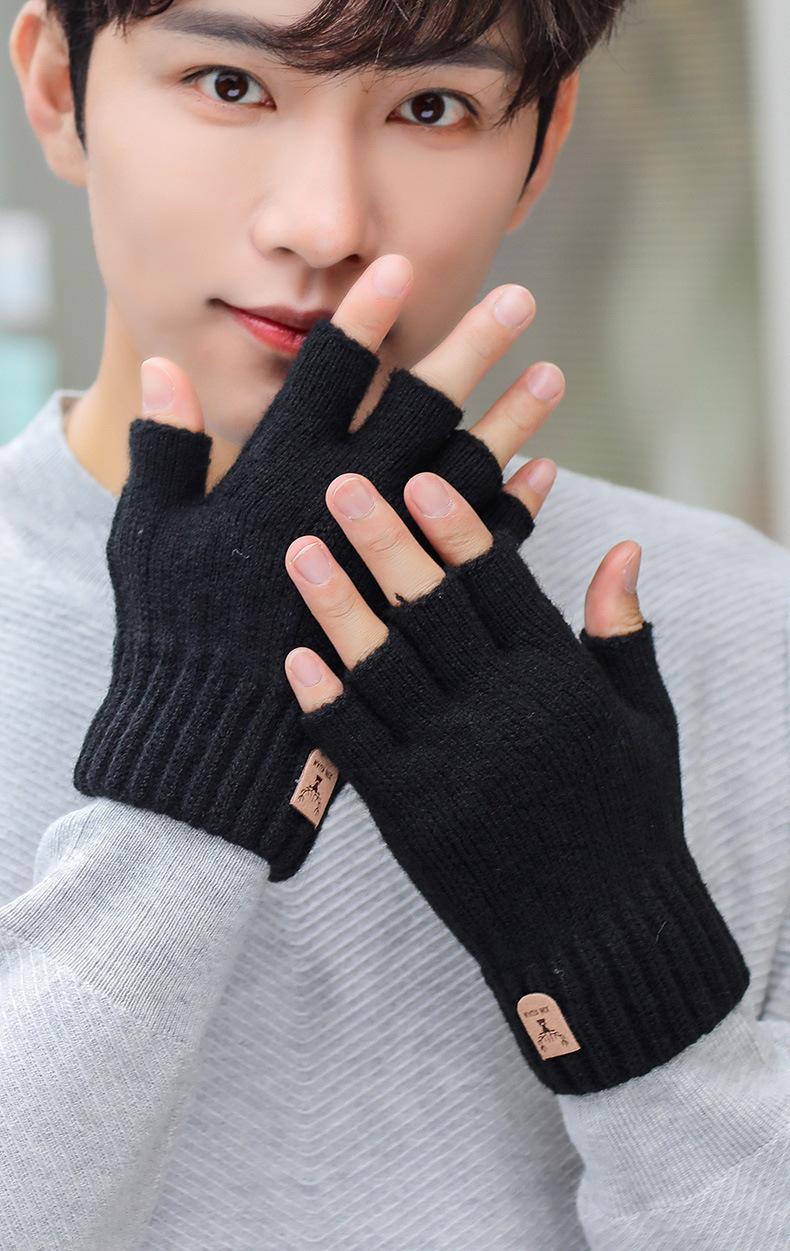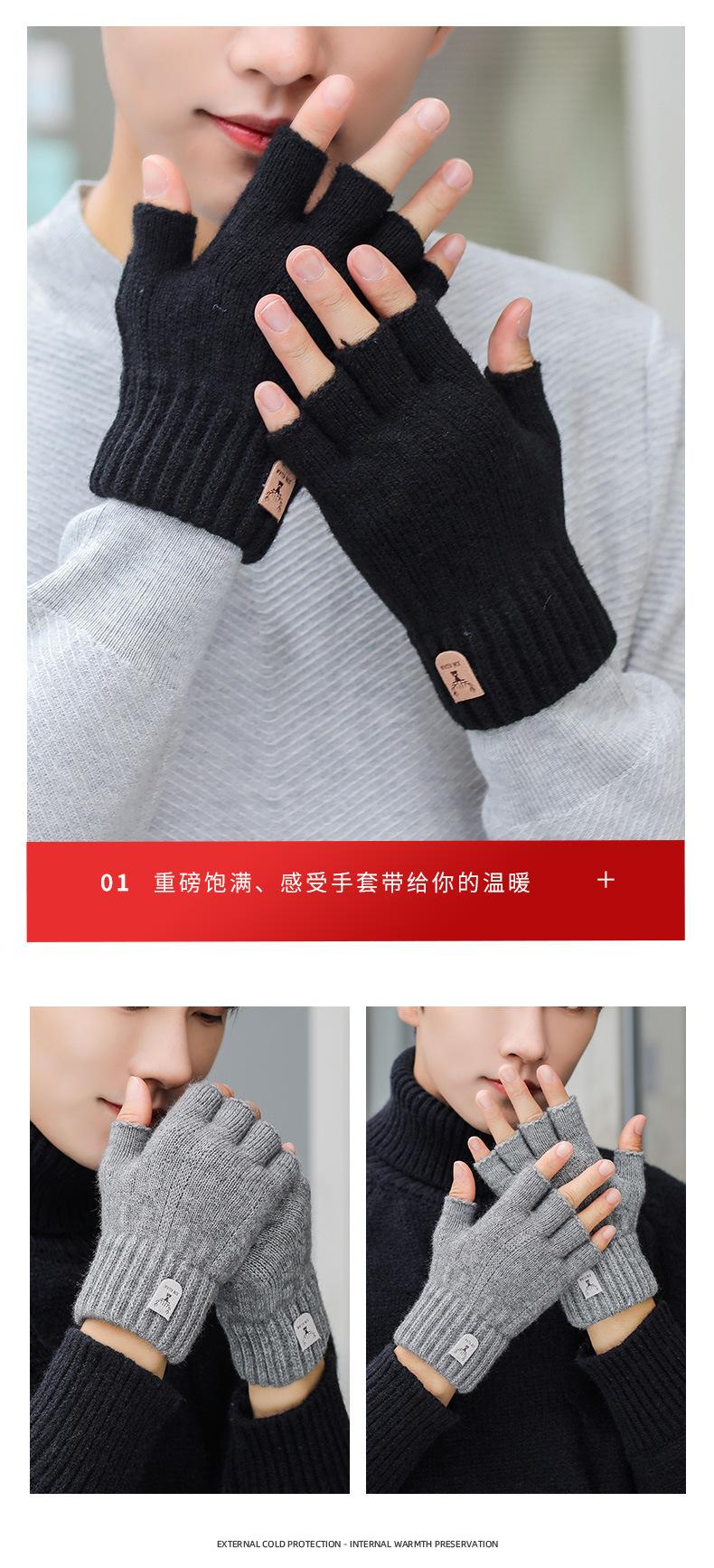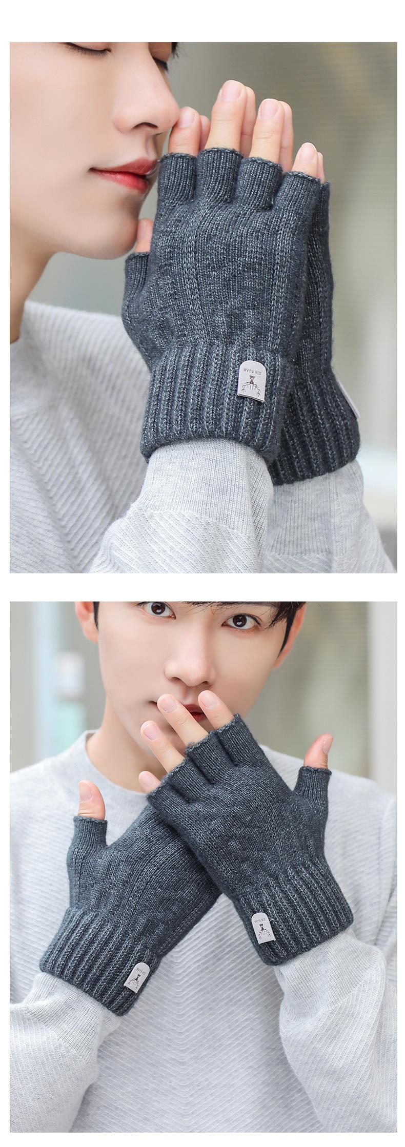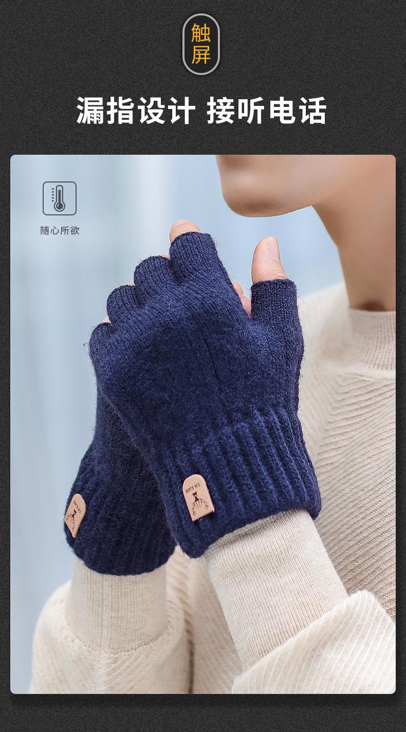 Guantes de medio dedo de fábrica de invierno gruesos y cálidos para hombre, guantes de montar de dedos abiertos a prueba de frío y tejidos, exclusivos transfronterizos