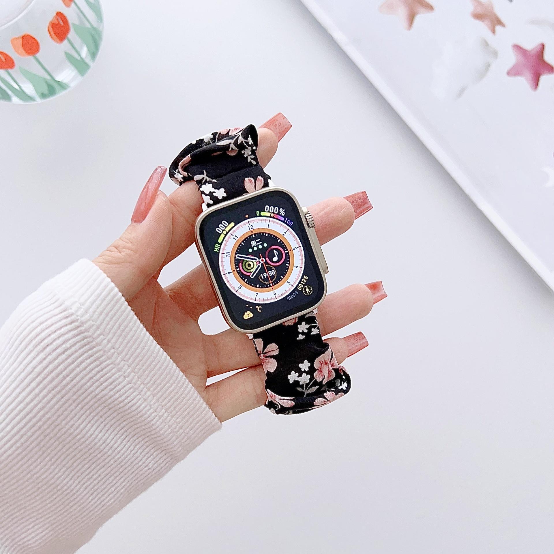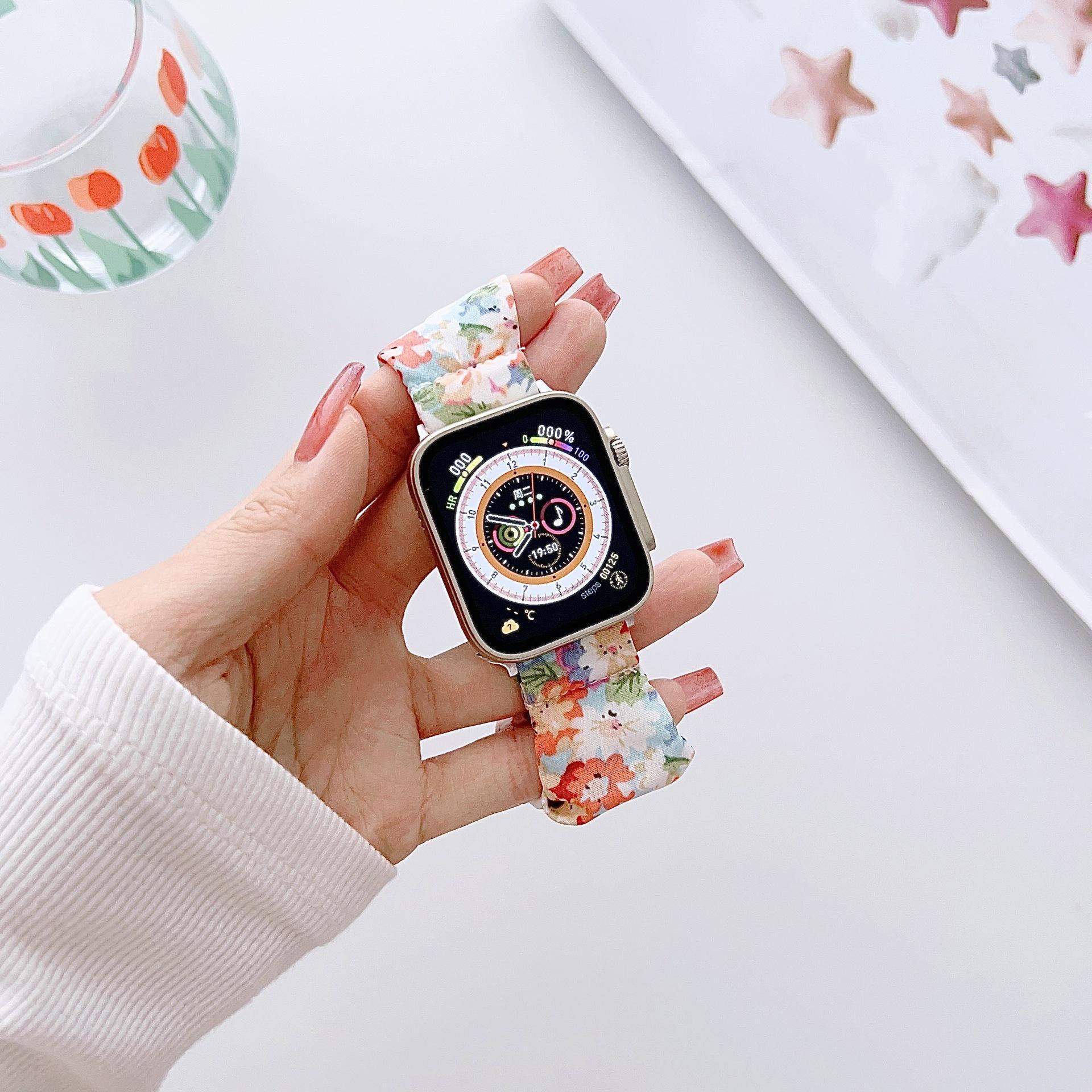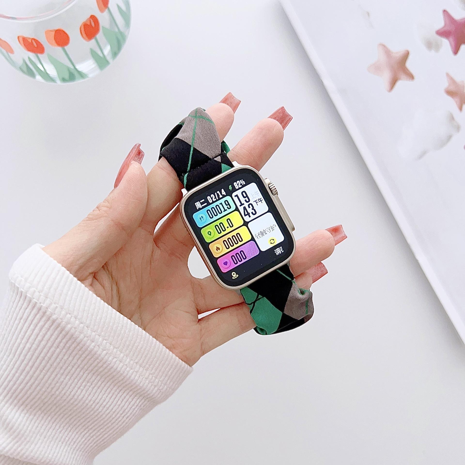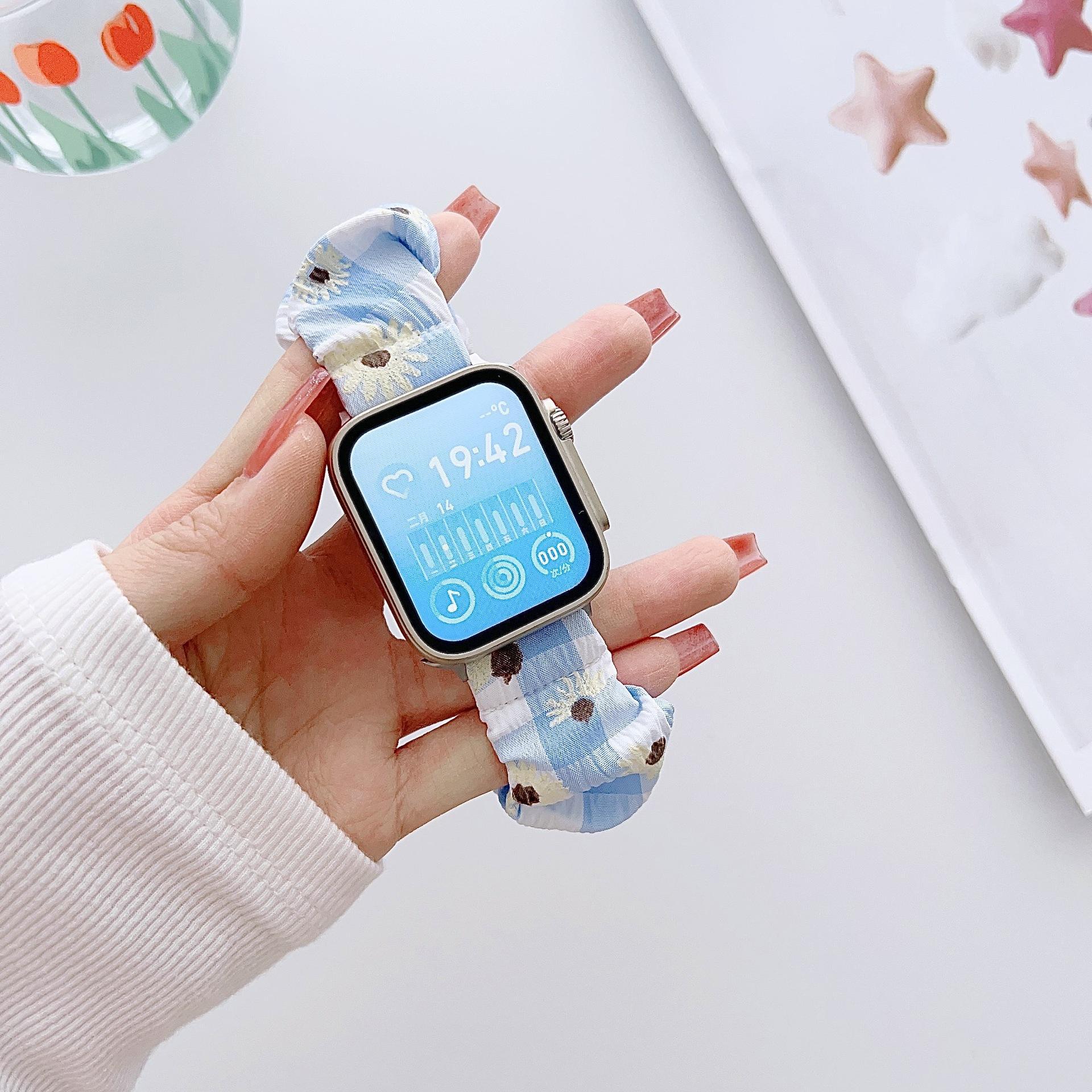 Correa elástica con pequeño anillo para el cabello fresco, adecuada para Apple Watch 8s9, correa para Apple Watch iWatch de la generación SE para mujeres.