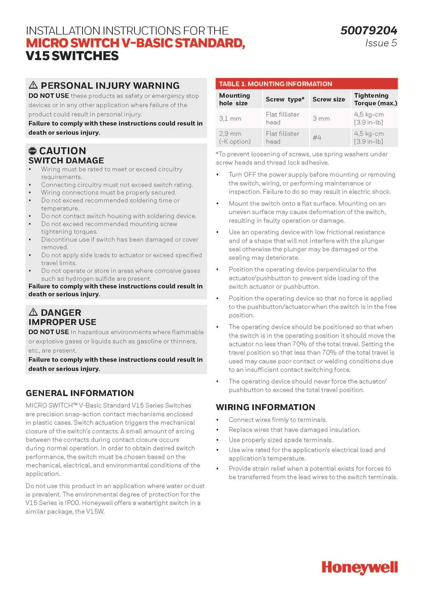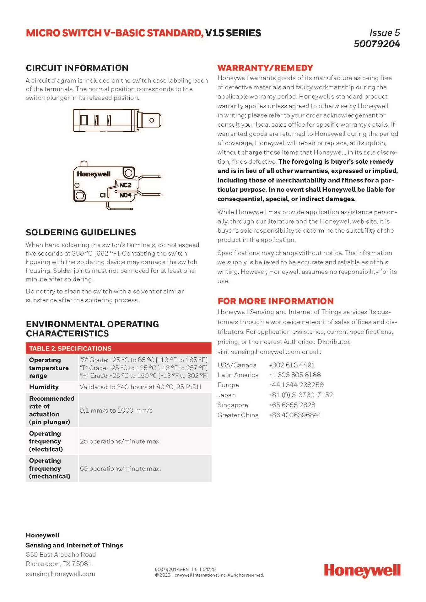 V15S05-EC015-K04 Interruptor de límite de recorrido de microinterruptor HONEYWELL/HONEYWELL