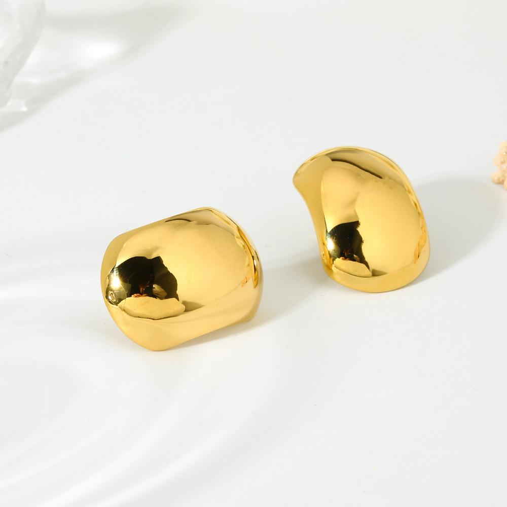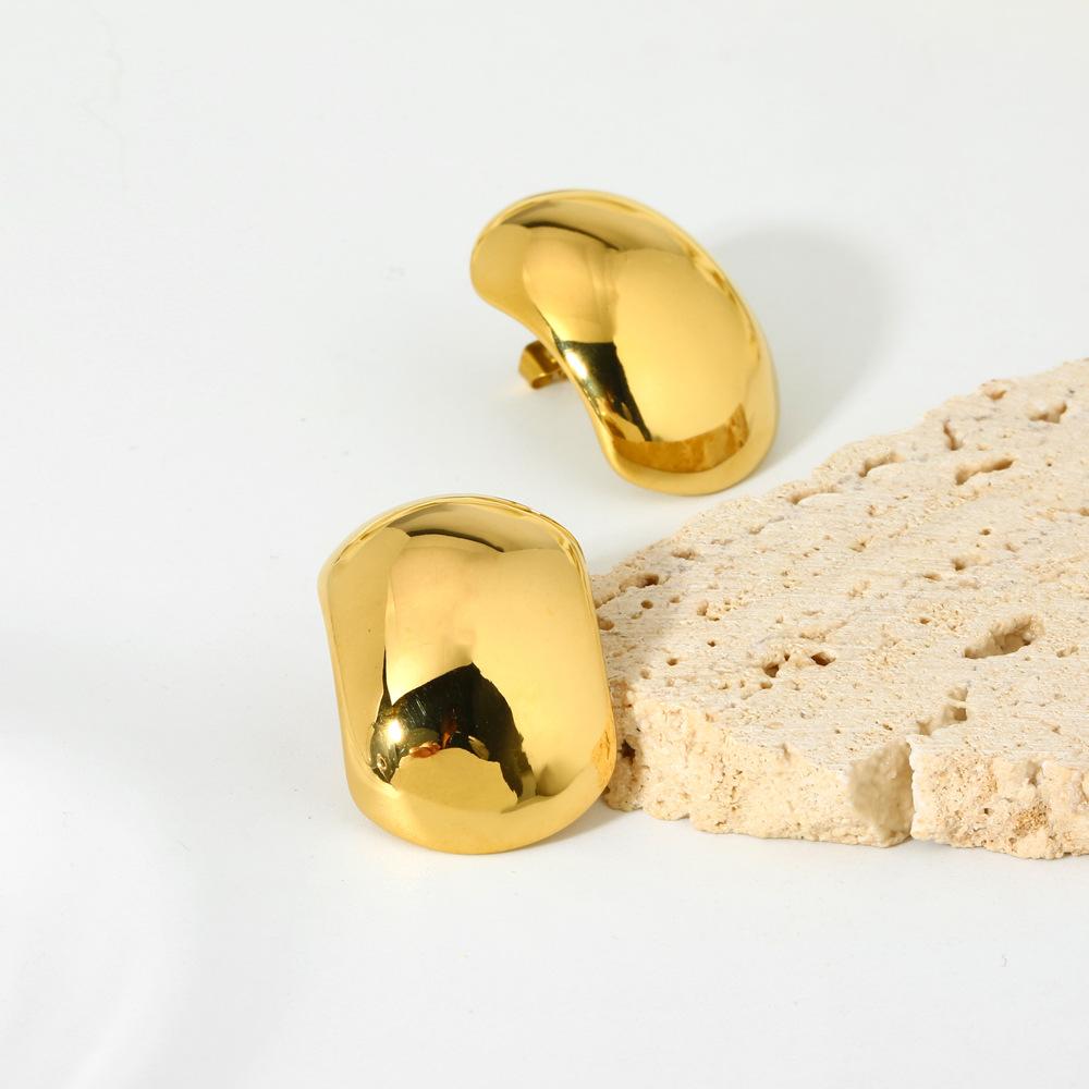 Aretes de moda europeos y americanos aretes simples de metal que combinan con todo oro de 16 quilates acero inoxidable nuevo diseño aretes curvos lisos