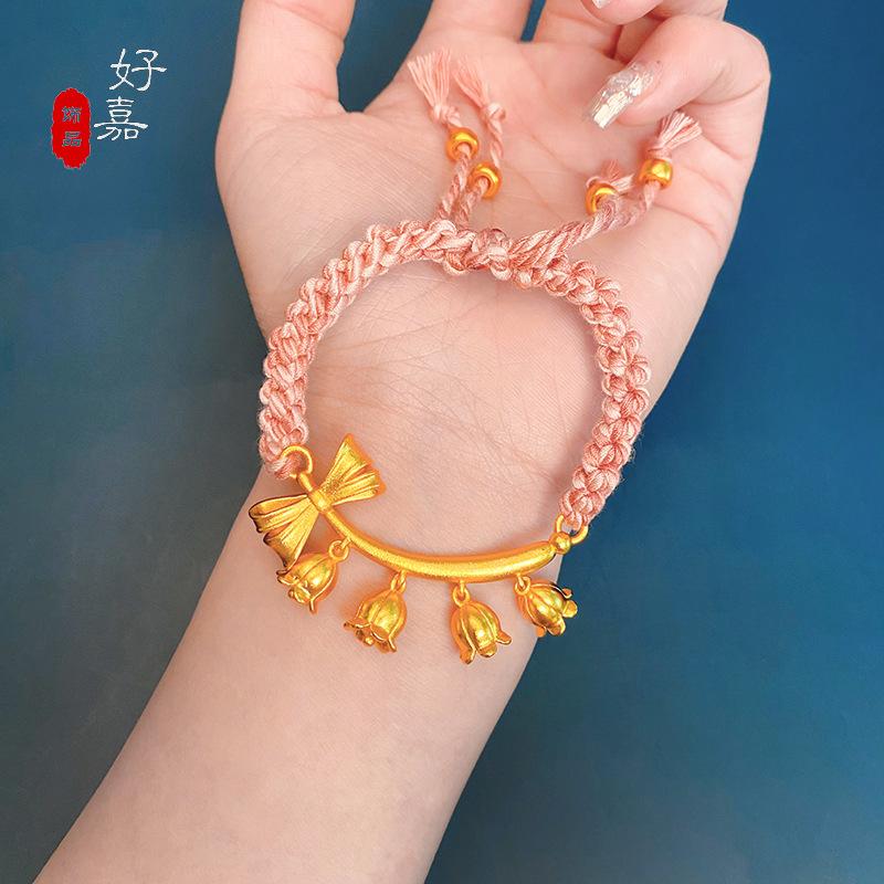 Compra Pulsera de cuerda rosa con lazo de lirio para el codo, cobre chapado en oro, tejida a mano, dulce, de alta calidad, joyería para mujer al por mayor en Joom.pro