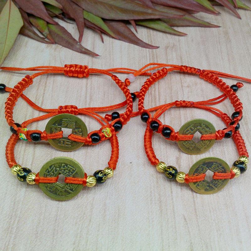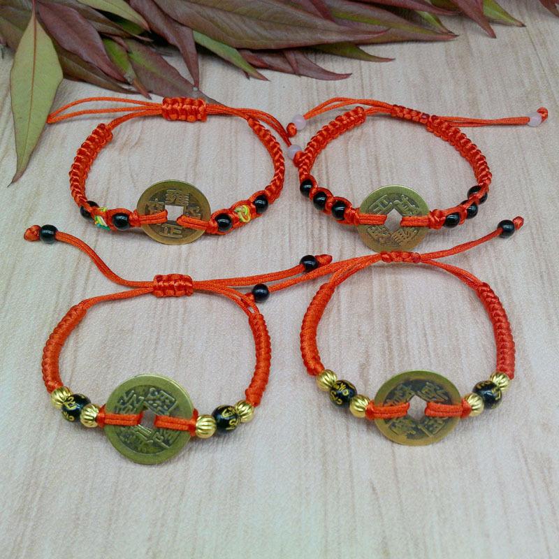 Compra Pulsera de cuerda de mano tejida a mano para hombres y mujeres Benmingnian de la suerte con monedas de los Cinco Emperadores Cobre puro Cobre vintage Rojo al por mayor en Joom.pro