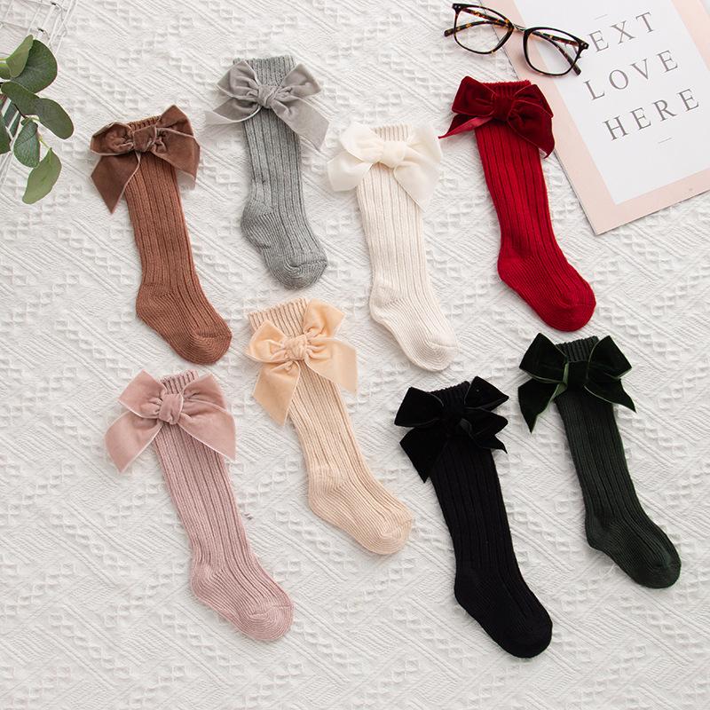 Suministro Directo de Fabricante Español Calcetines de Piso con Lazo para Recién Nacido Calcetines de Princesa Calcetines de Algodón hasta Media Pantorrilla para Niñas Gruesos y Cálidos