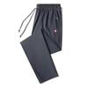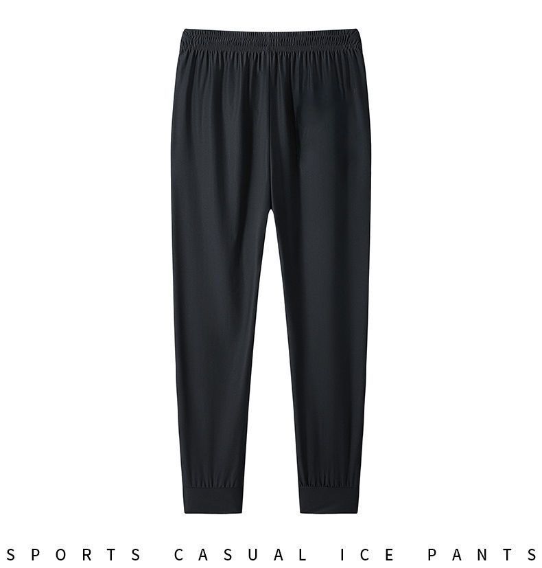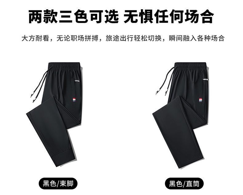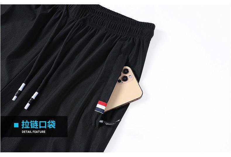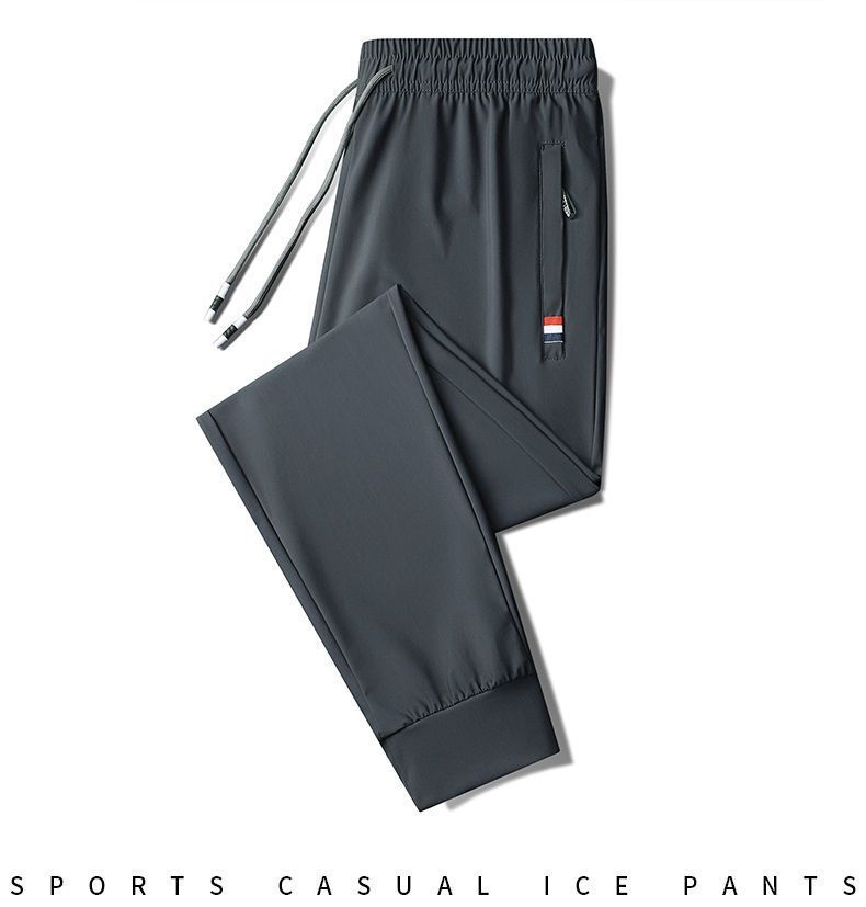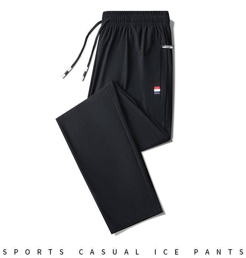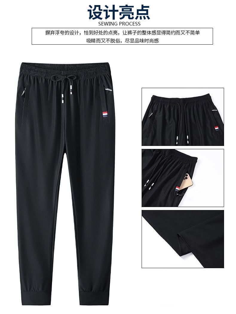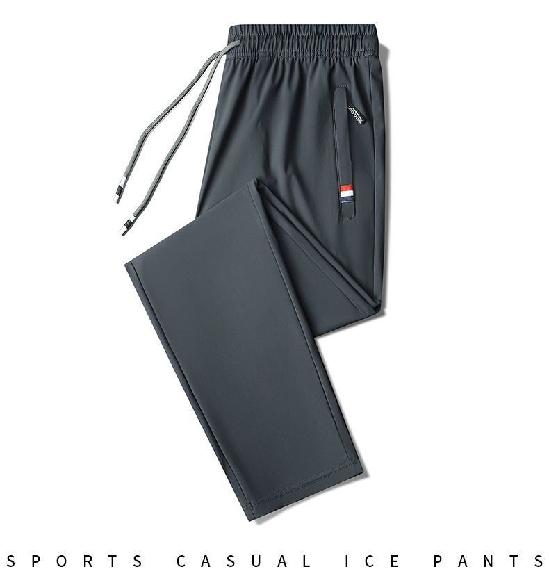 Pantalones casuales de seda de hielo al por mayor para hombre, pantalones deportivos de verano finos, rectos, sueltos, de talla grande, con puntera y bolsillo y cremallera.