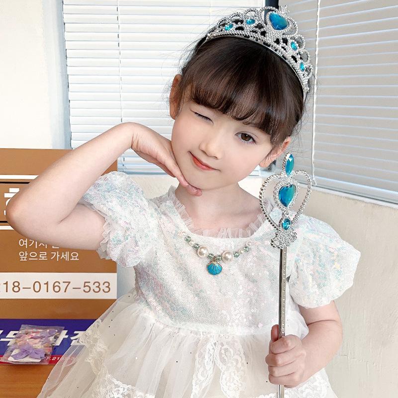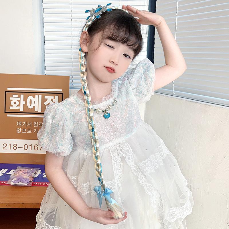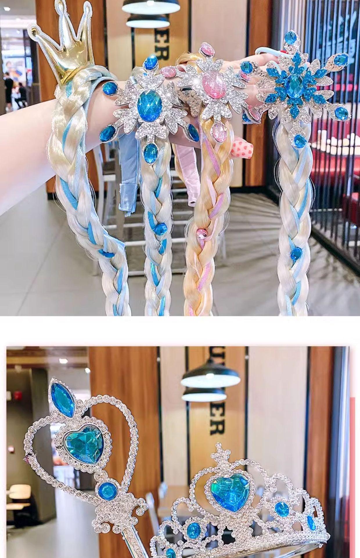 Corona de Princesa Aisha para Niños Tocado Diadema de Cumpleaños para Bebé Peluca Trenza Niña Aisha Frozen Varita Mágica