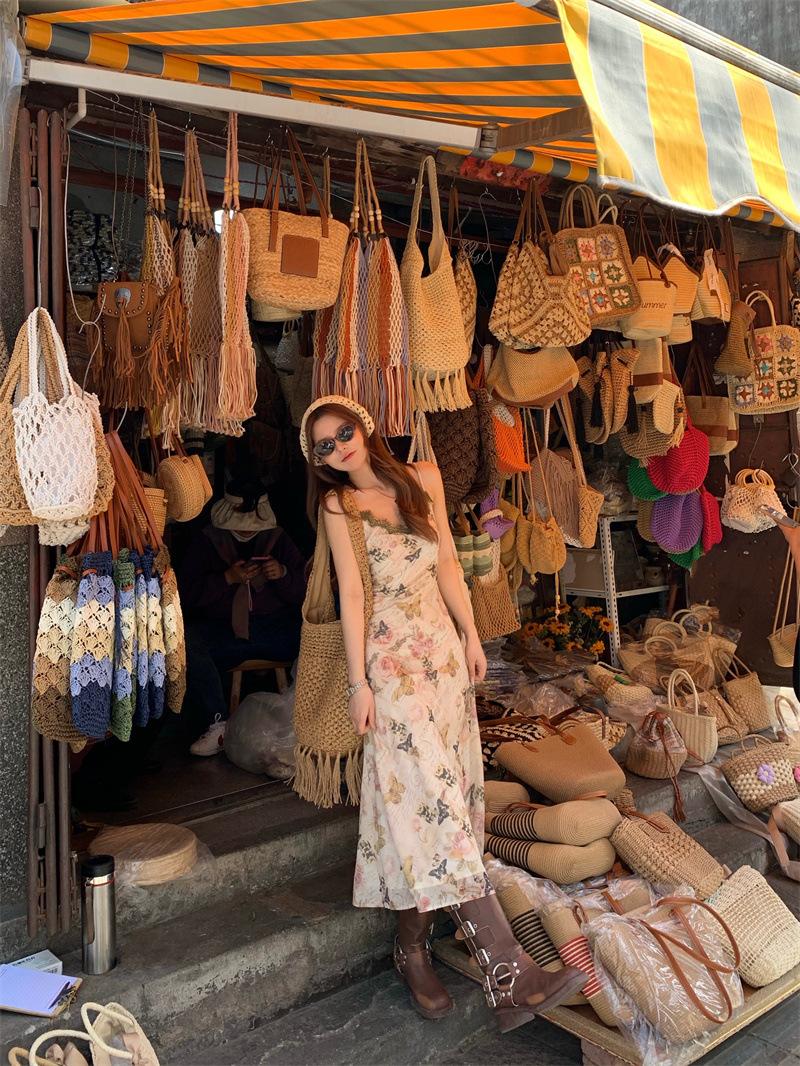 Compra Falda floral de mariposa, estilo francés, falda lencero, estilo vacaciones de verano para mujer, vestido con cuello en V, falda ajustada a la cintura y cadera, falda larga al por mayor en Joom.pro