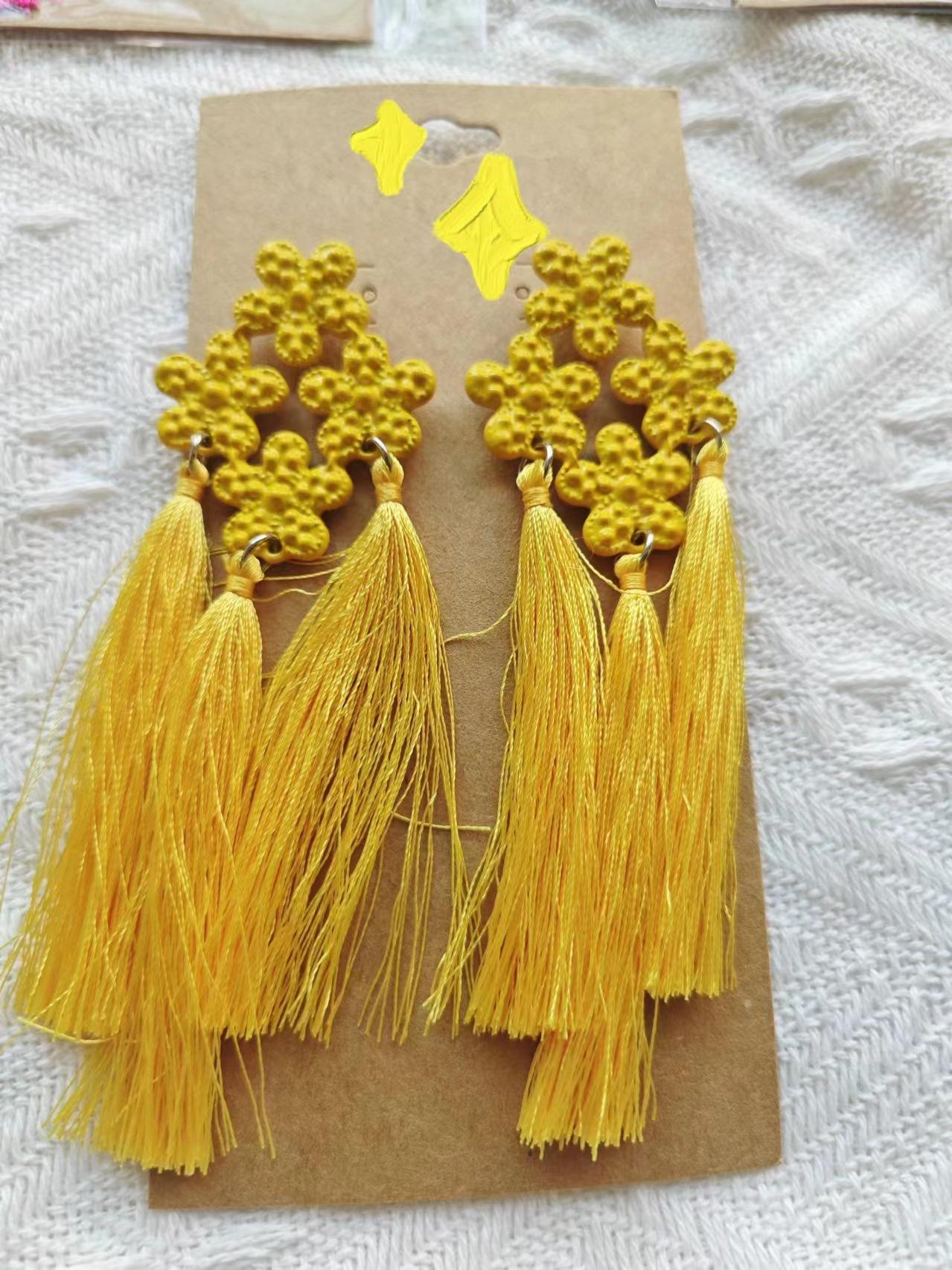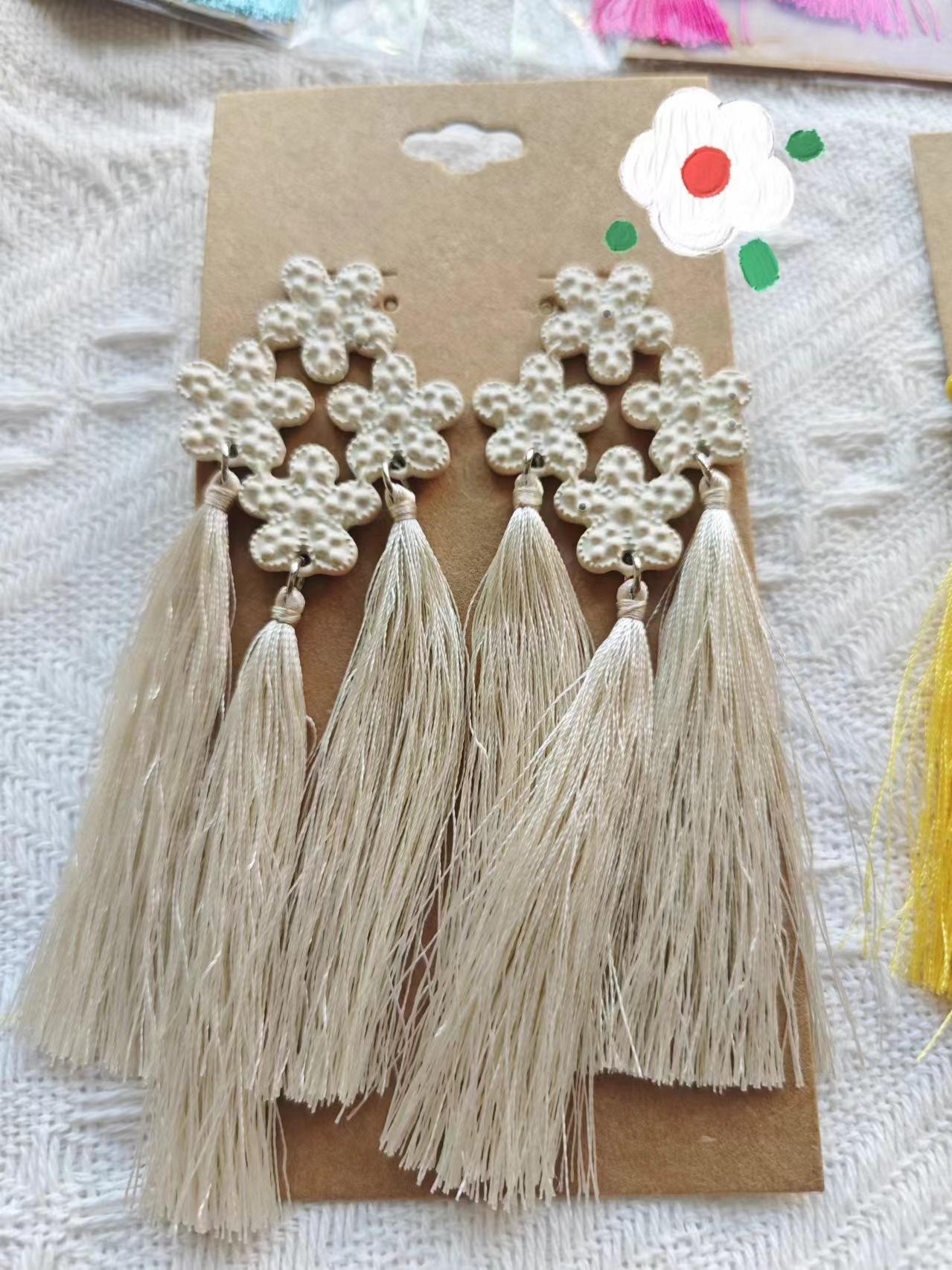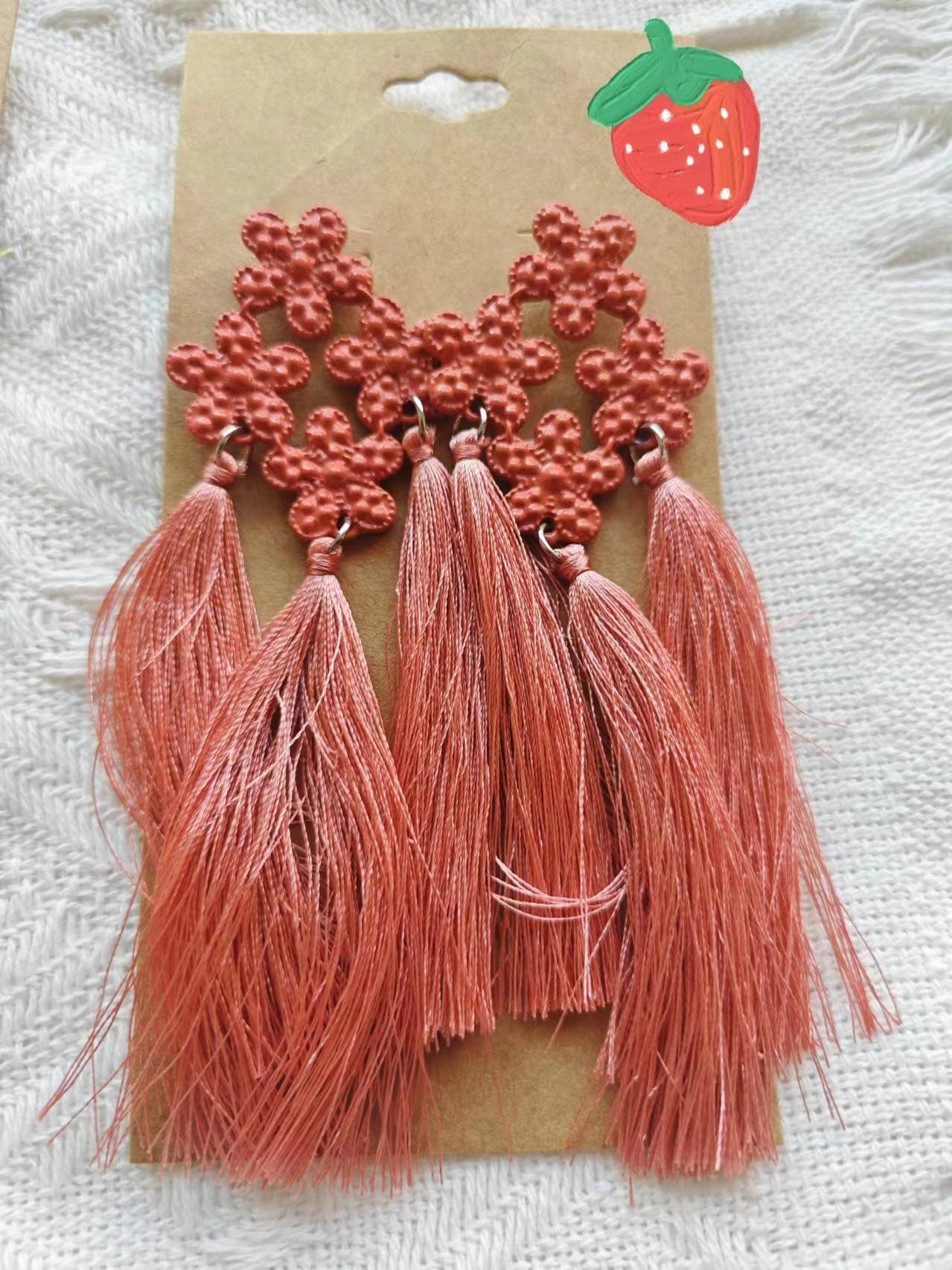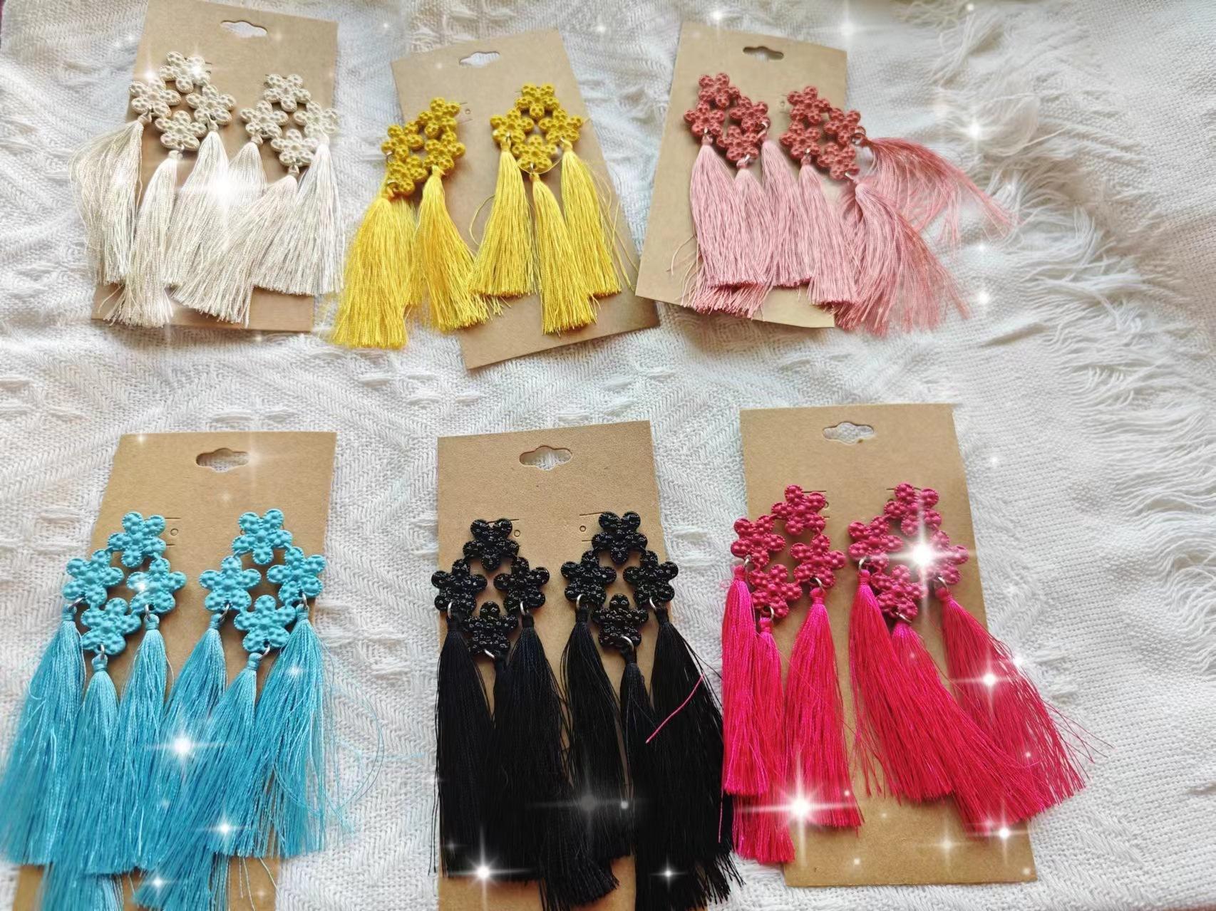 Pendientes de borlas multicolores tejidos a mano al por mayor estilo europeo y americano
