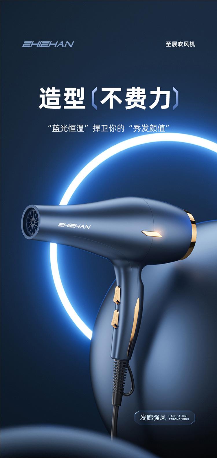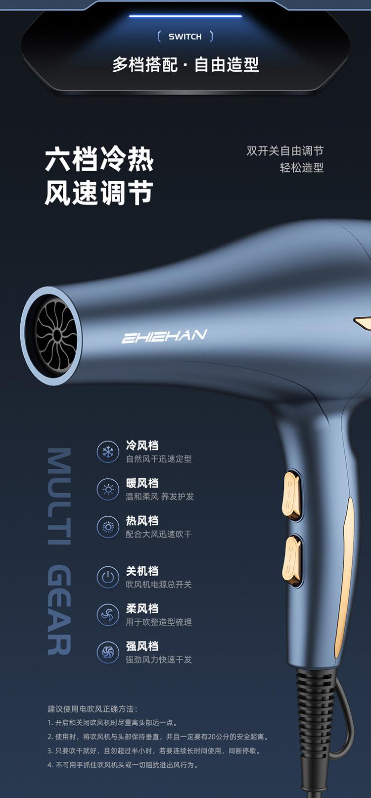 Secador de pelo doméstico peluquería luz azul secador de pelo frío y caliente alta potencia regalo mayoreo secador de pelo