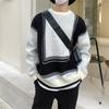 Suéter grueso de invierno con bloques de color y cuello redondo para hombre, moda juvenil casual, cálido, de punto para usar debajo, ventas directas de fábrica para hombre