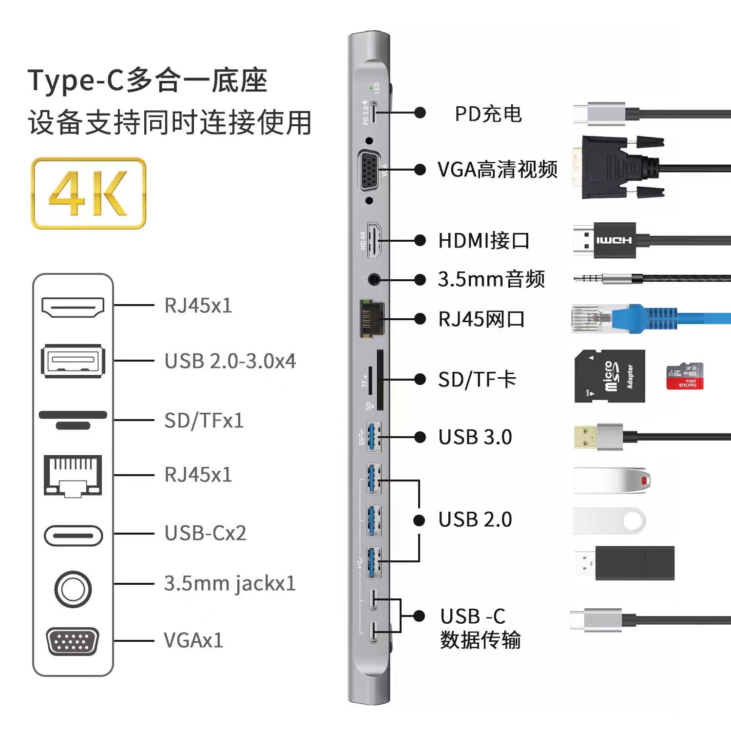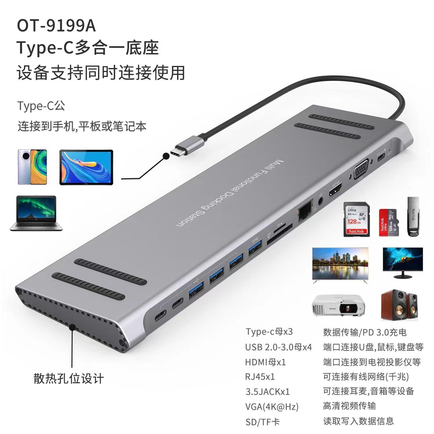 Estación de acoplamiento multifunción para portátil, convertidor transfronterizo 14 en 1, HDMI 4K, disponible en fábrica, venta al por mayor