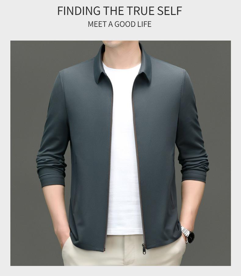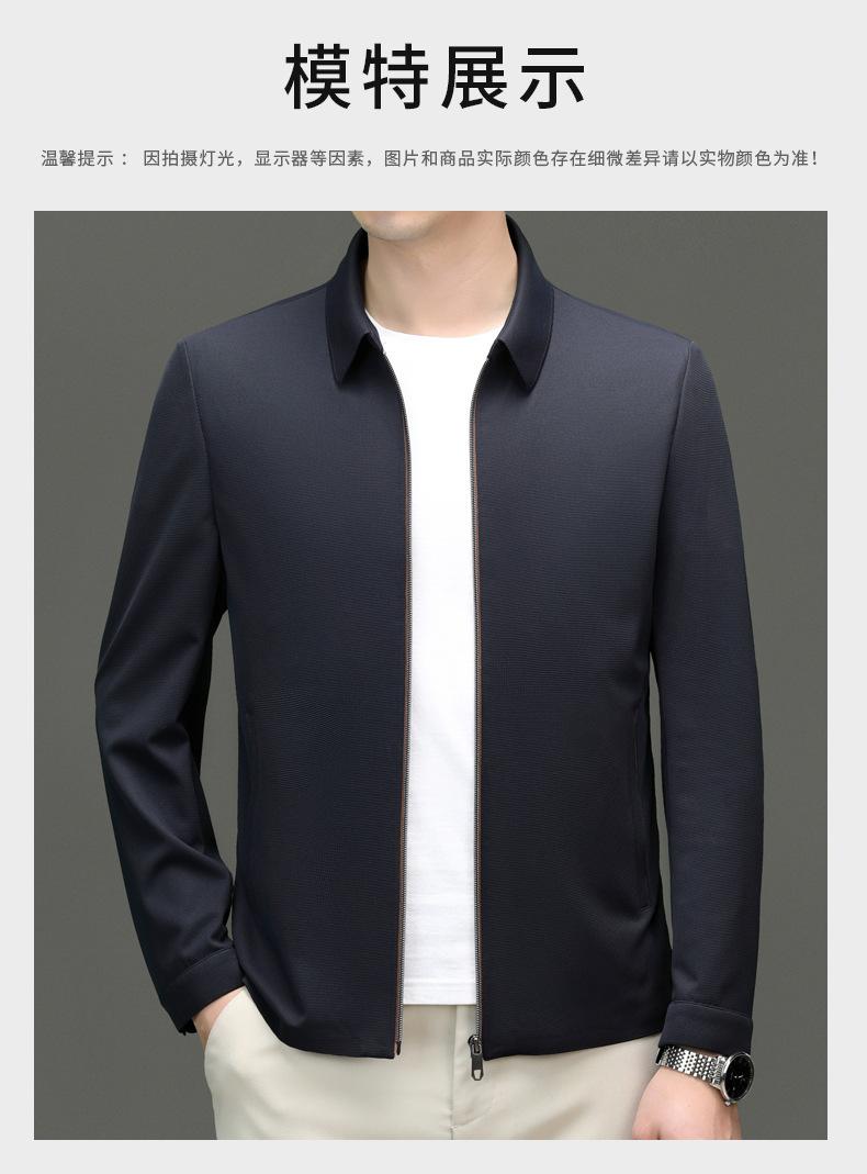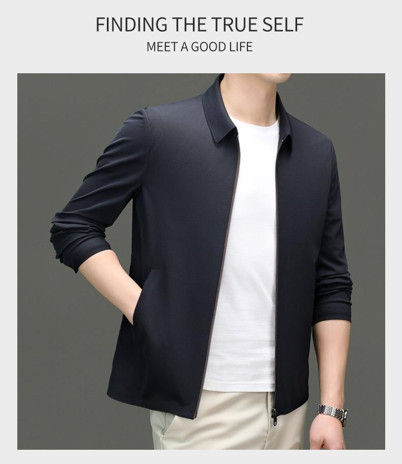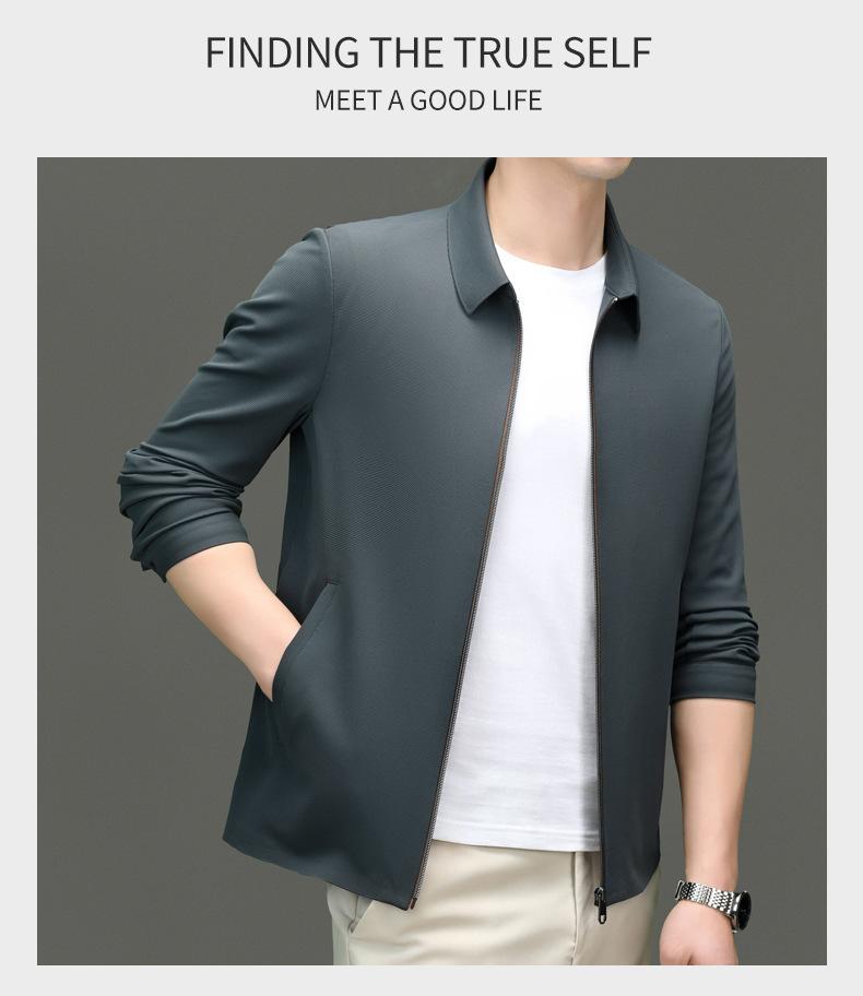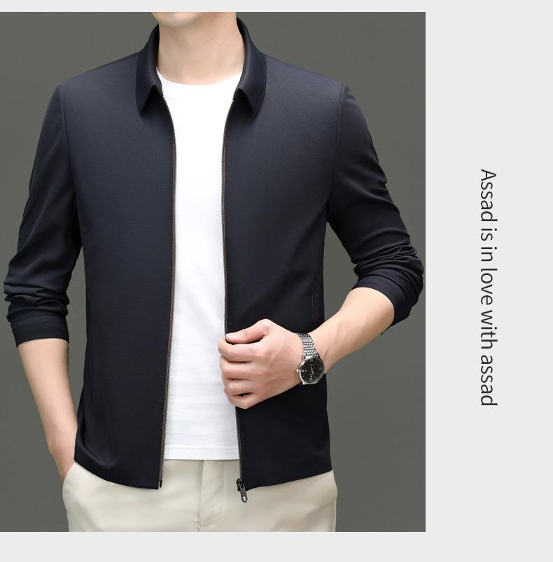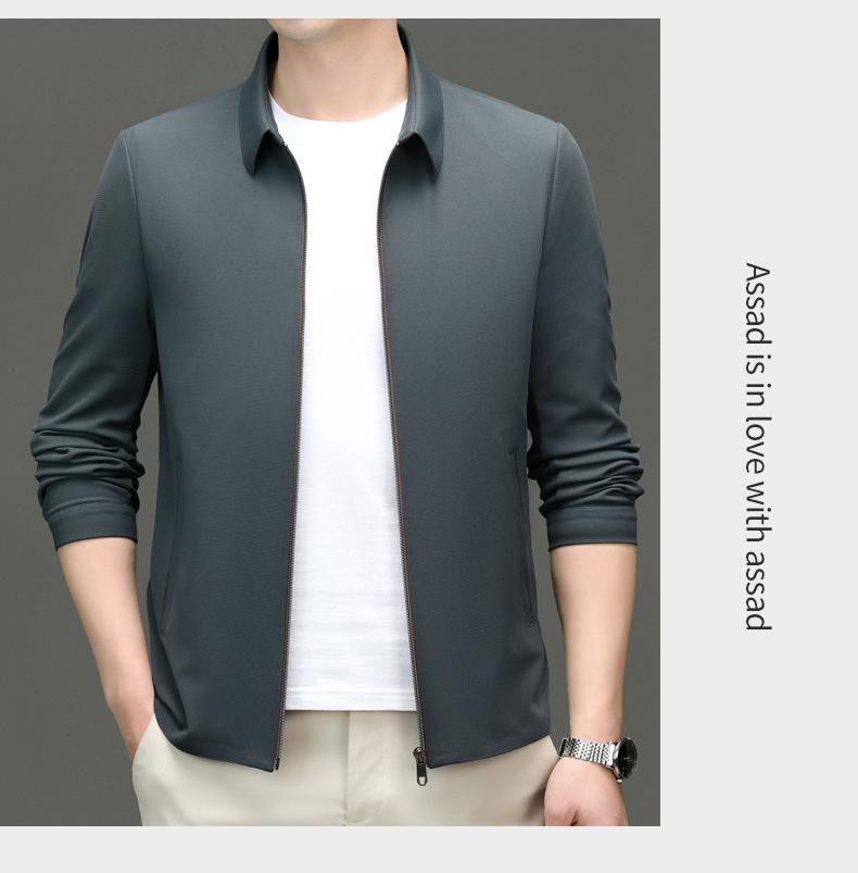 Chaqueta de Solapa Corta para Hombre, Primavera y Otoño Negocios Casual Abrigo Fino Chaqueta de Papá de Mediana Edad