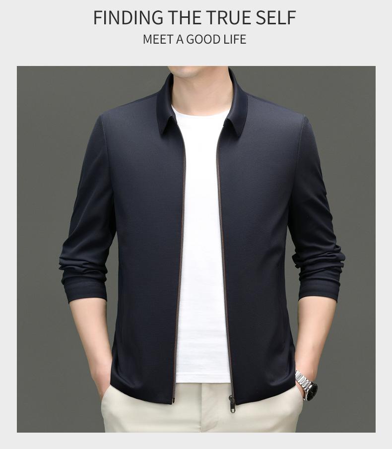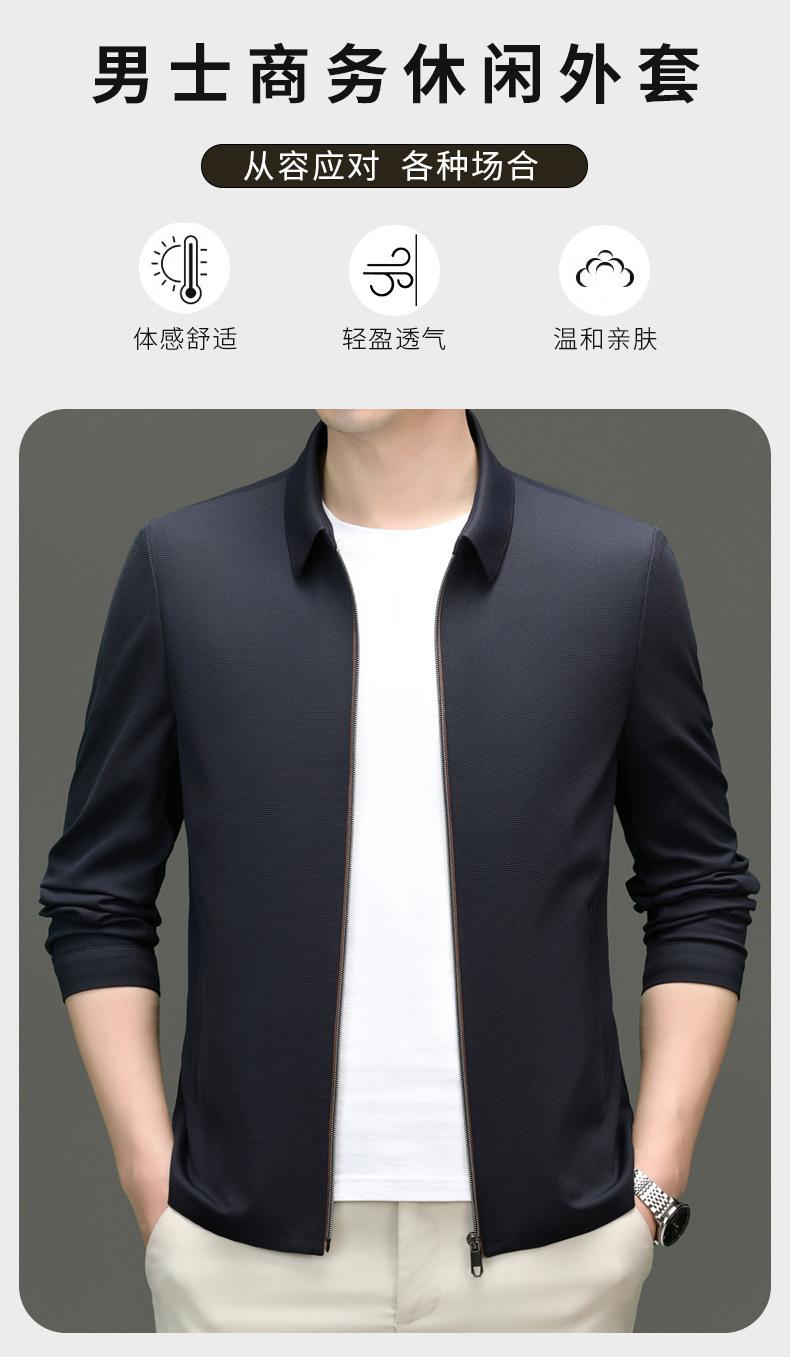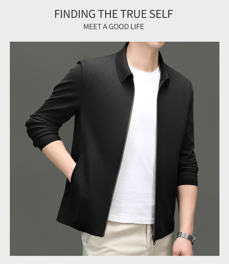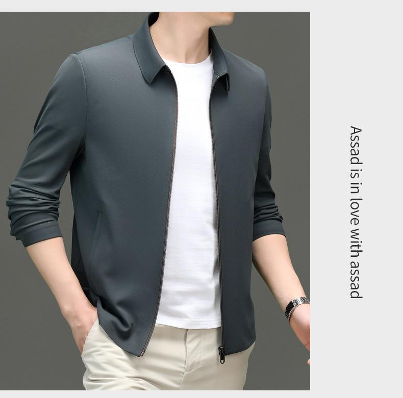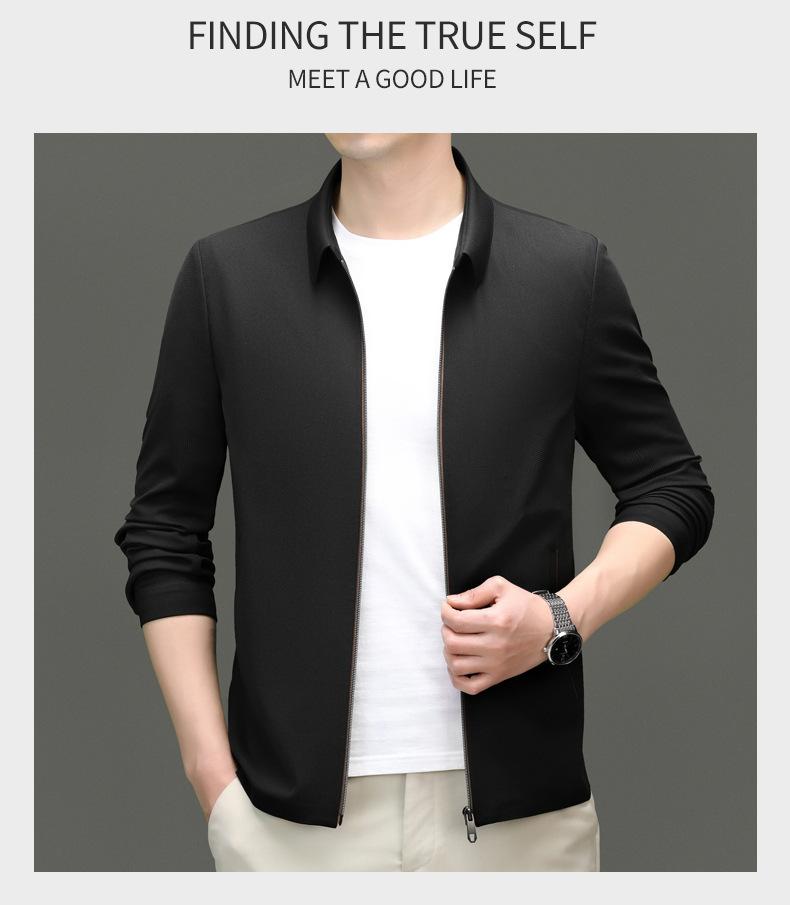 Chaqueta de Solapa Corta para Hombre, Primavera y Otoño Negocios Casual Abrigo Fino Chaqueta de Papá de Mediana Edad