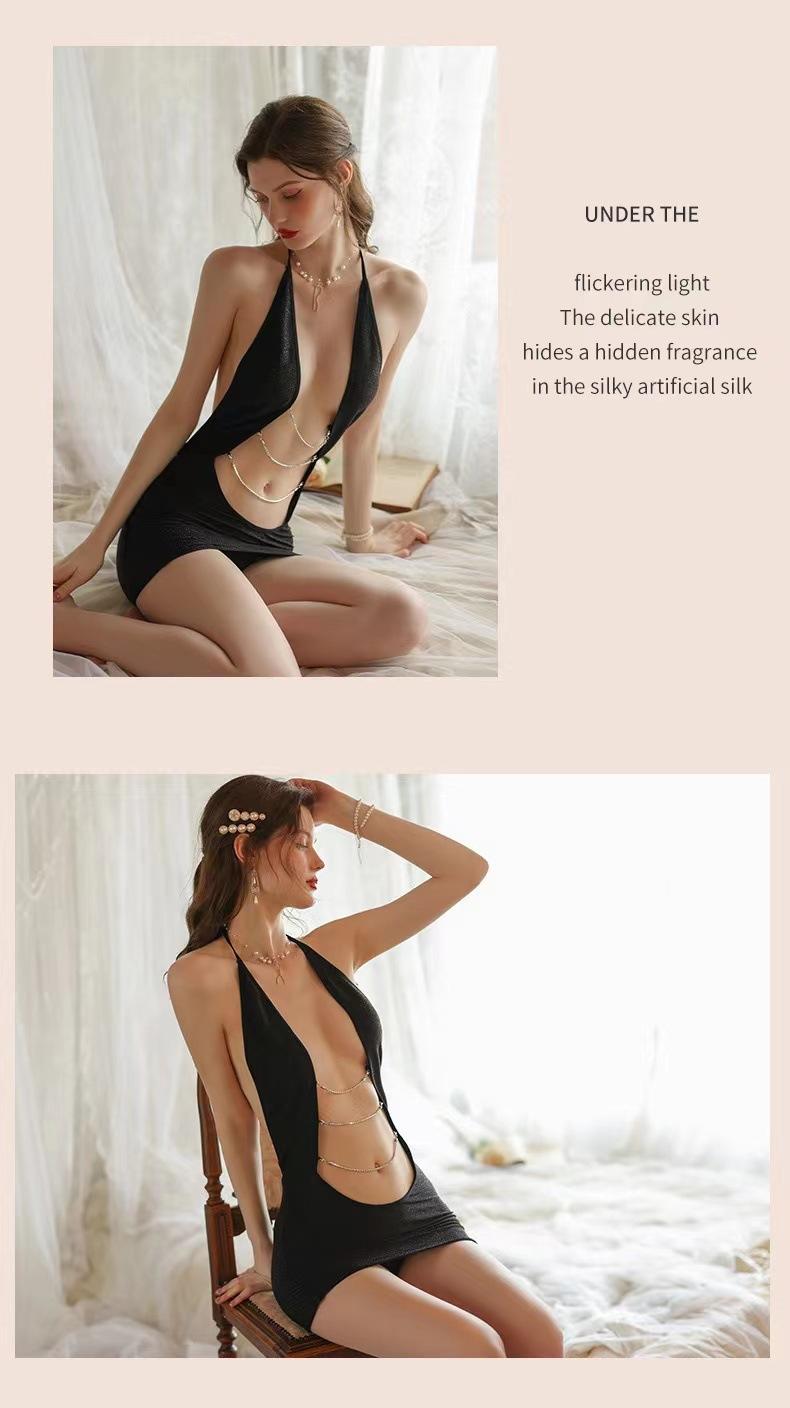 Lencería sexy de mujer, uniforme de secretaria ajustado de una pieza, sexy, lindo, con abertura en el pecho, ropa de discoteca caliente sin espalda