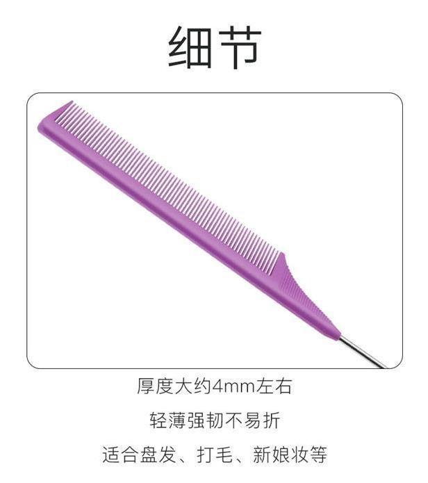 Peine para Peinar Resistente a Altas Temperaturas con Punta de Aguja de Acero y Cola de Plástico, Adecuado para Seccionar y Peinar, Herramienta Resistente al Calor
