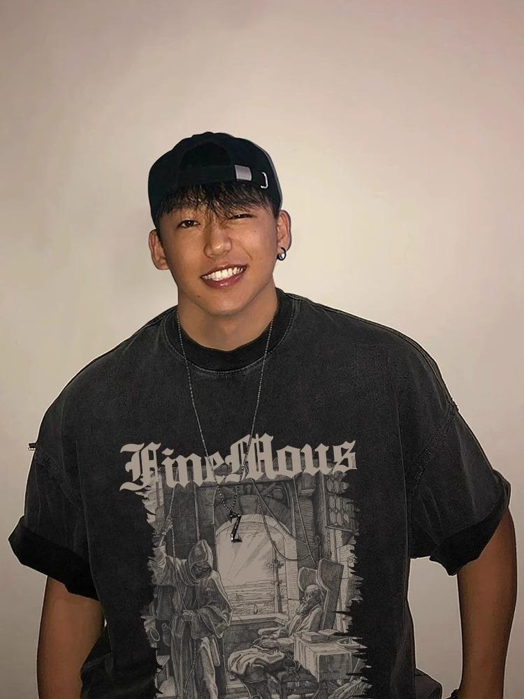 Camiseta de manga corta con estampado de estilo urbano para hombre, estilo retro americano, informal, combinable, verano 2024