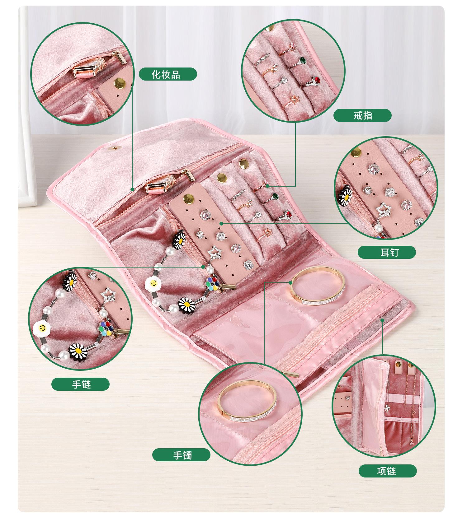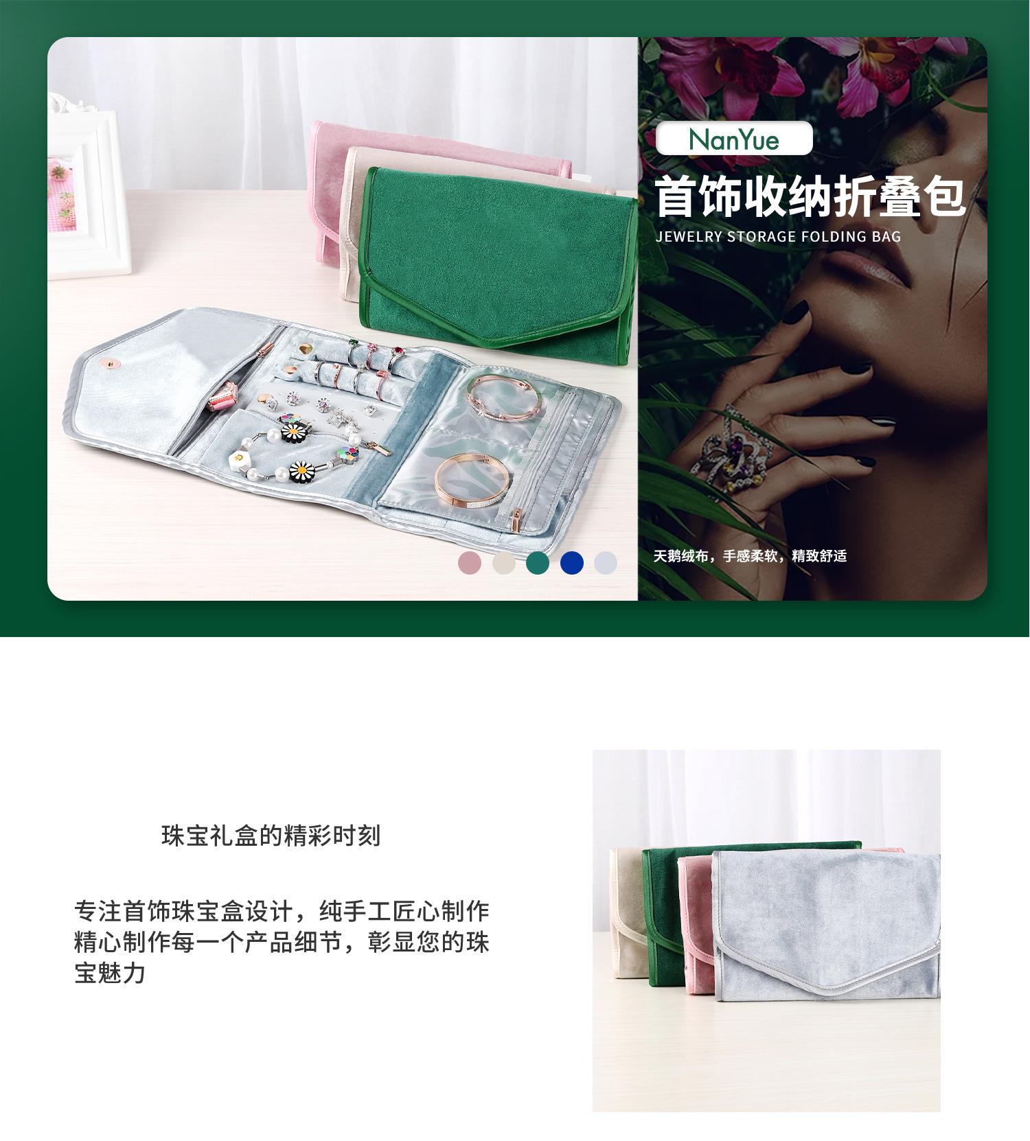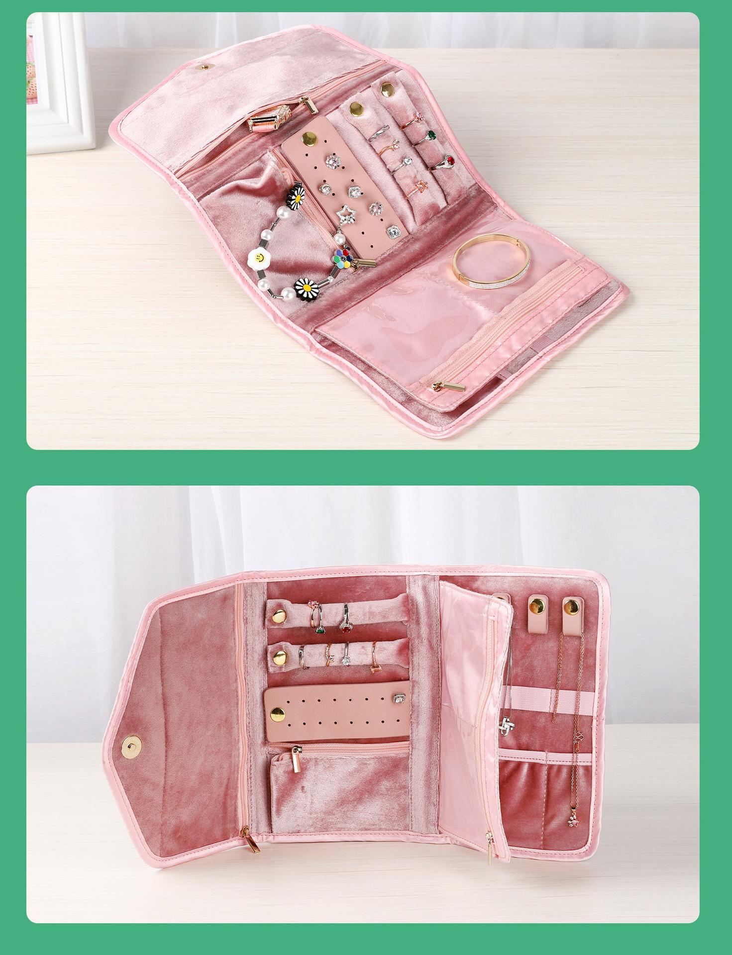 Caja de joyería portátil para pendientes, anillos y joyas, bolsa de terciopelo plegable, venta transfronteriza