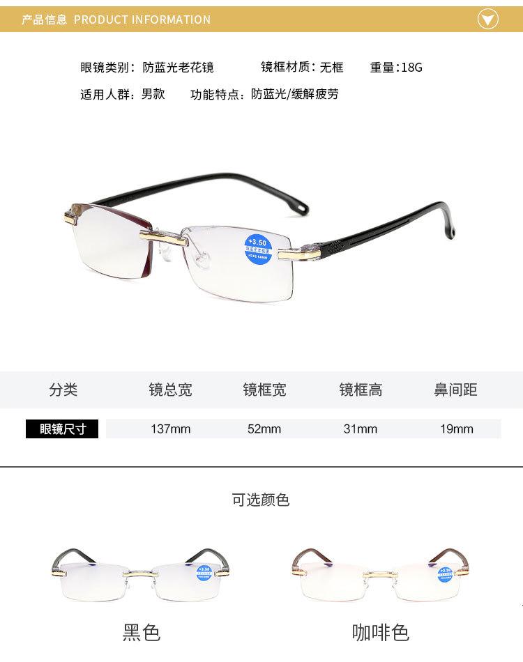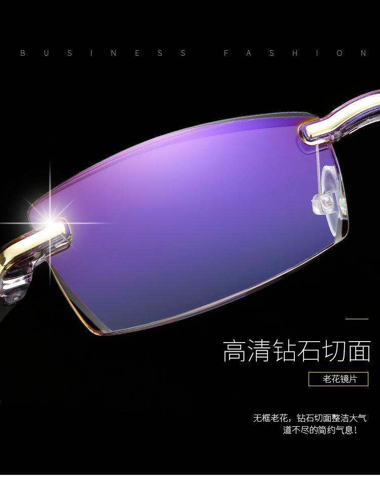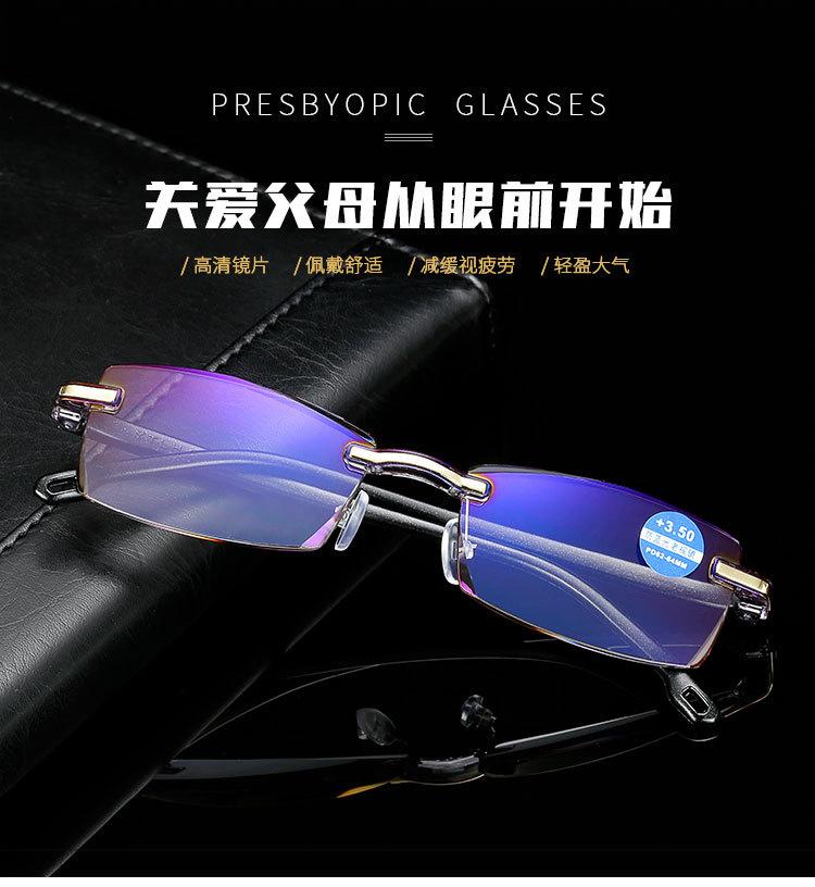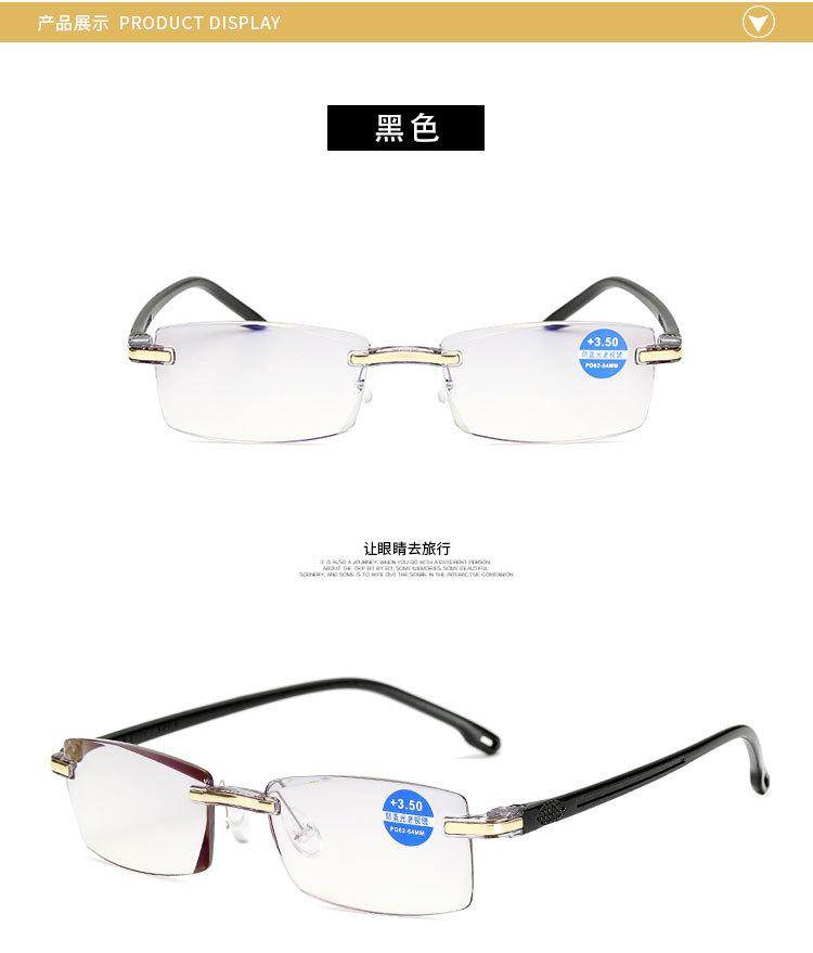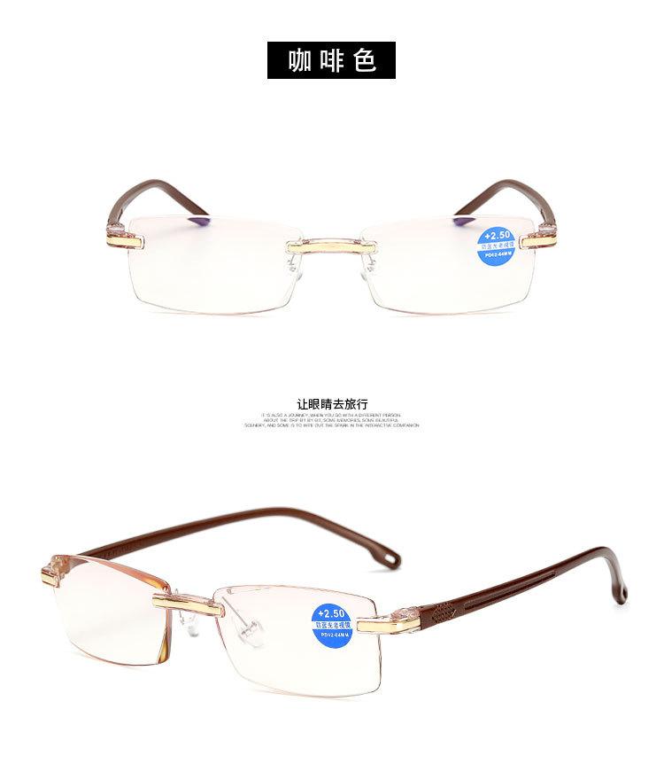 Nuevos anteojos de lectura para hombre con borde de diamantes Corea del Sur sin montura recubrimiento luz azul anti diamantes moda anteojos de lectura al por mayor